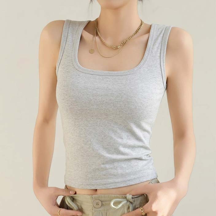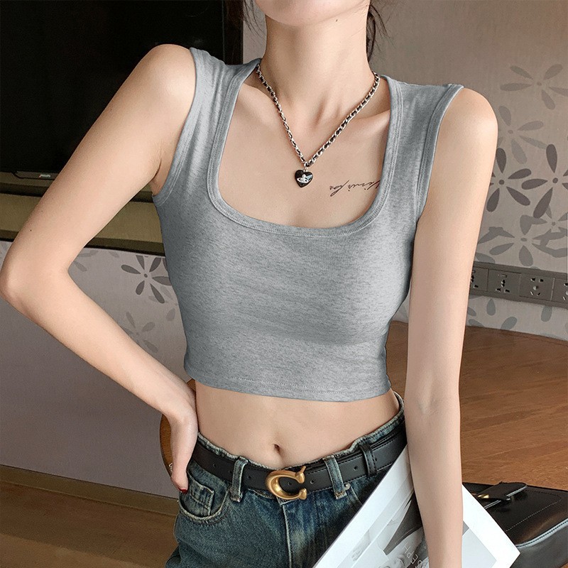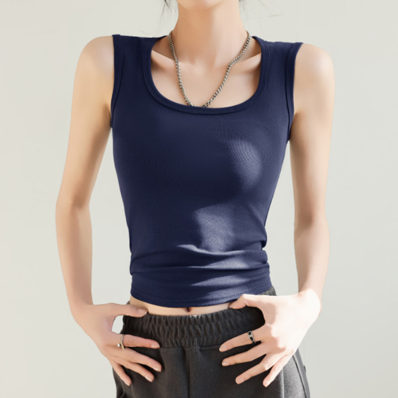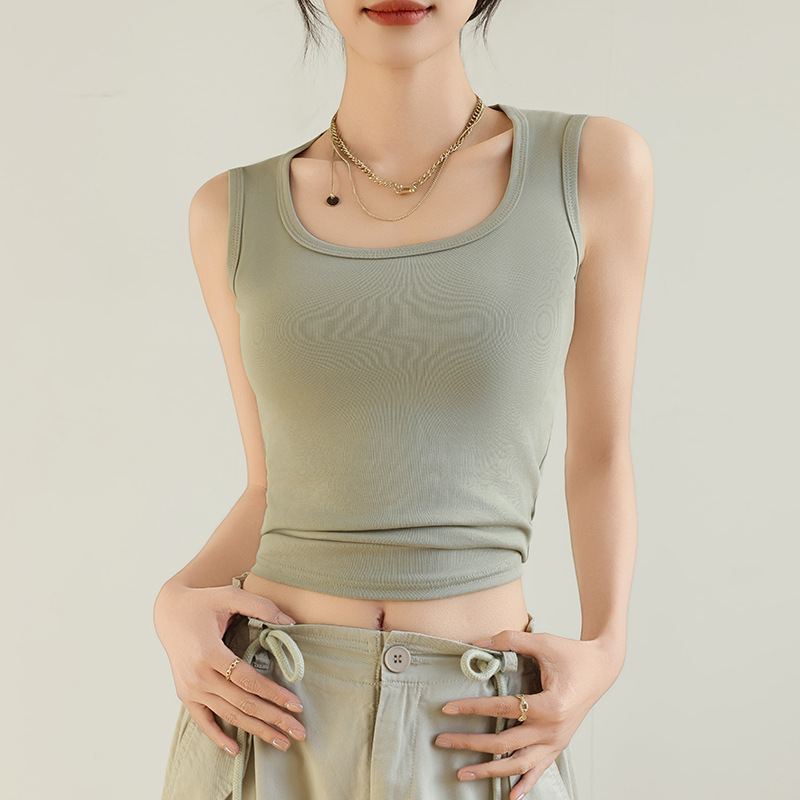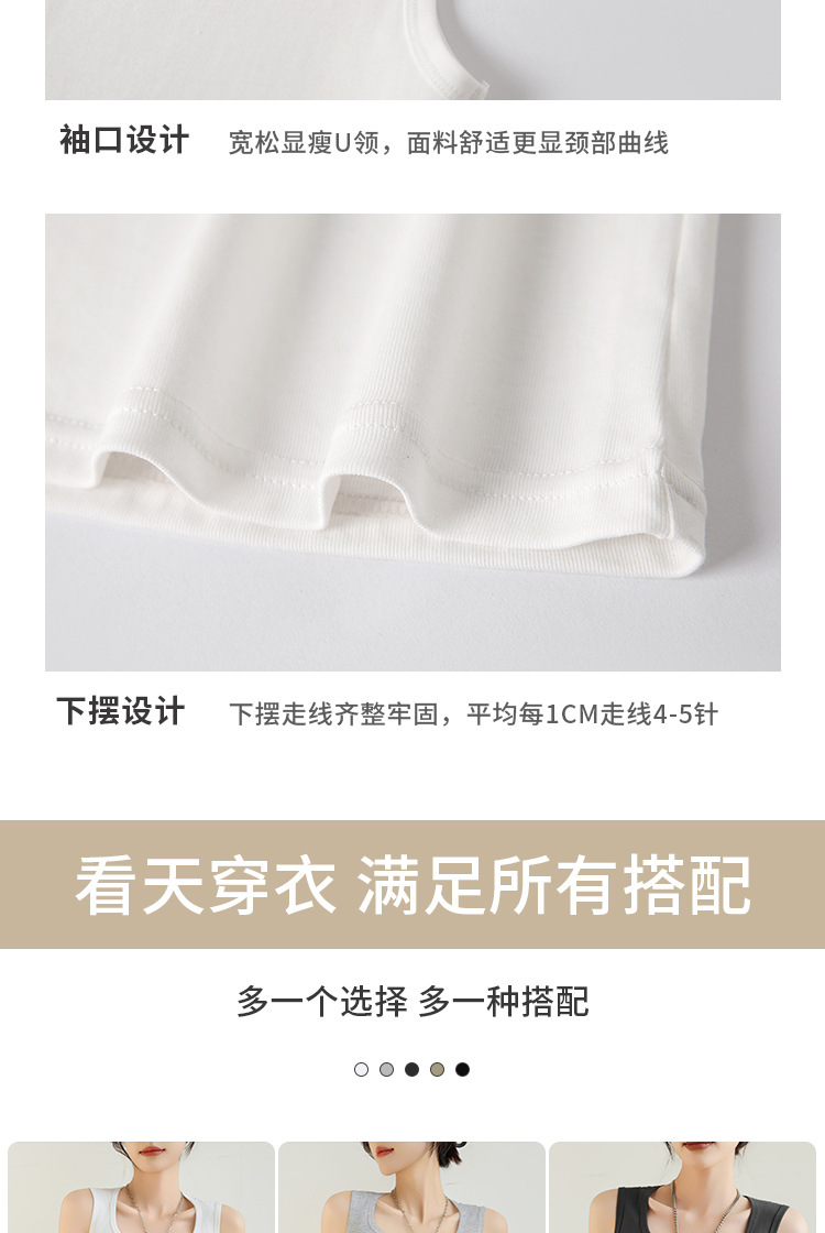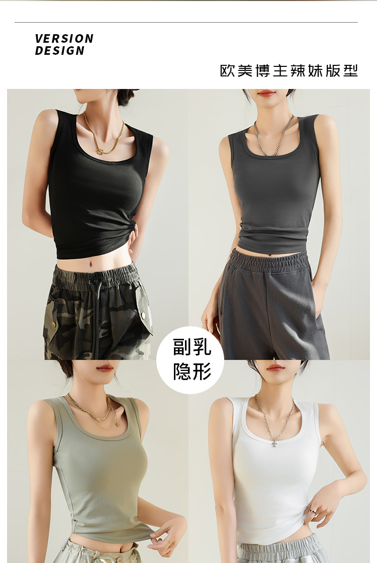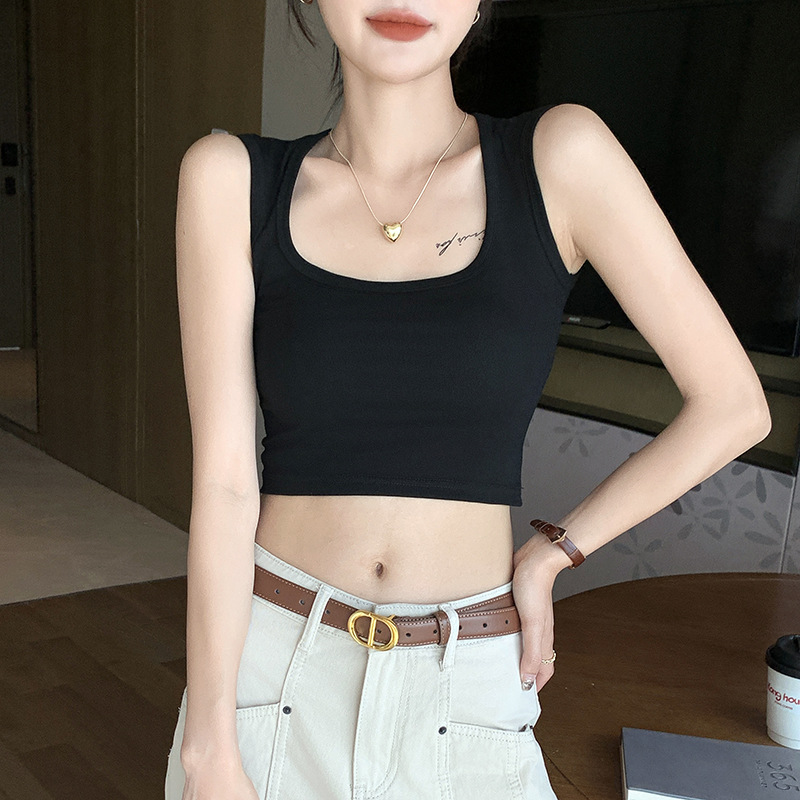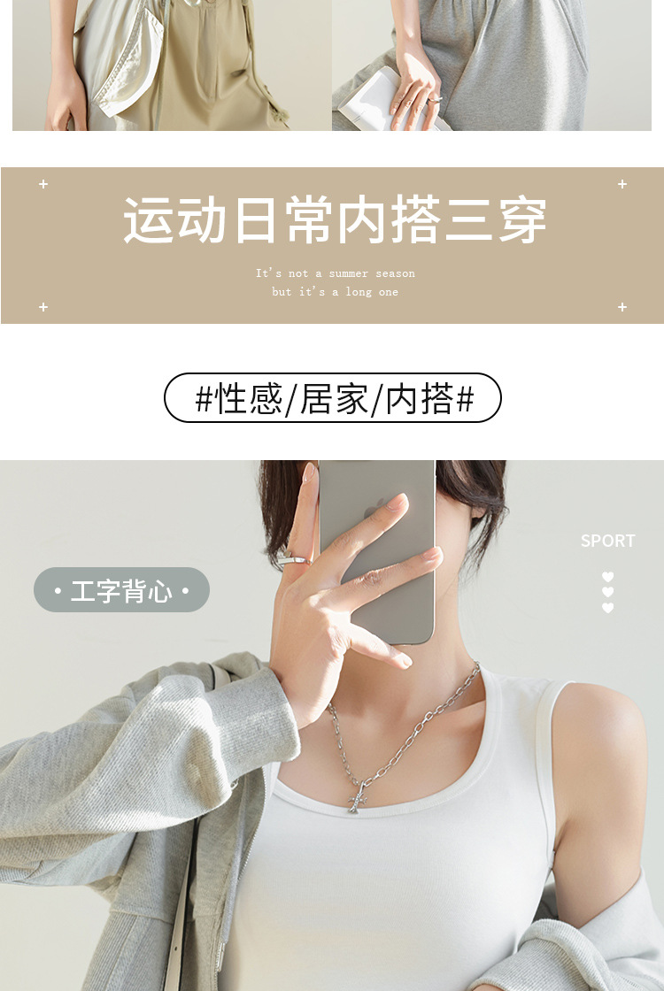 H349 Cotton Camisole Women's Summer 새로운 I 자형 내부 와이드 숄더 커버 파라-가슴 슬림 핏 화이트 보텀 탑
