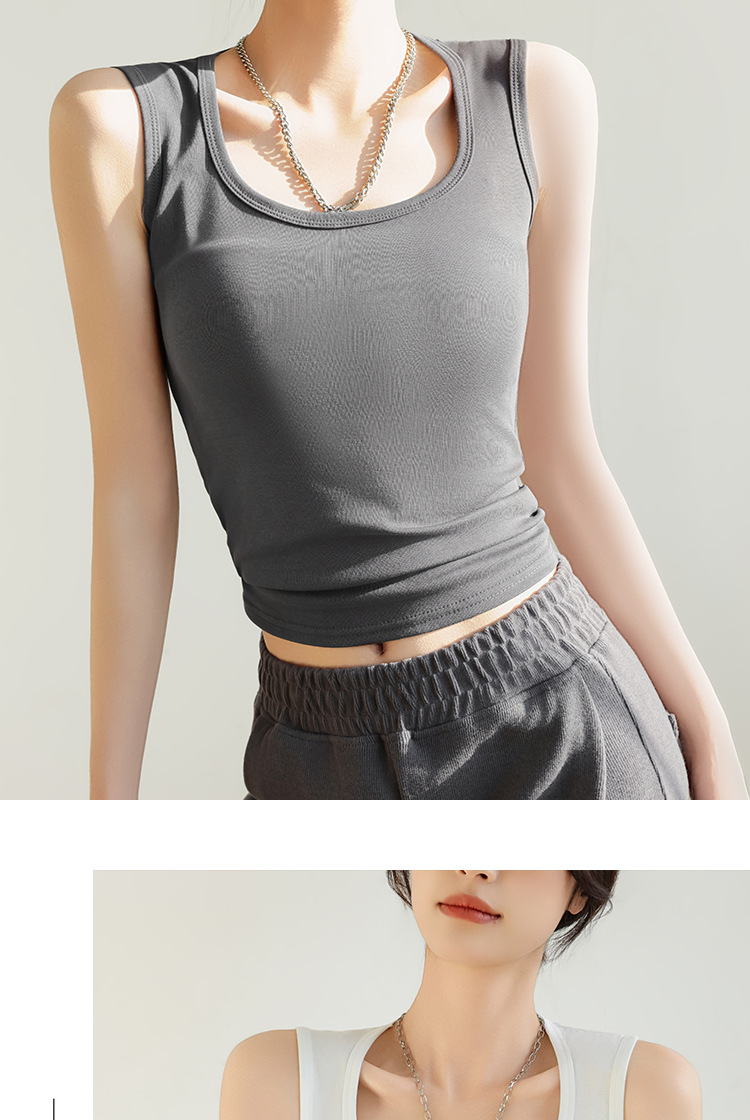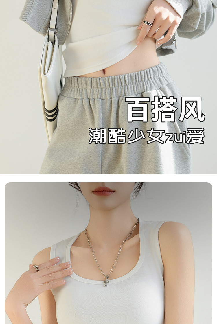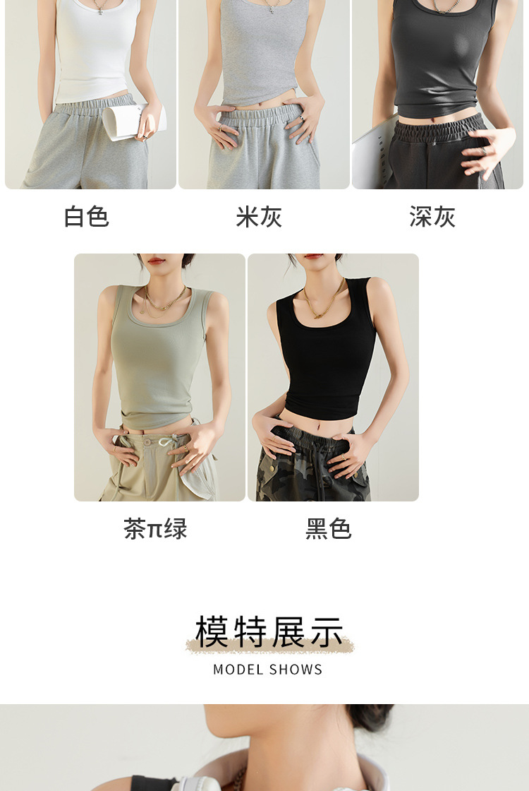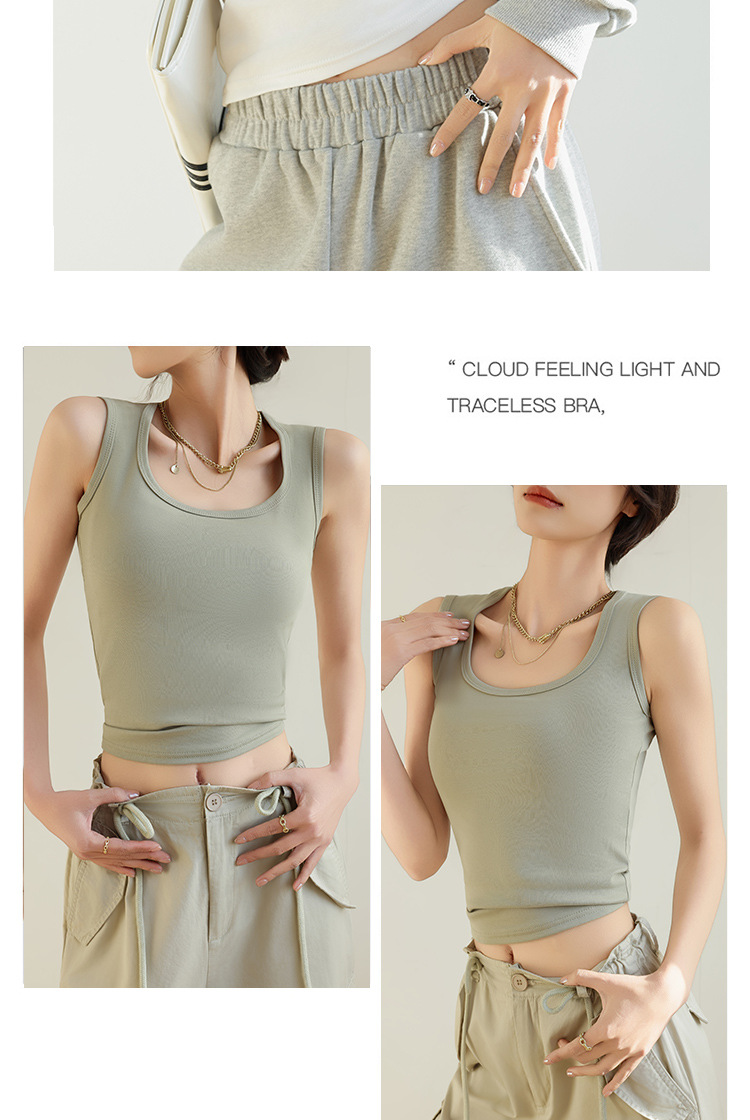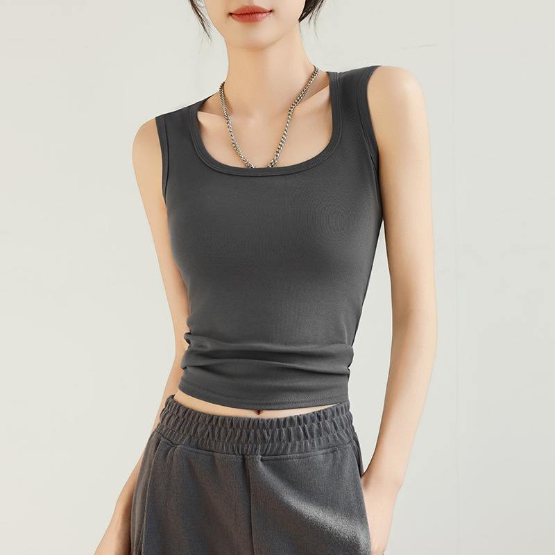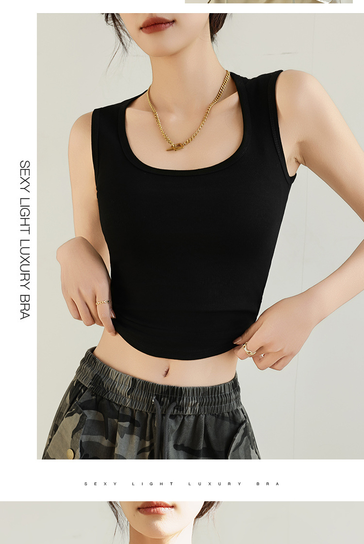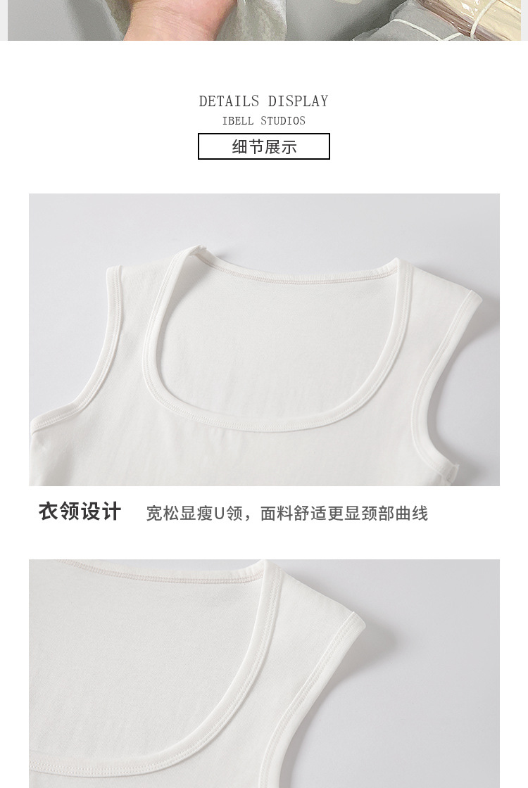 H349 Cotton Camisole Women's Summer 새로운 I 자형 내부 와이드 숄더 커버 파라-가슴 슬림 핏 화이트 보텀 탑