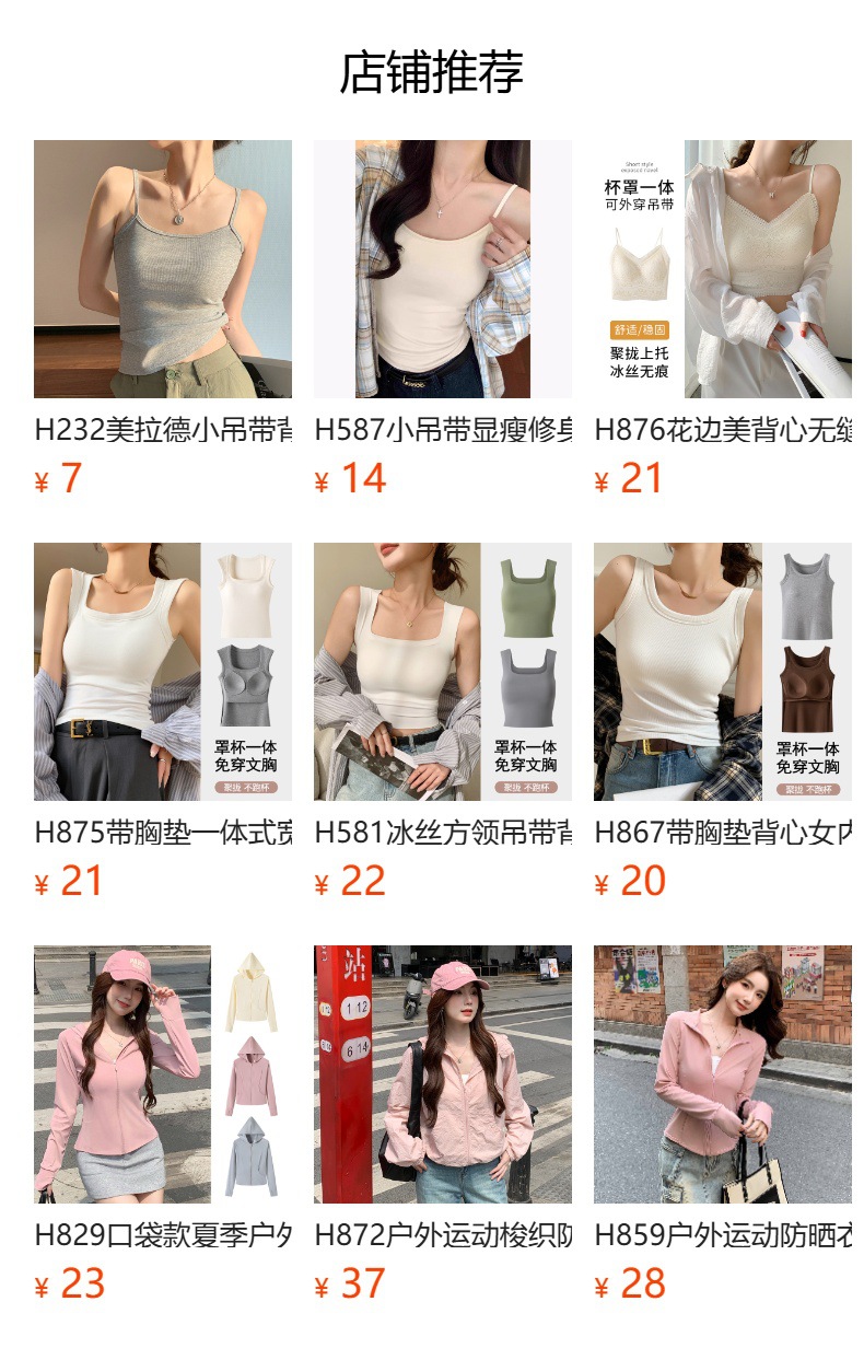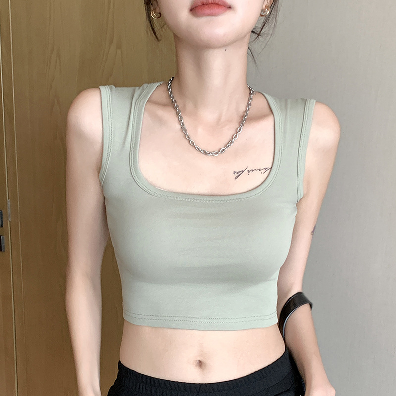 H349 Cotton Camisole Women's Summer 새로운 I 자형 내부 와이드 숄더 커버 파라-가슴 슬림 핏 화이트 보텀 탑스토어 가기
