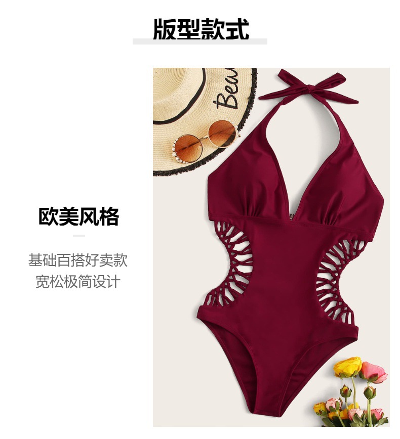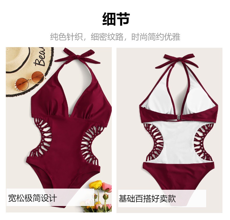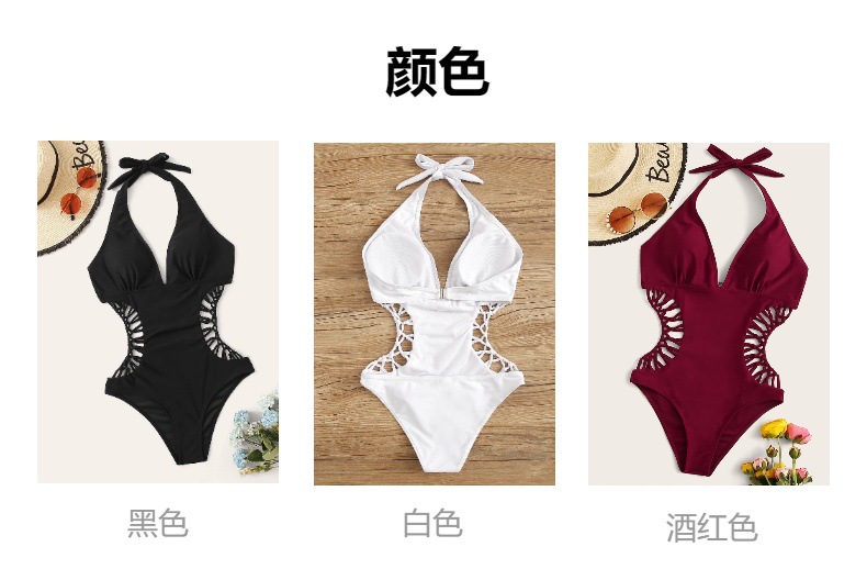 국경을 넘는 새로운 스타일의 여성용 원피스 솔리드 컬러 레이스 업 중공 섹시한 백리스 유럽 및 미국 비키니 해변 휴가 수영복