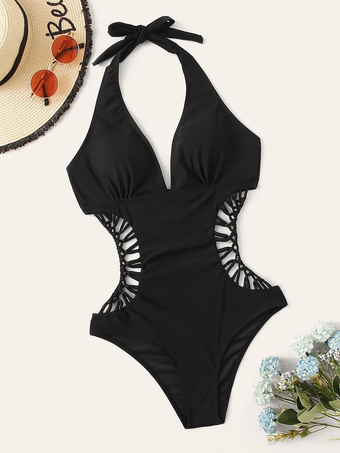 국경을 넘는 새로운 스타일의 여성용 원피스 솔리드 컬러 레이스 업 중공 섹시한 백리스 유럽 및 미국 비키니 해변 휴가 수영복스토어 가기