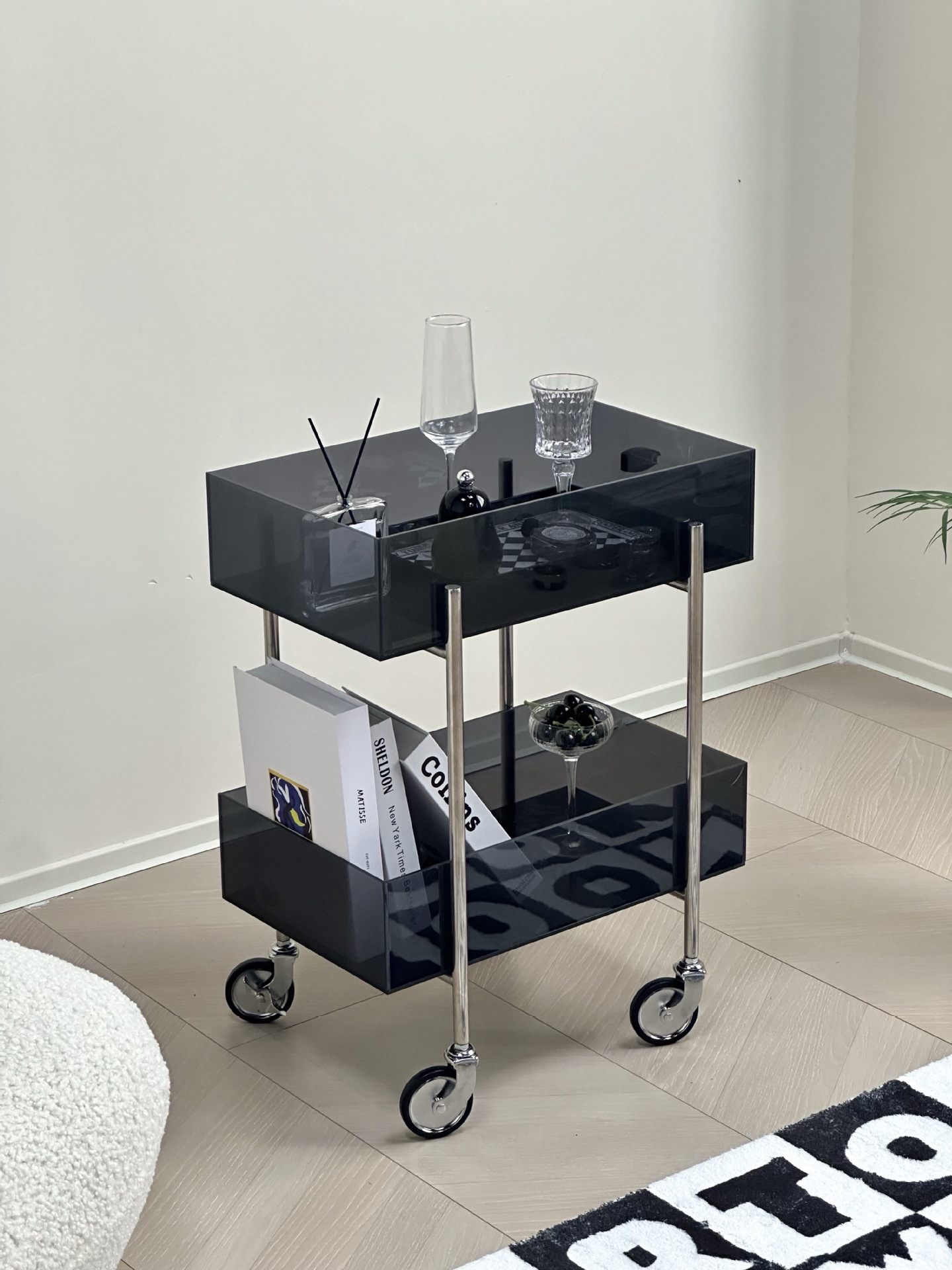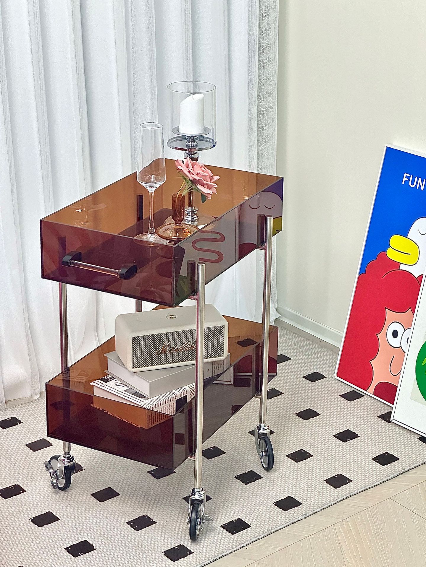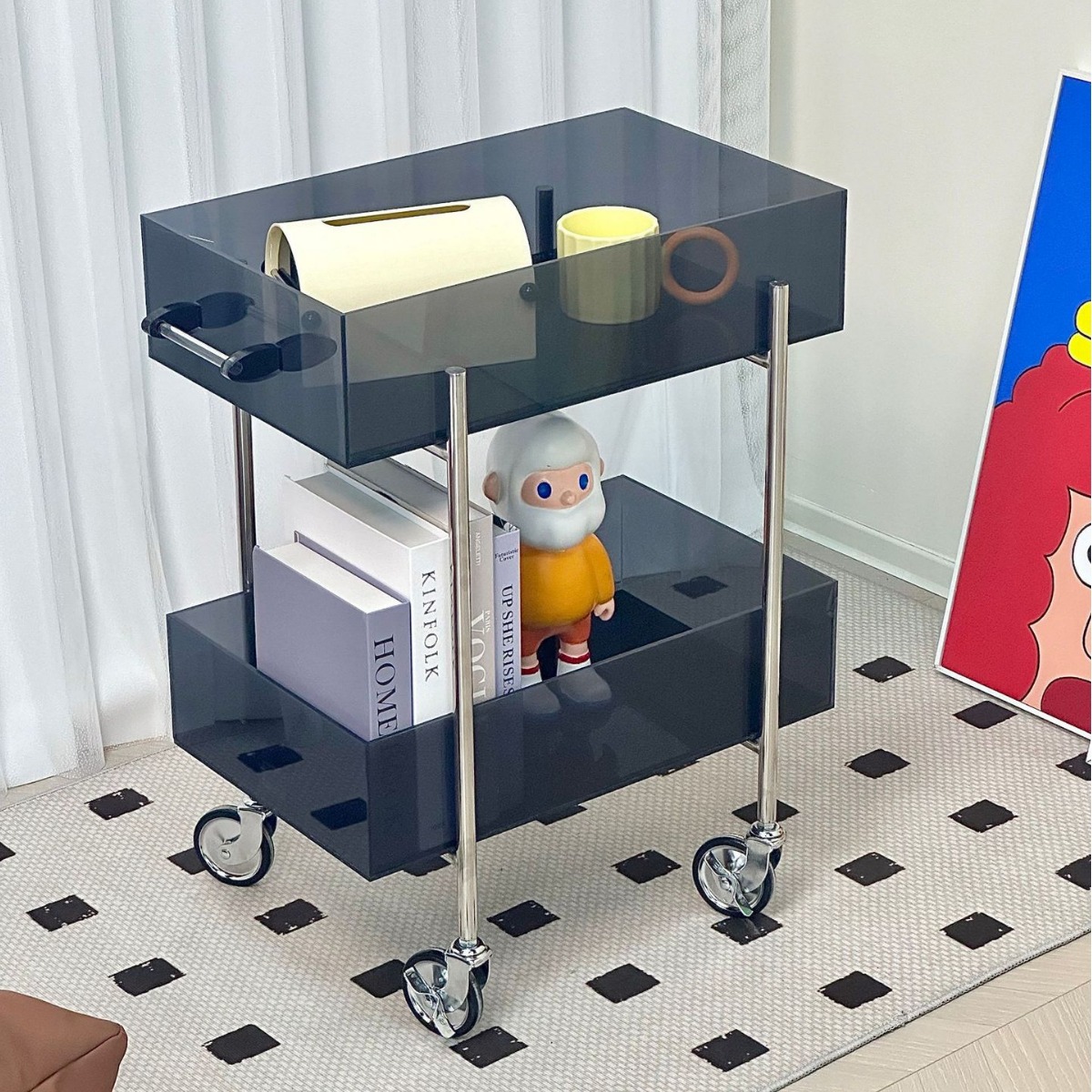 다기능 고 가치 아크릴 트롤리 주방 간식 다층 선반 캐비닛 거실 소파 사이드 코너 테이블스토어 가기
