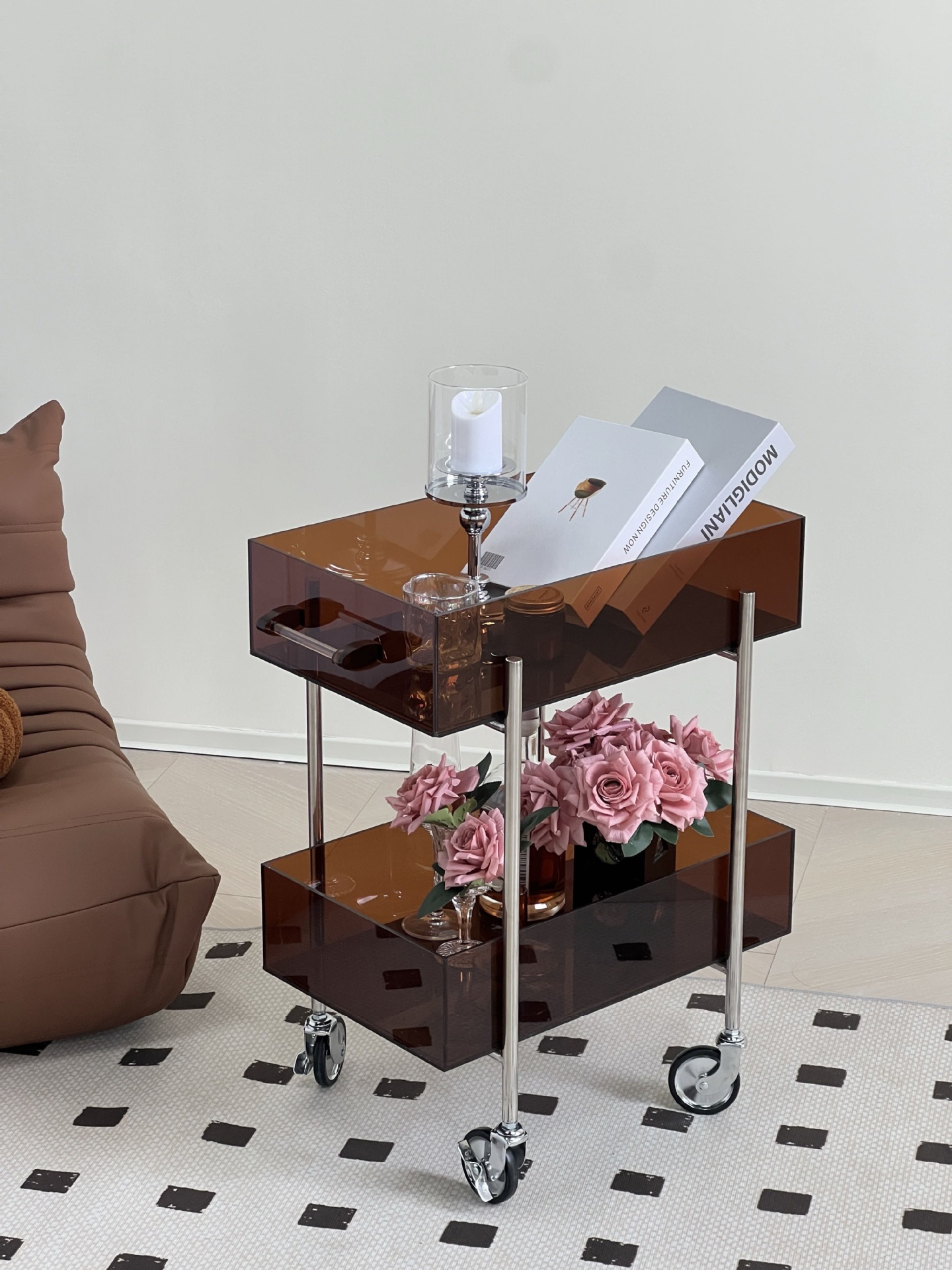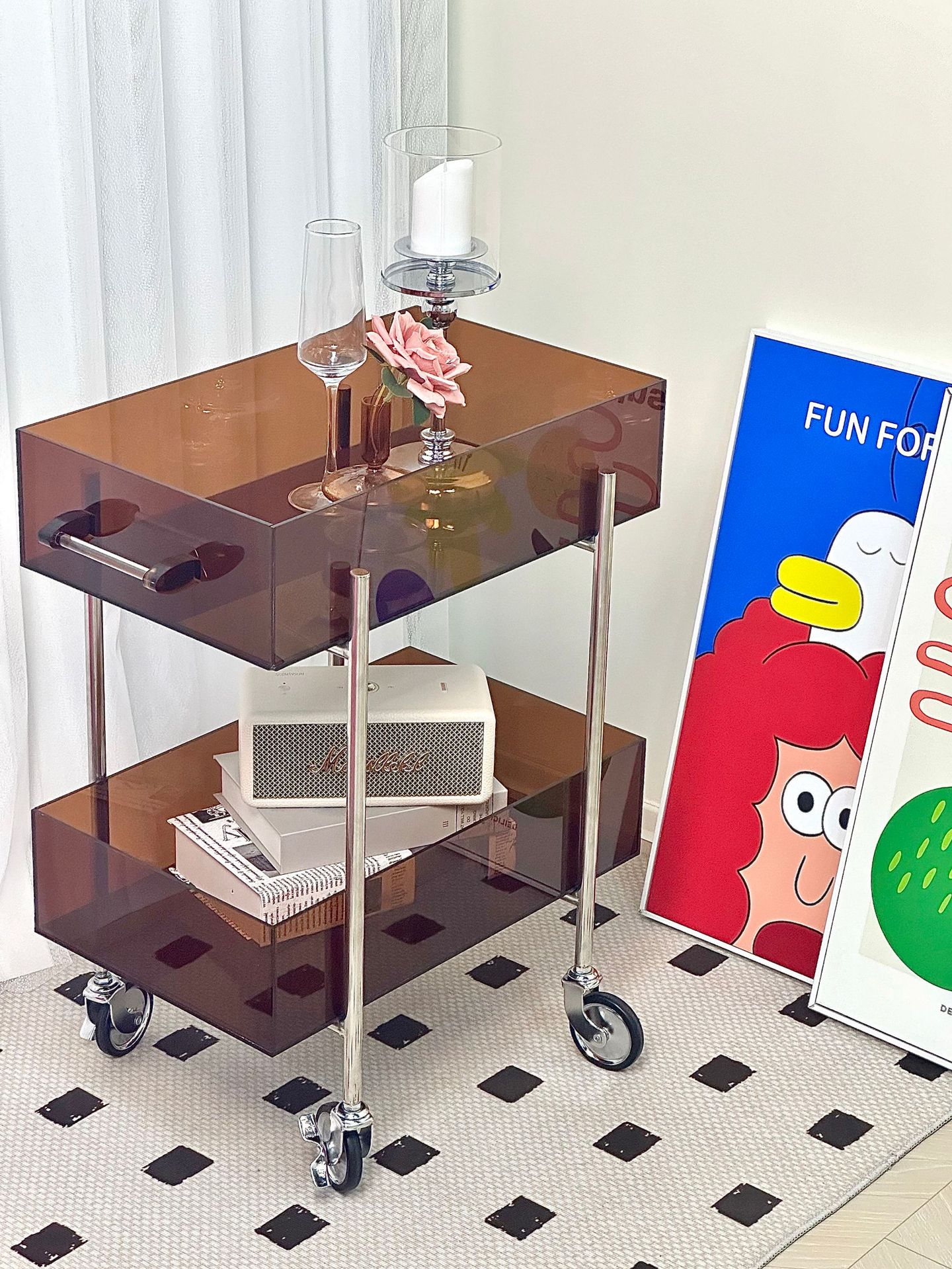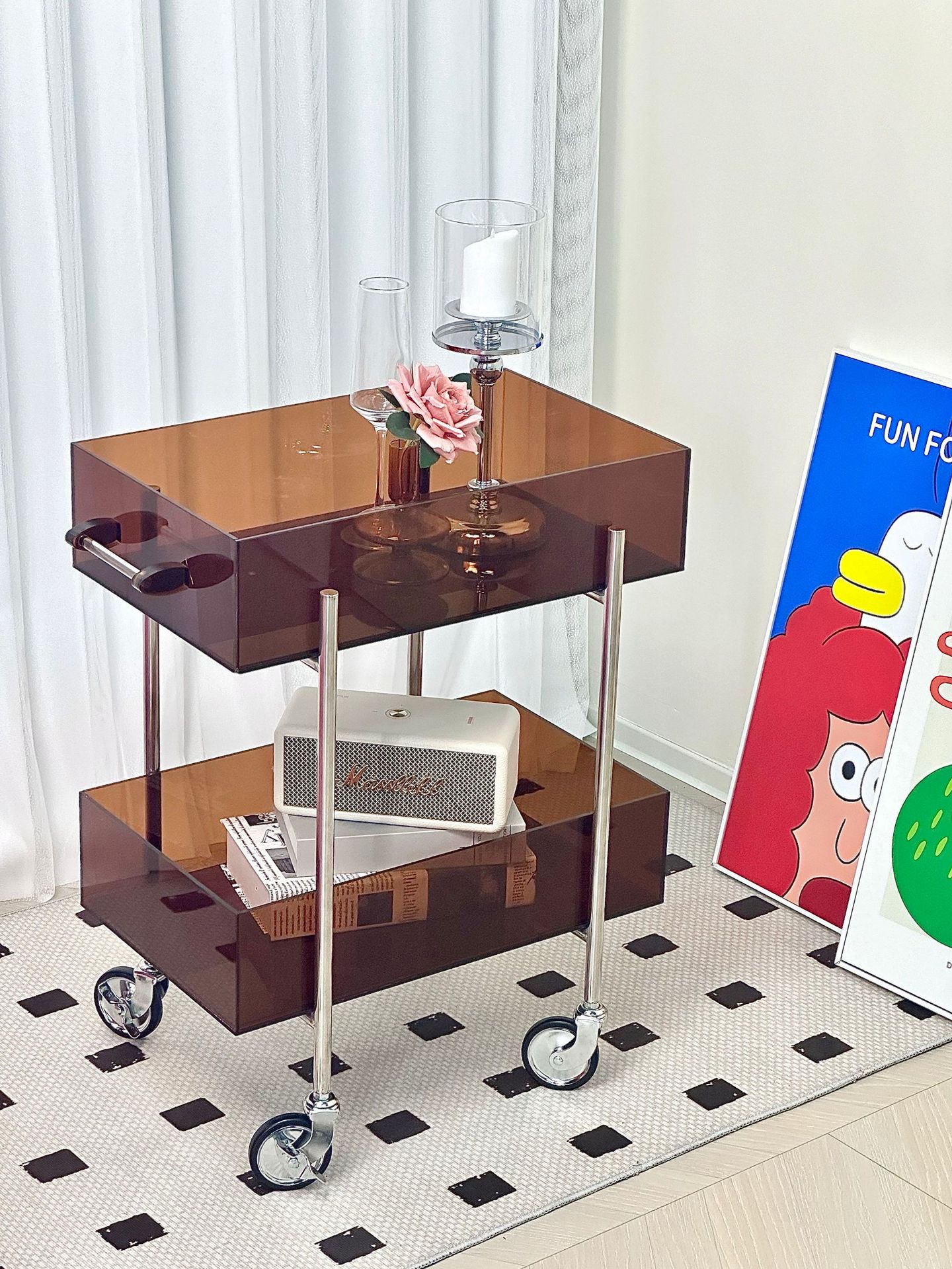 다기능 고 가치 아크릴 트롤리 주방 간식 다층 선반 캐비닛 거실 소파 사이드 코너 테이블스토어 가기
