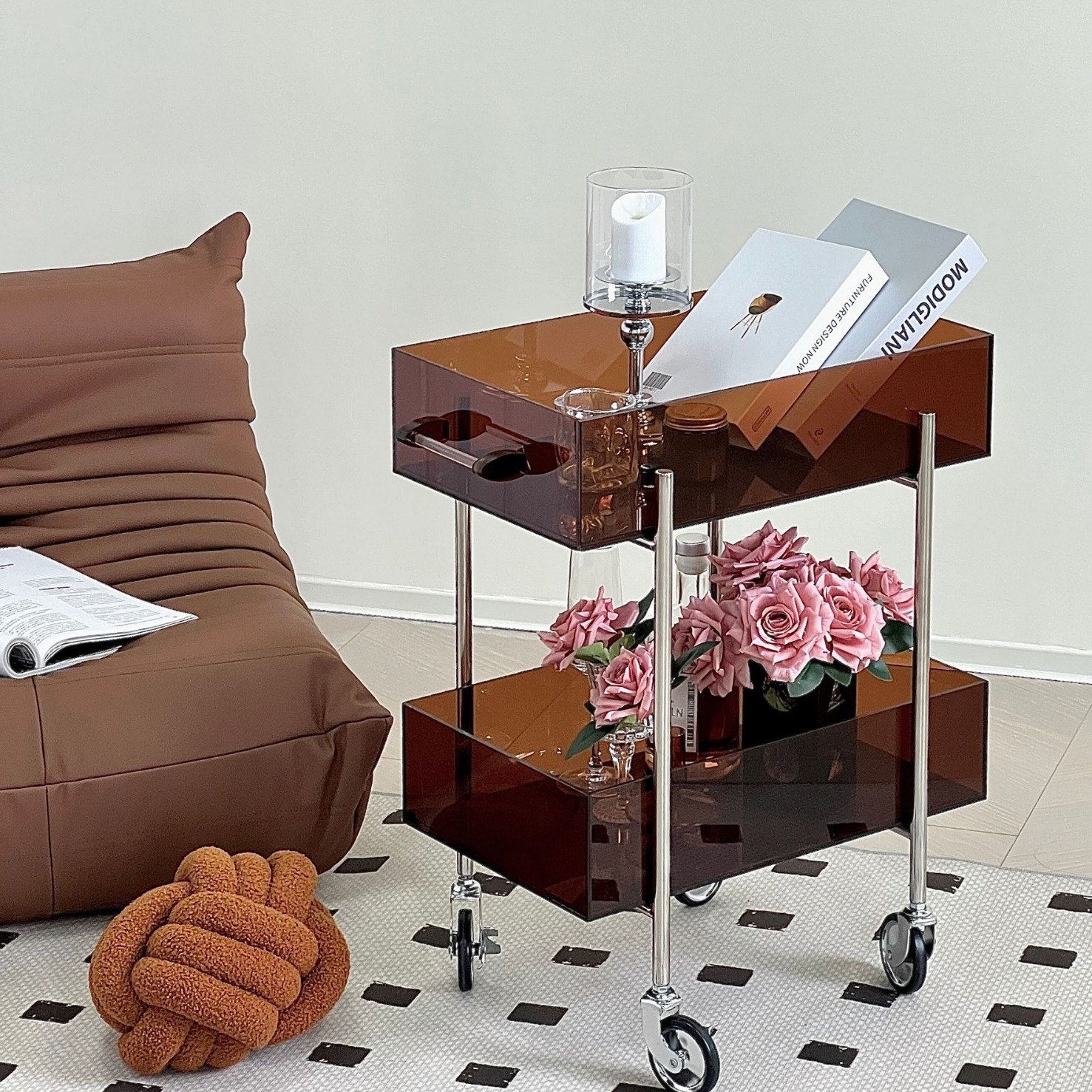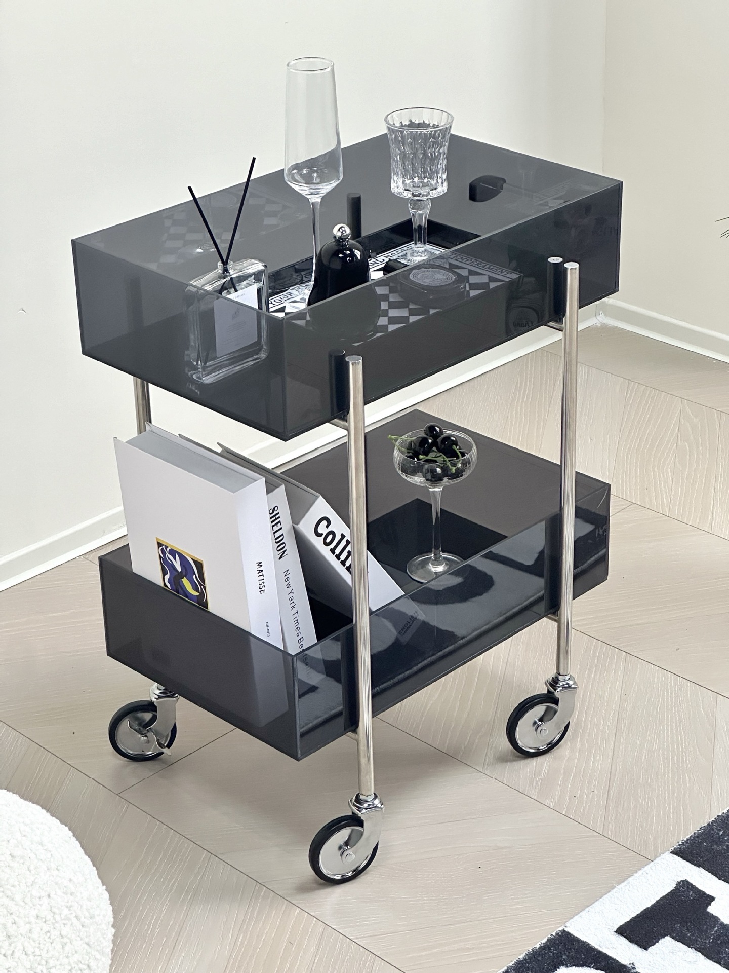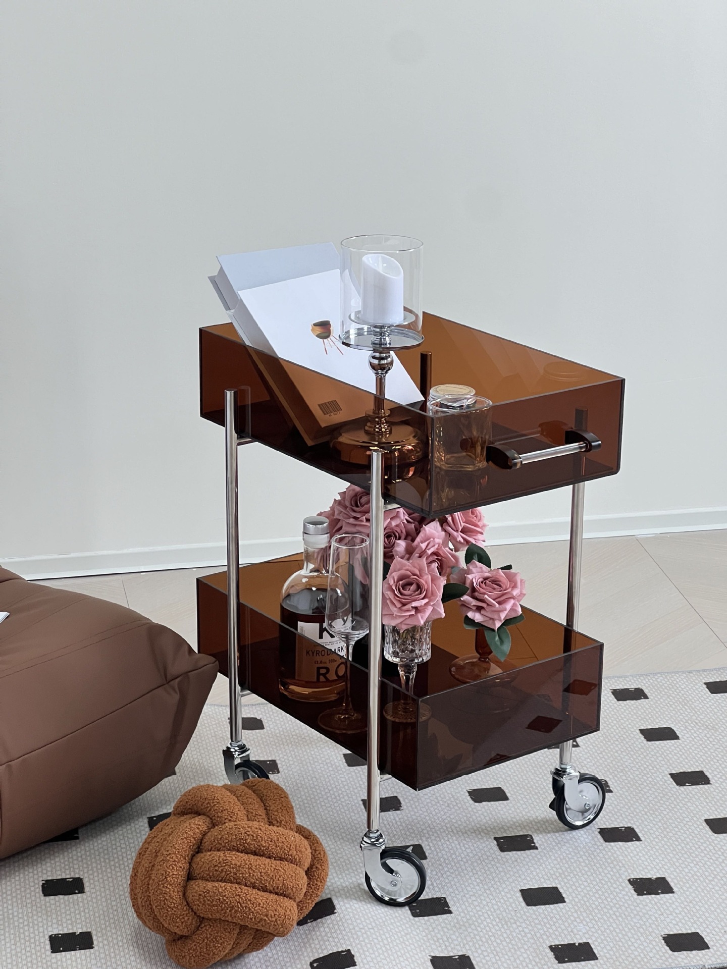 다기능 고 가치 아크릴 트롤리 주방 간식 다층 선반 캐비닛 거실 소파 사이드 코너 테이블