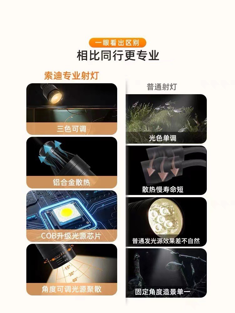 남아메리카 스포트라이트 색상 변경 어항 조명 줌 조명 네이티브 탱크 수족관 조명 led 물 식물 빛 다운 라이트 거북이 빛