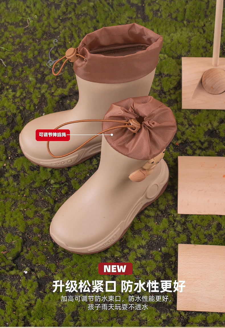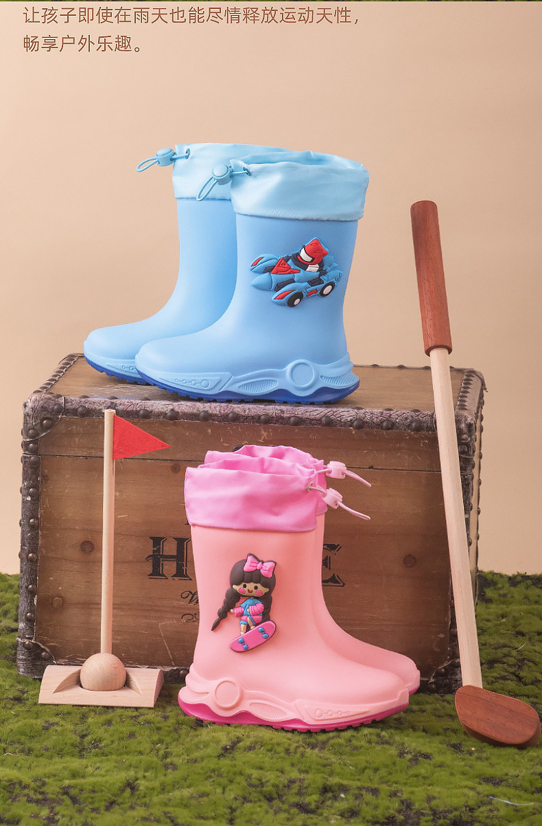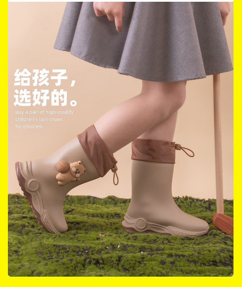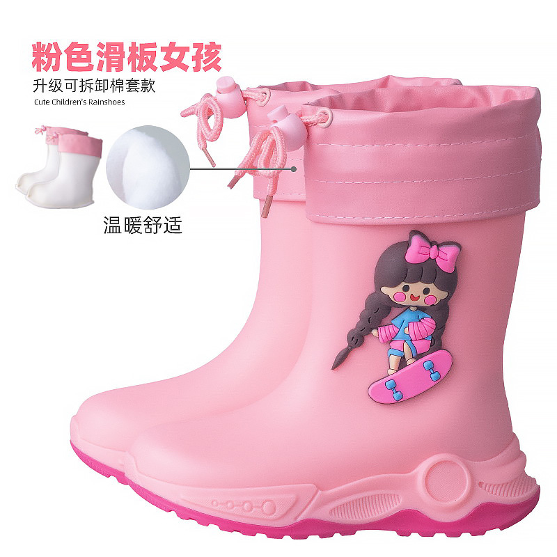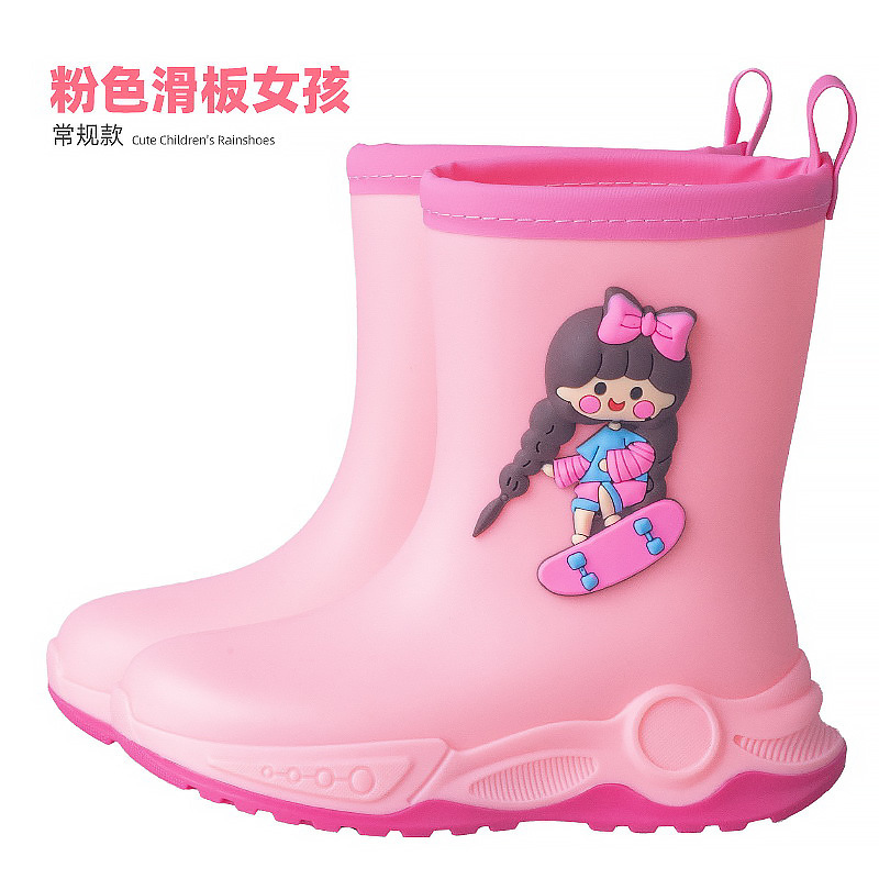 2024 아동용 레인부츠 7-12세용, 만화풍 커프스 디자인, 중간 길이, 패셔너블한 3~6세 남아 여아용 방수 워터슈즈