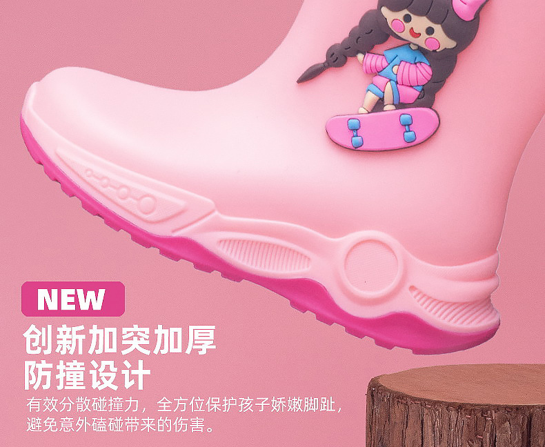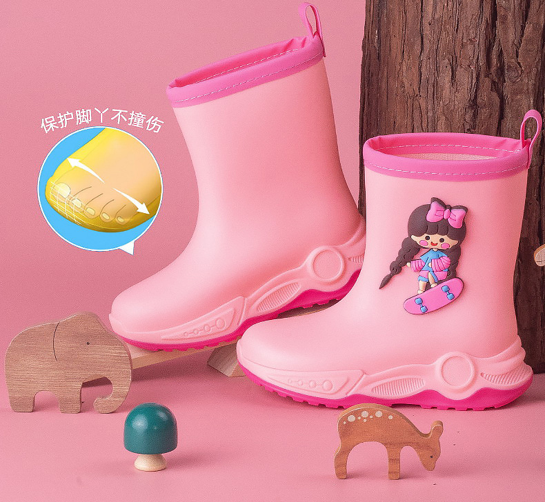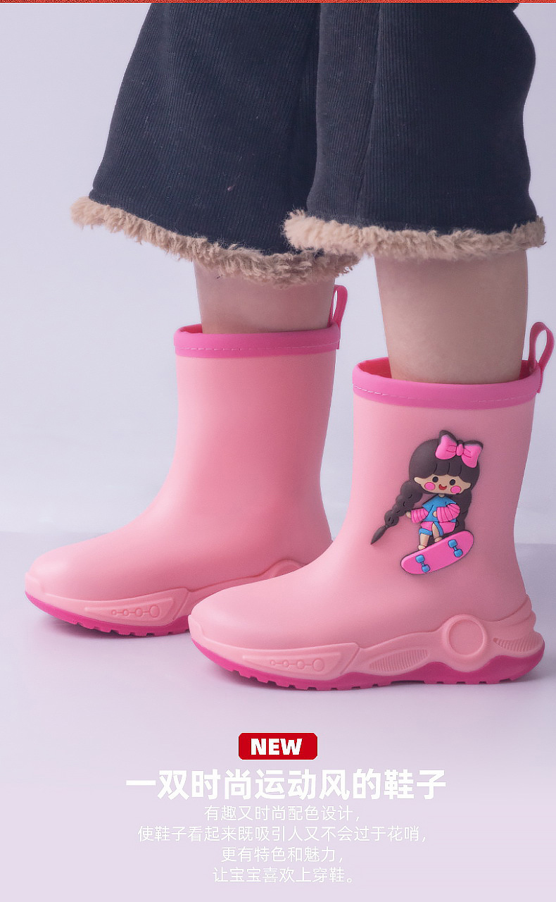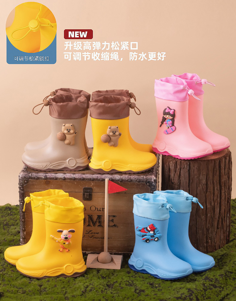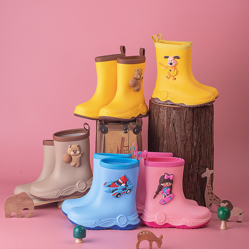 2024 아동용 레인부츠 7-12세용, 만화풍 커프스 디자인, 중간 길이, 패셔너블한 3~6세 남아 여아용 방수 워터슈즈스토어 가기
