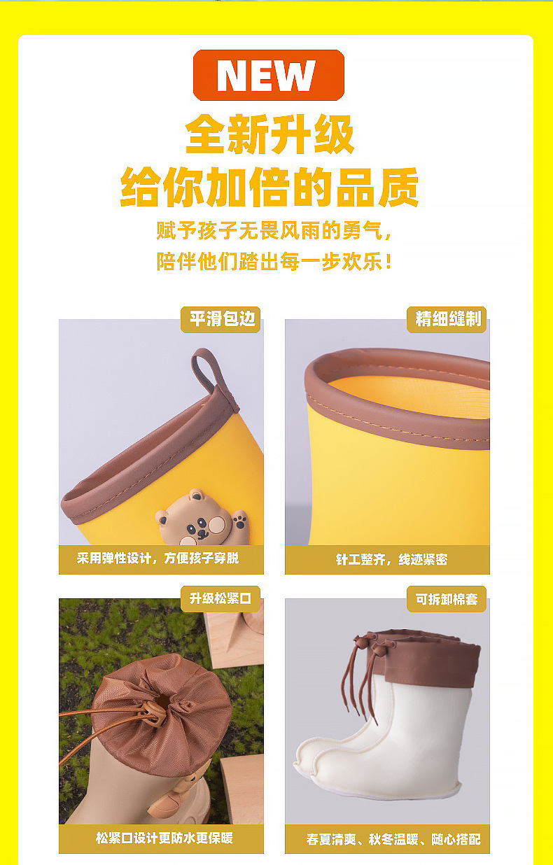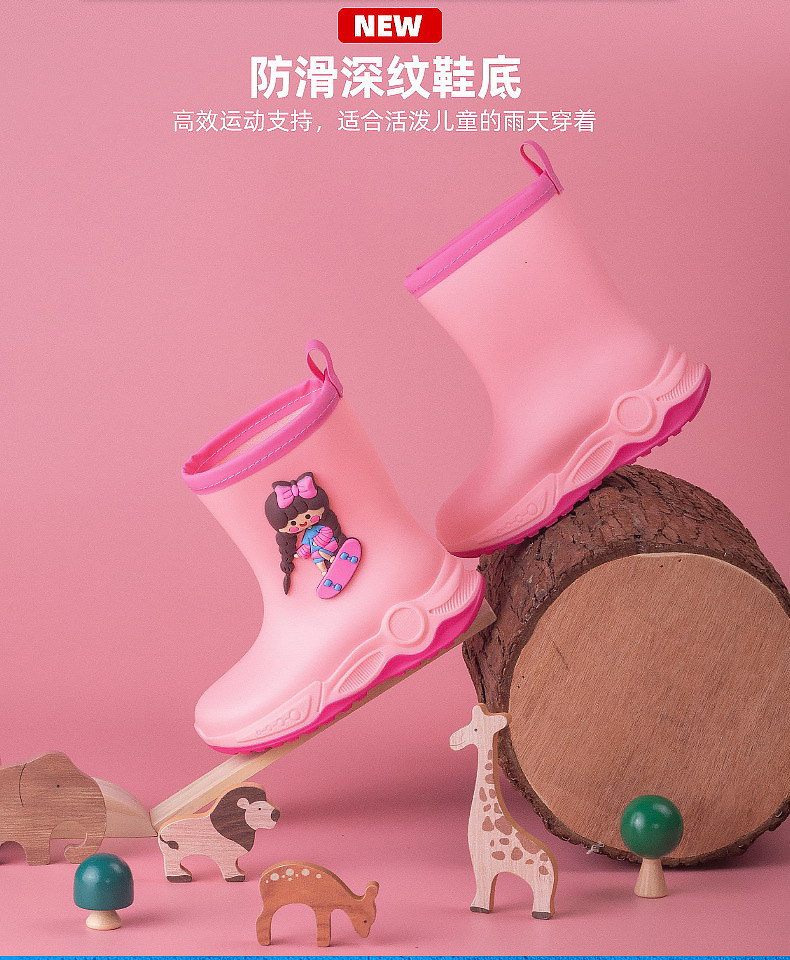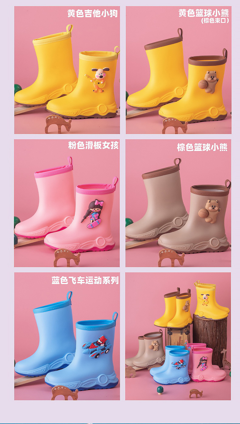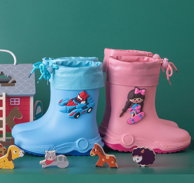 2024 아동용 레인부츠 7-12세용, 만화풍 커프스 디자인, 중간 길이, 패셔너블한 3~6세 남아 여아용 방수 워터슈즈스토어 가기