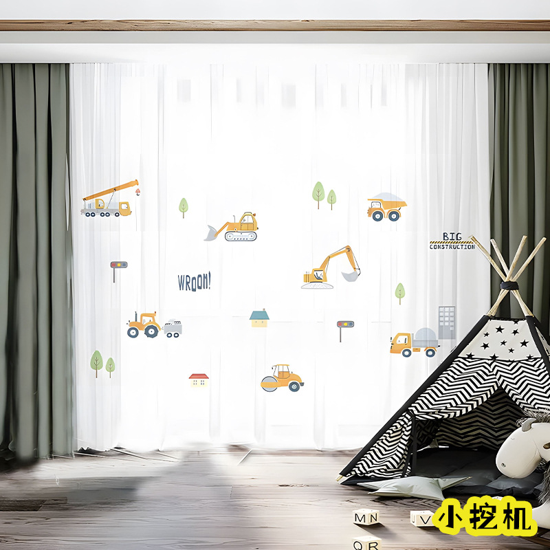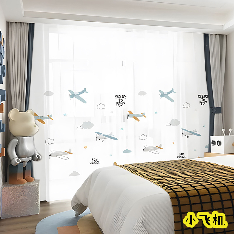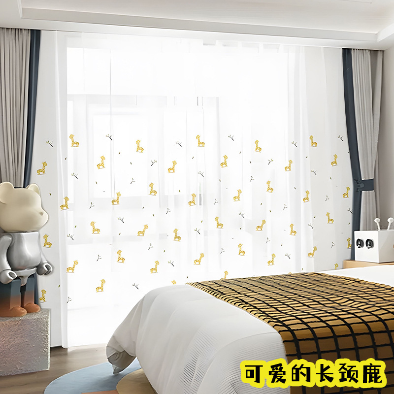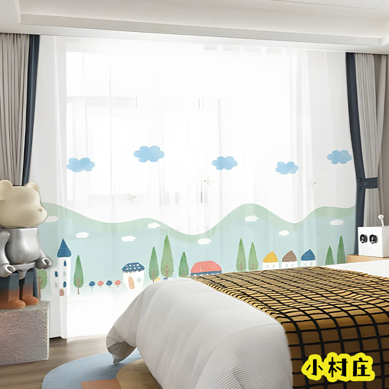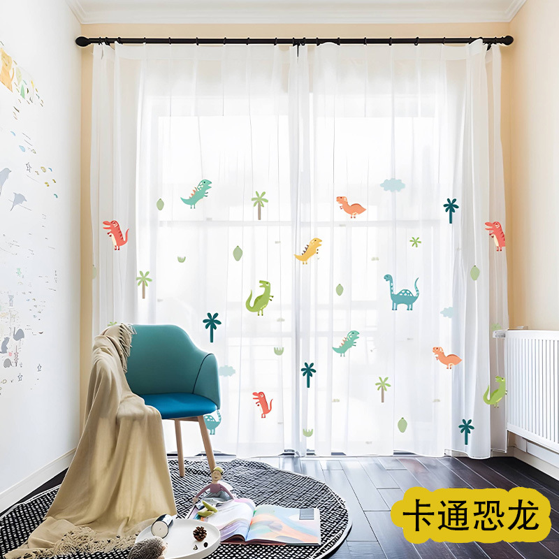 어린이 재미 디지털 인쇄 어린이 커튼 거즈 커튼 작은 신선한 만화 어린이 방 커튼 소년 소녀 공룡 곰스토어 가기