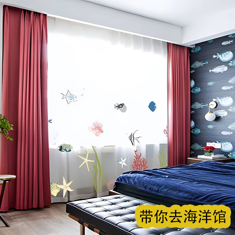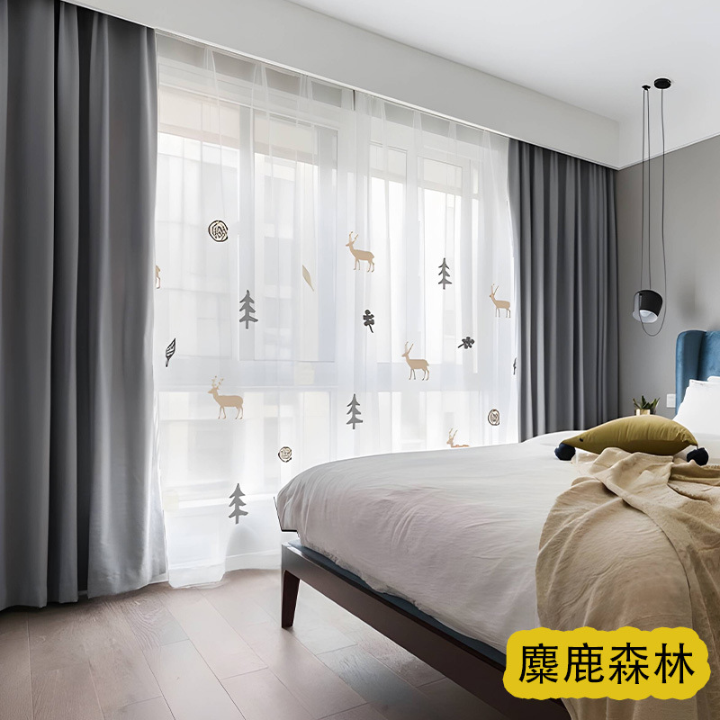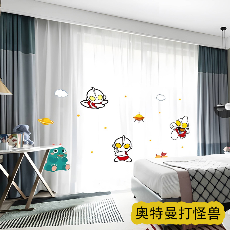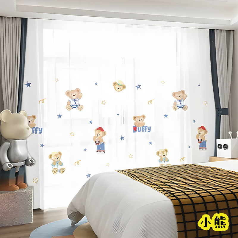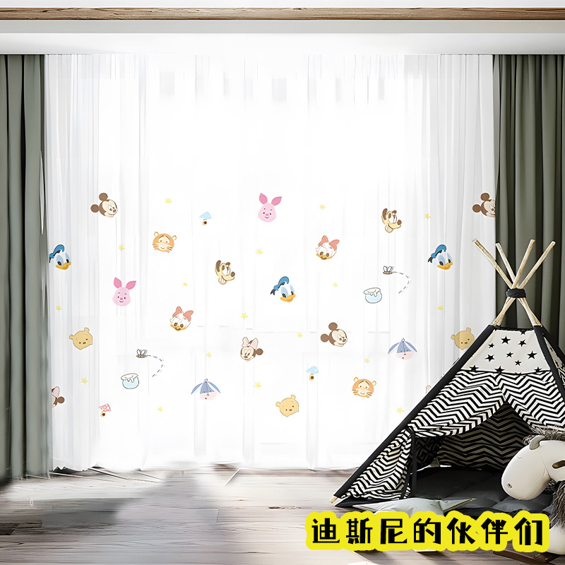 어린이 재미 디지털 인쇄 어린이 커튼 거즈 커튼 작은 신선한 만화 어린이 방 커튼 소년 소녀 공룡 곰스토어 가기