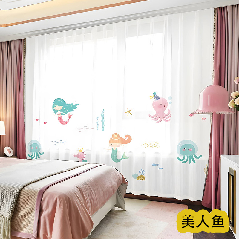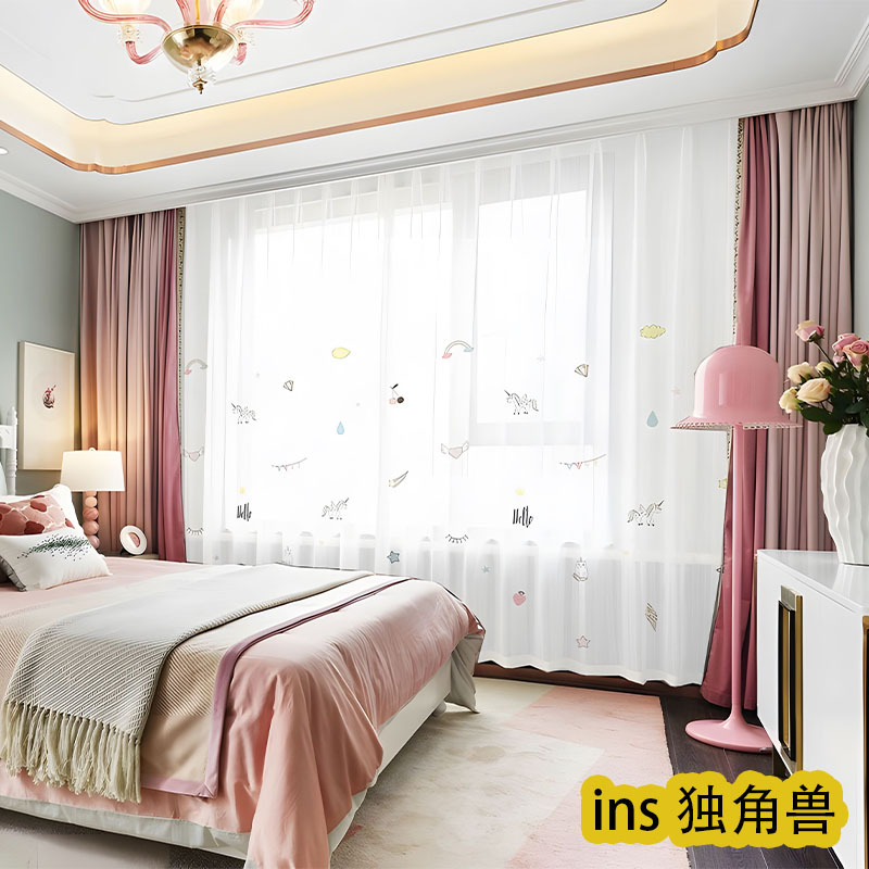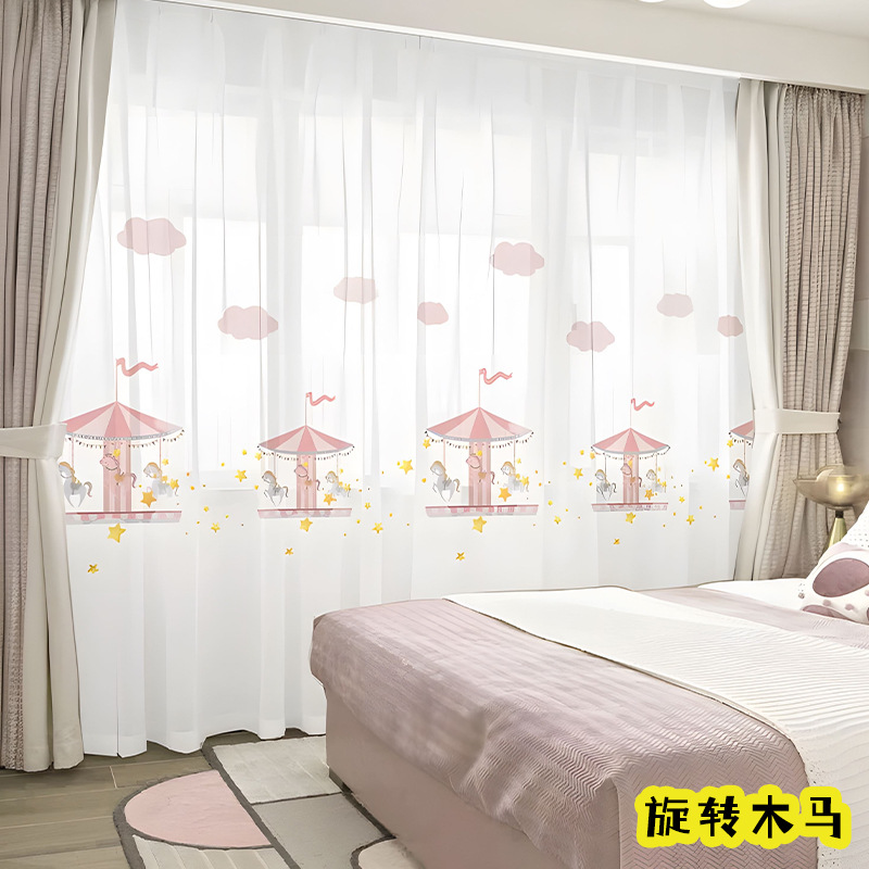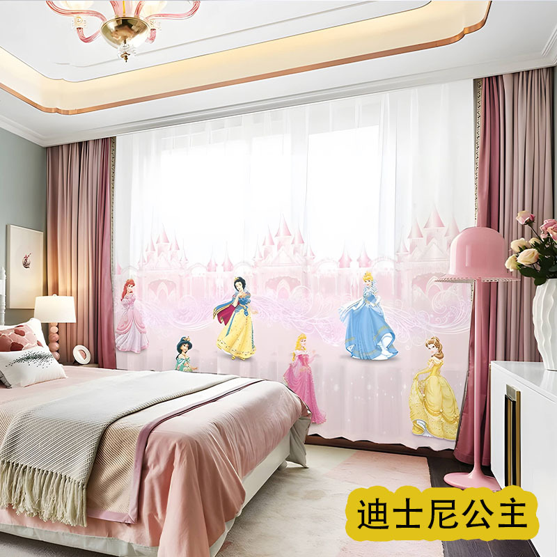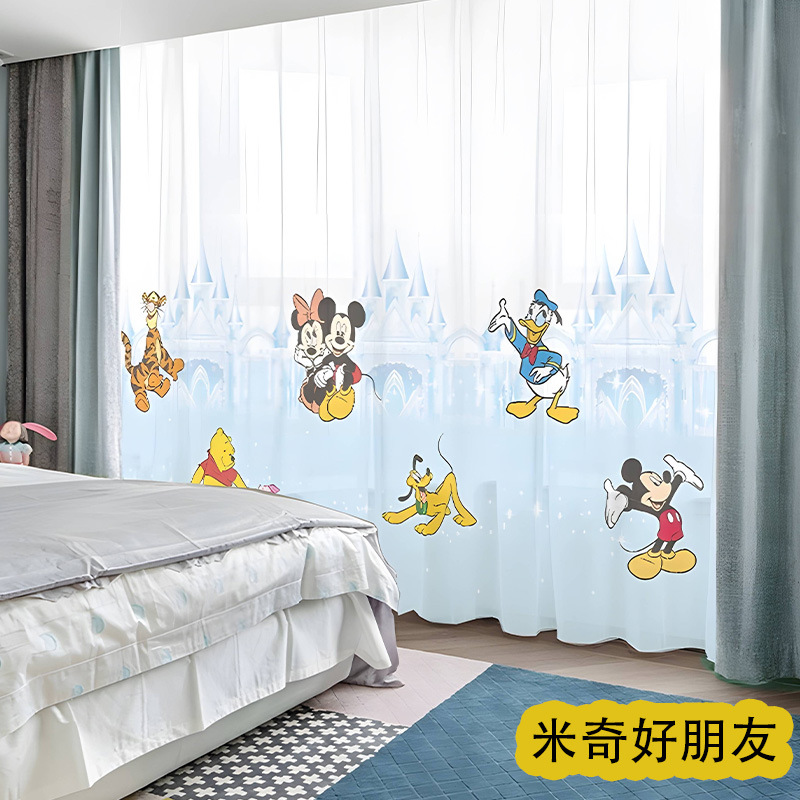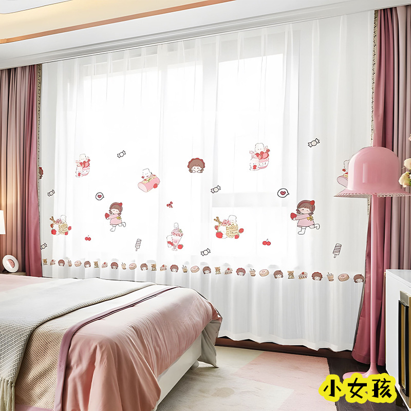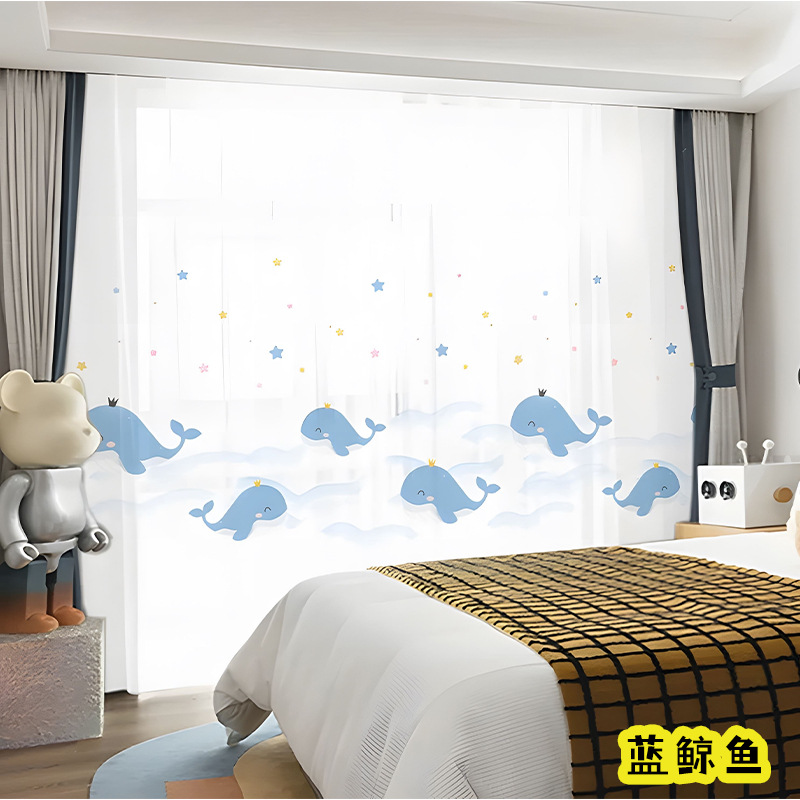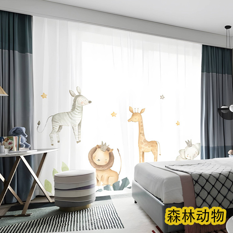 어린이 재미 디지털 인쇄 어린이 커튼 거즈 커튼 작은 신선한 만화 어린이 방 커튼 소년 소녀 공룡 곰