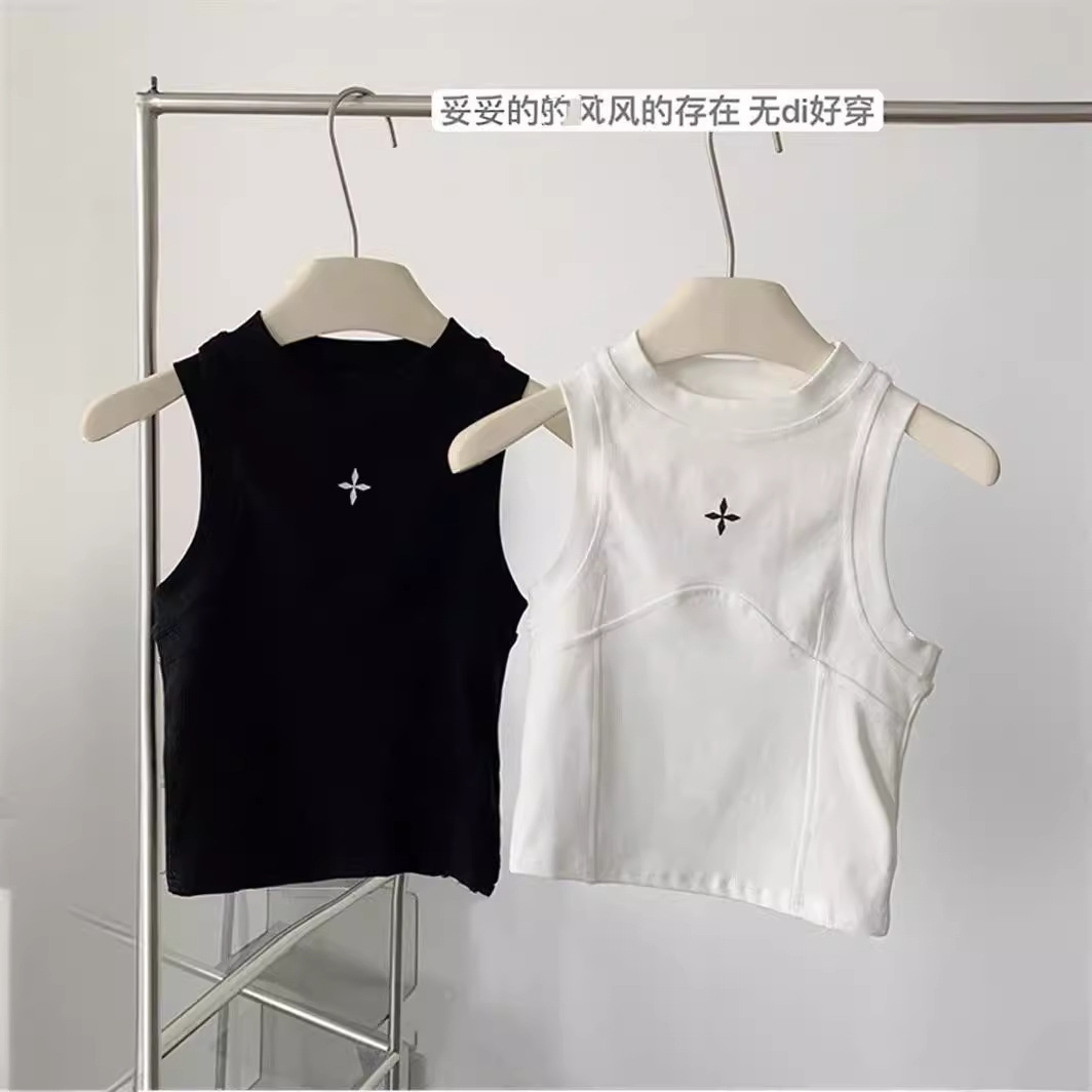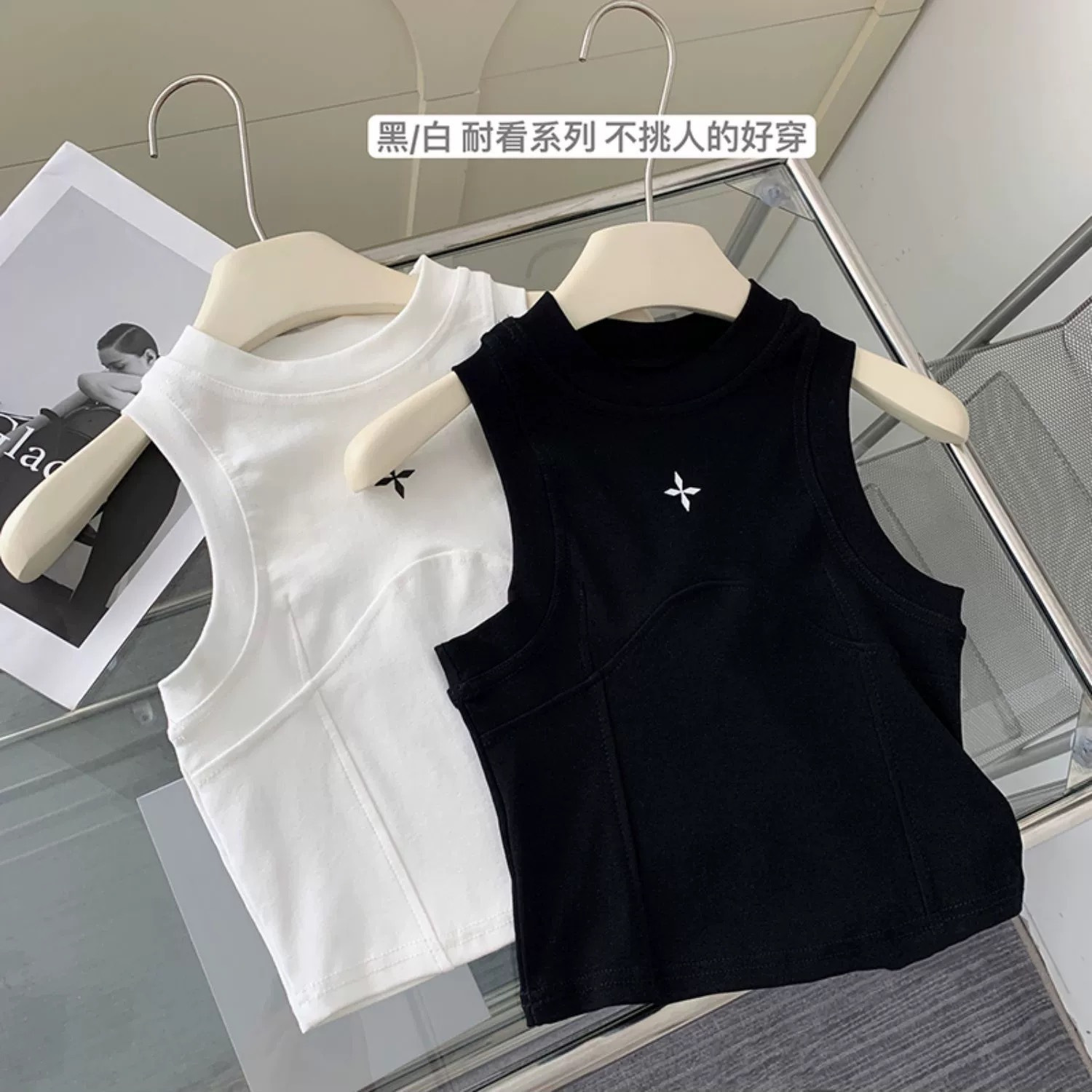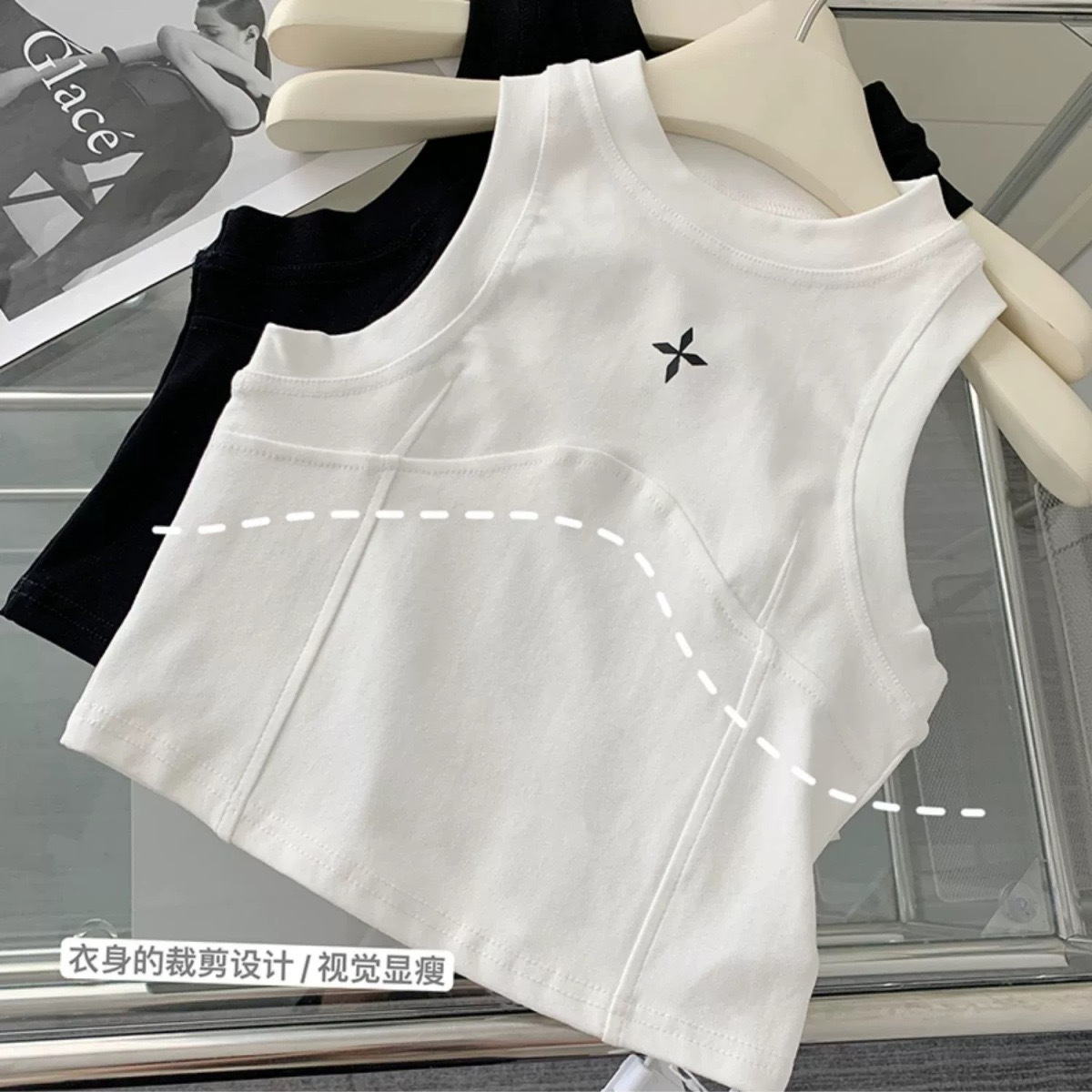 소녀 면 짧은 조끼 I 자형 조끼 2025 어린이 여름 새로운 디자인 감각 틈새 슬링 벨트 외부 착용 탑스토어 가기
