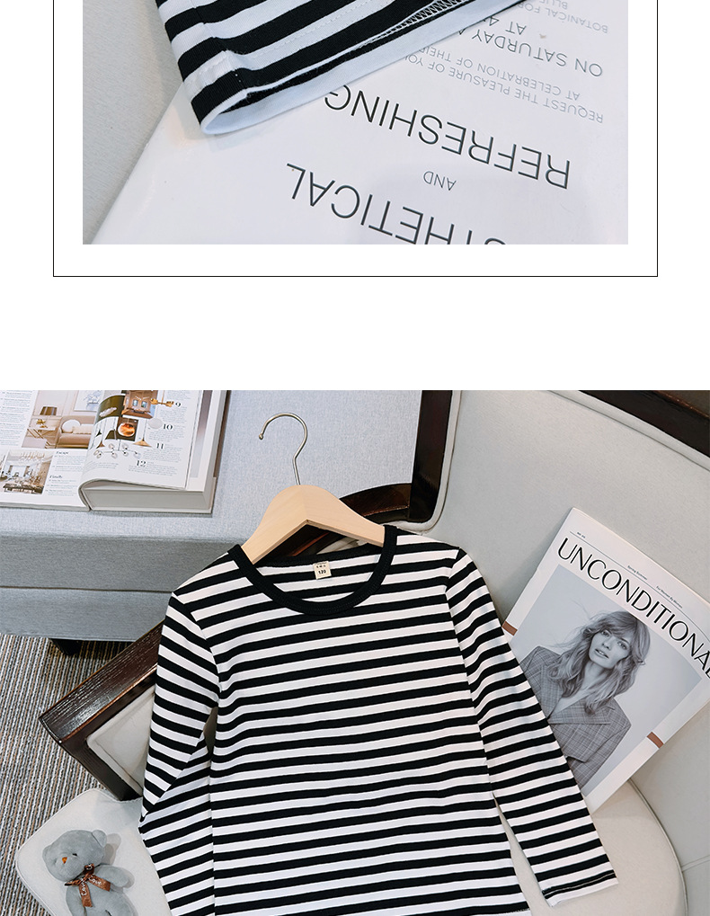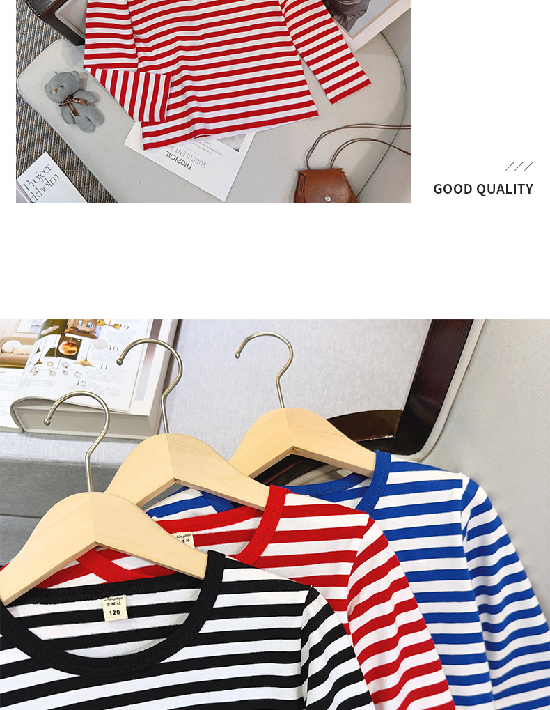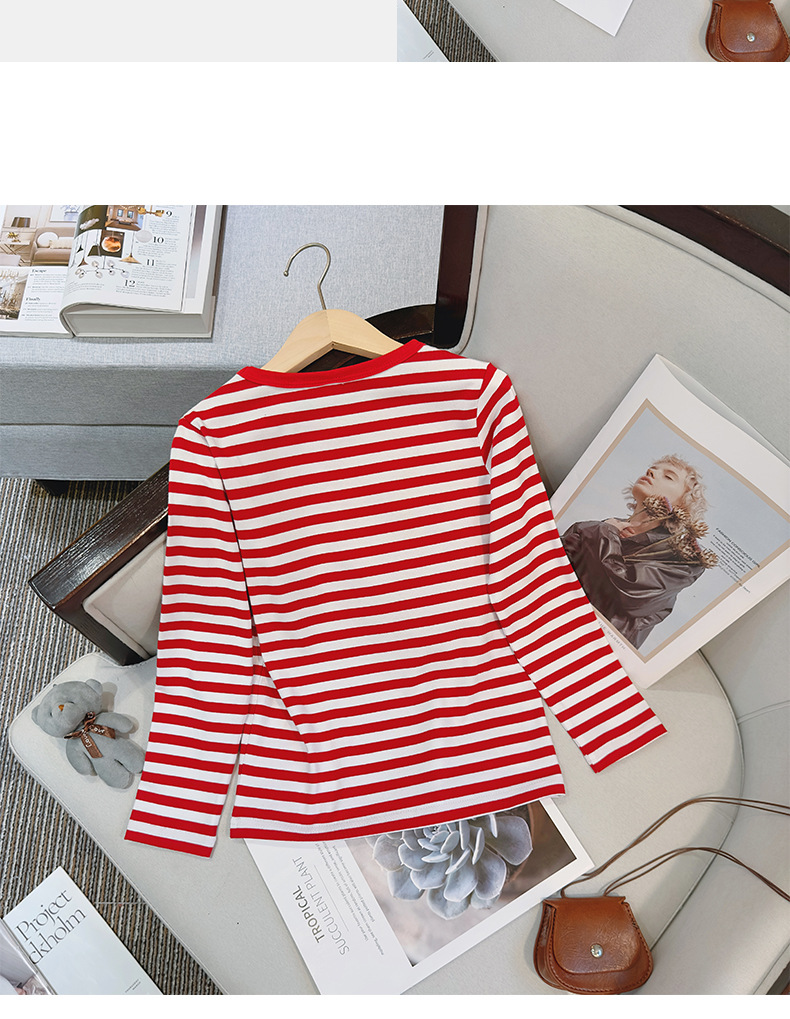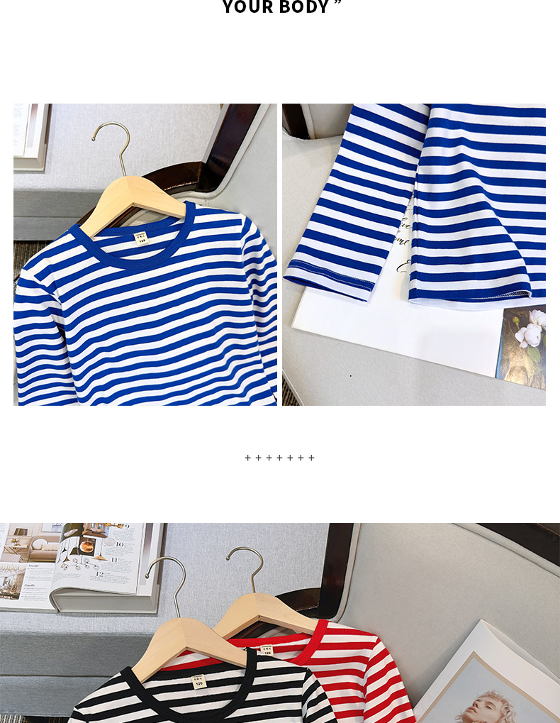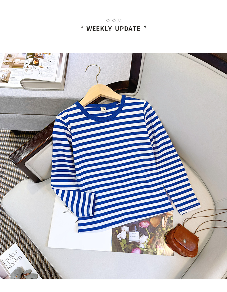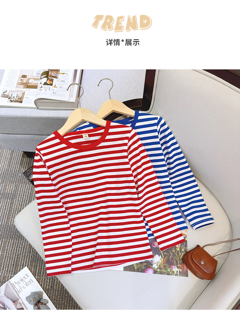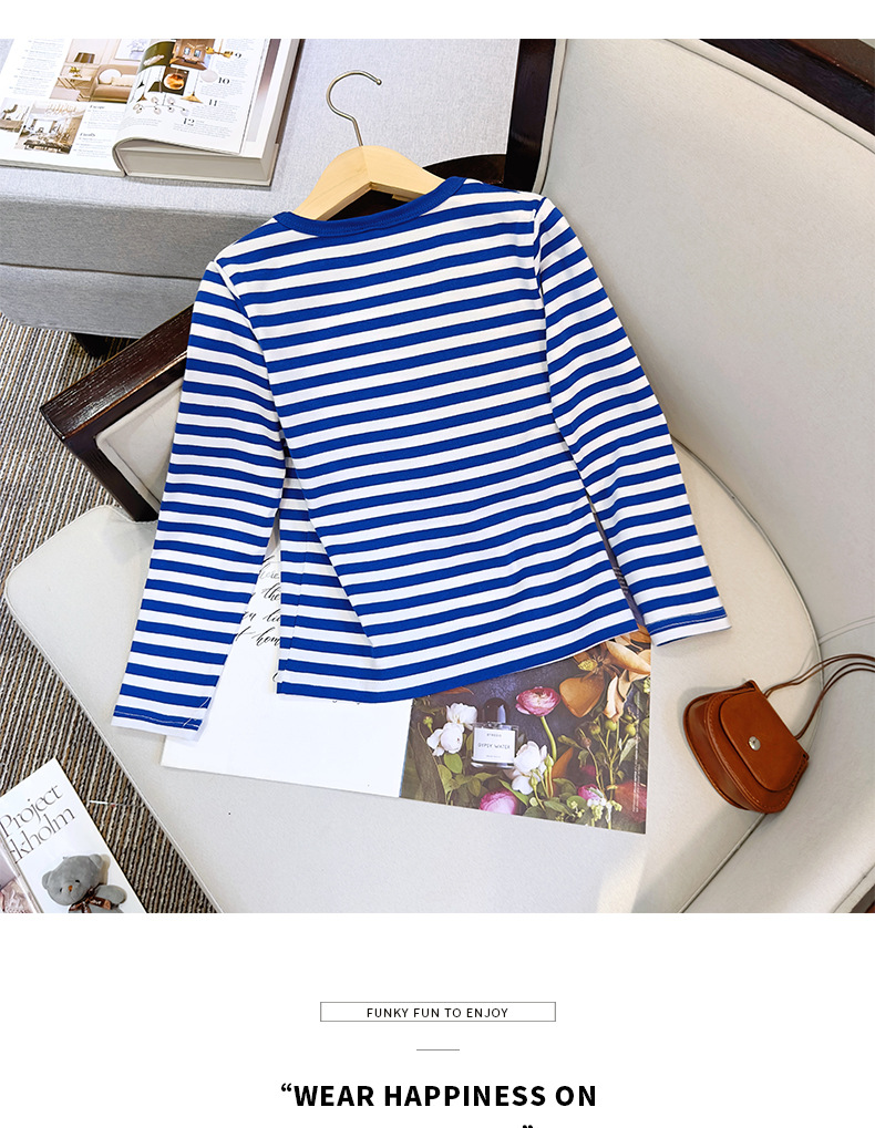 대형, 중소 어린이 긴팔 티셔츠 봄과 가을 새로운 2024 어린이 봄 바닥 셔츠 얇은 줄무늬 바다 소울 셔츠 도매스토어 가기