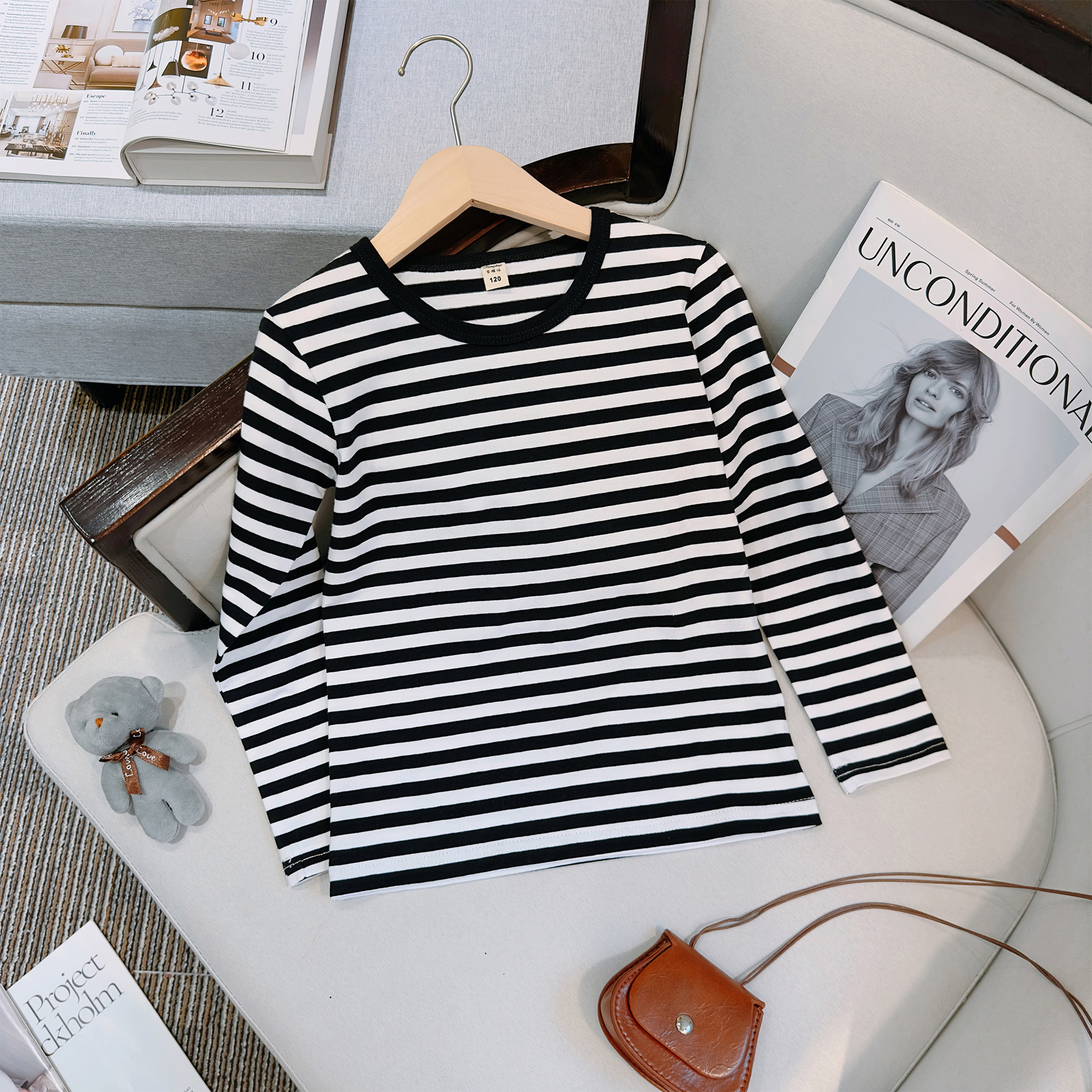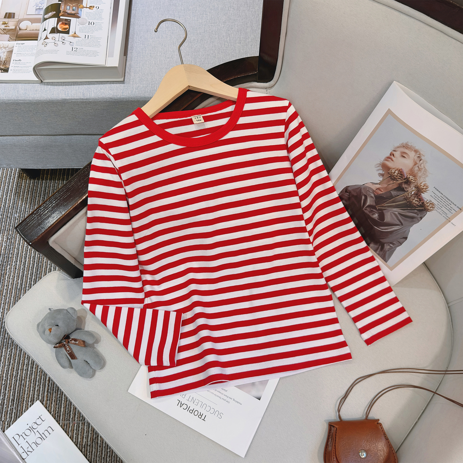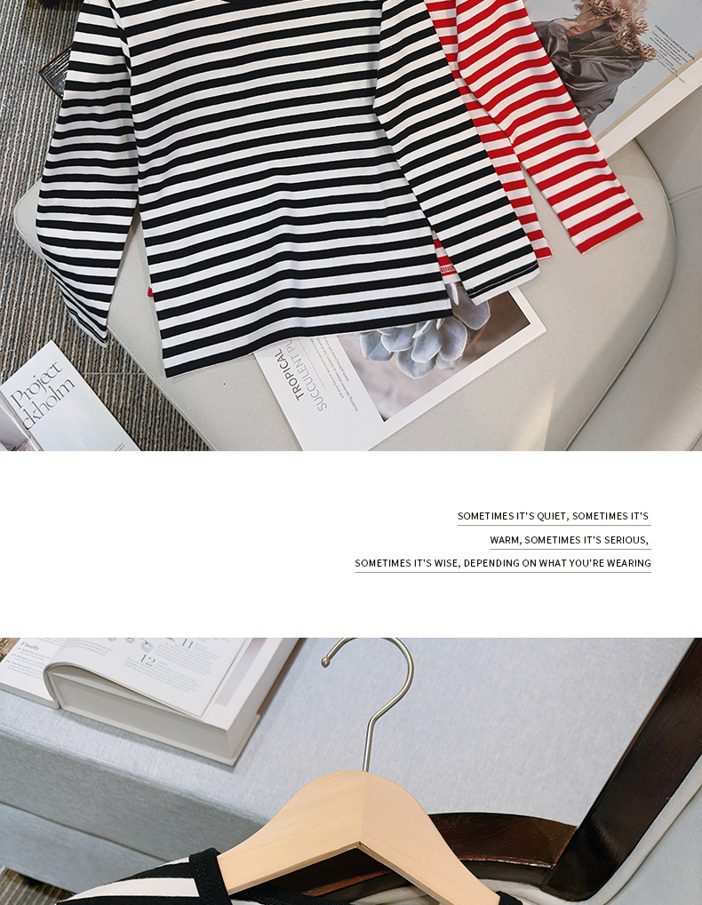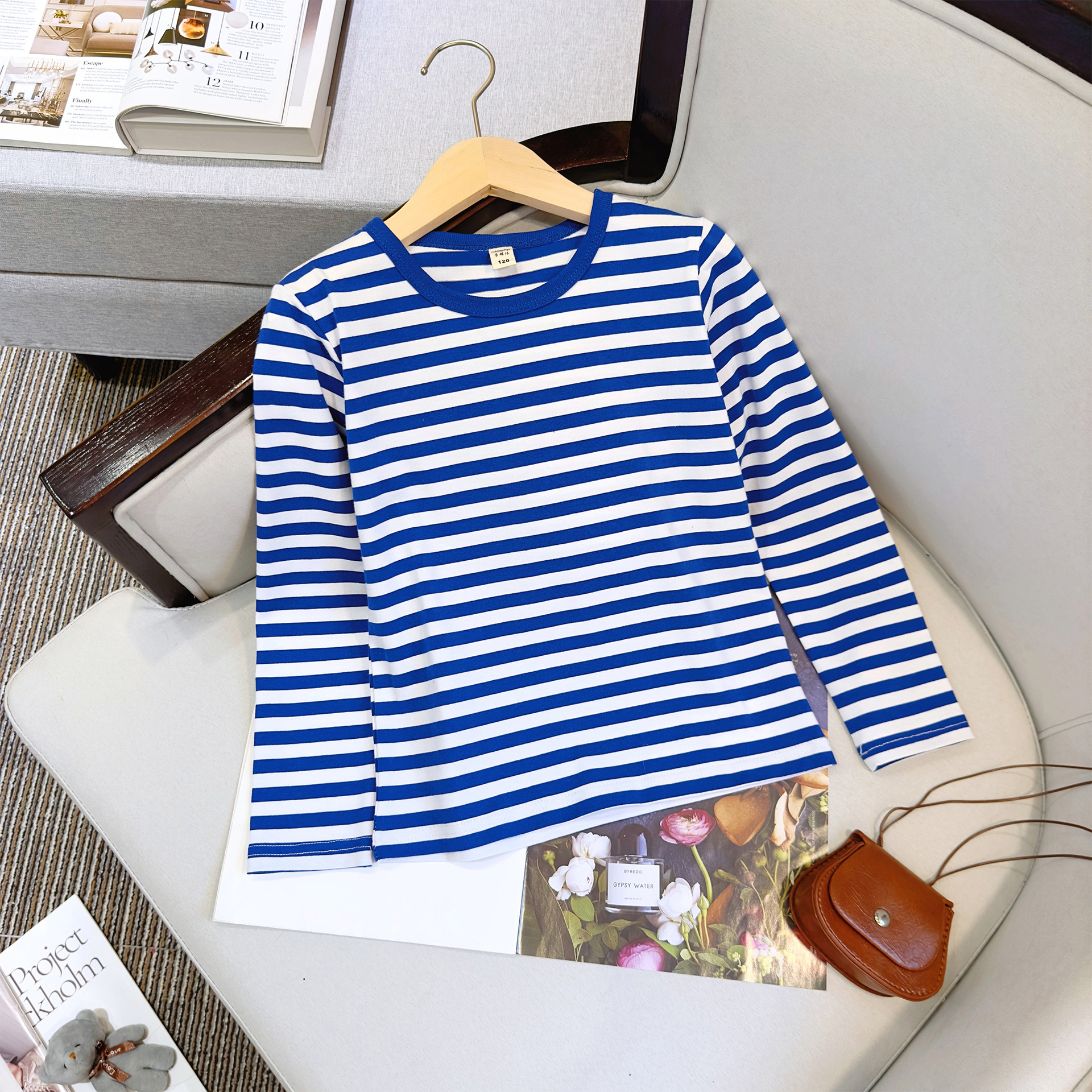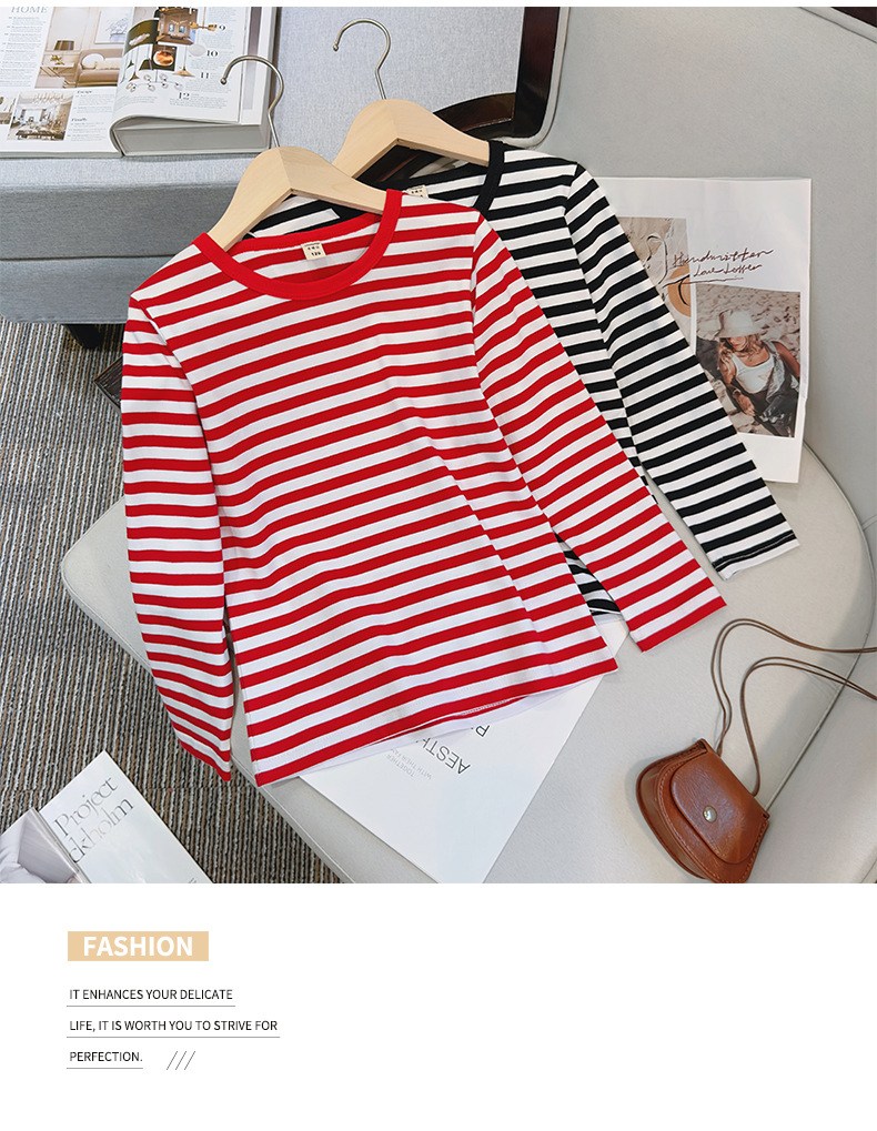 대형, 중소 어린이 긴팔 티셔츠 봄과 가을 새로운 2024 어린이 봄 바닥 셔츠 얇은 줄무늬 바다 소울 셔츠 도매스토어 가기
