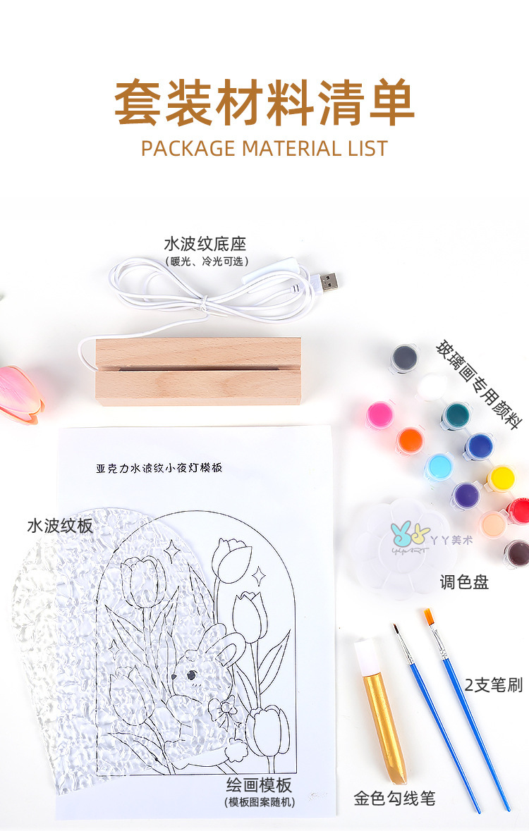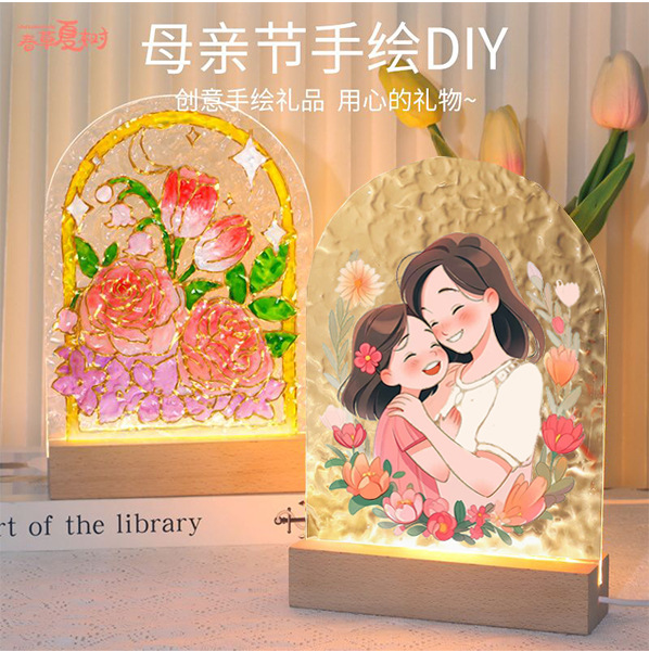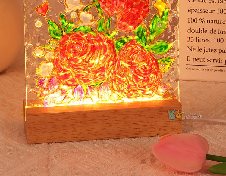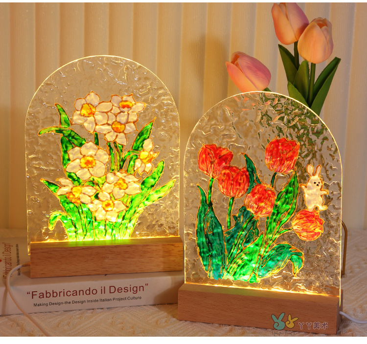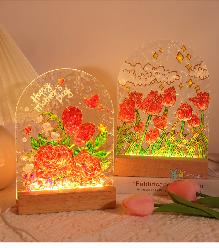 튤립 유리 그림 나이트 라이트 수제 DIY 그림 소재 가방 물 파문 아크릴 보드 여신 축제 포멜로
