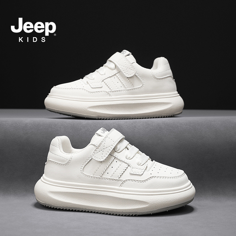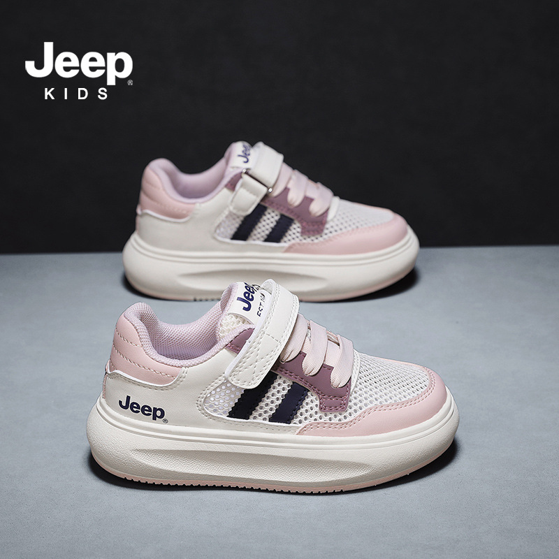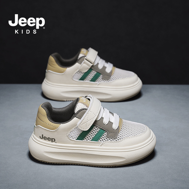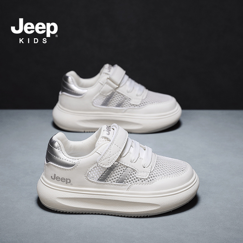지프 어린이 신발 소년 소녀 스포츠 클래스 화이트 신발 2024 여름 새로운 벨크로 스포츠 보드 신발 통기성 메쉬 표면