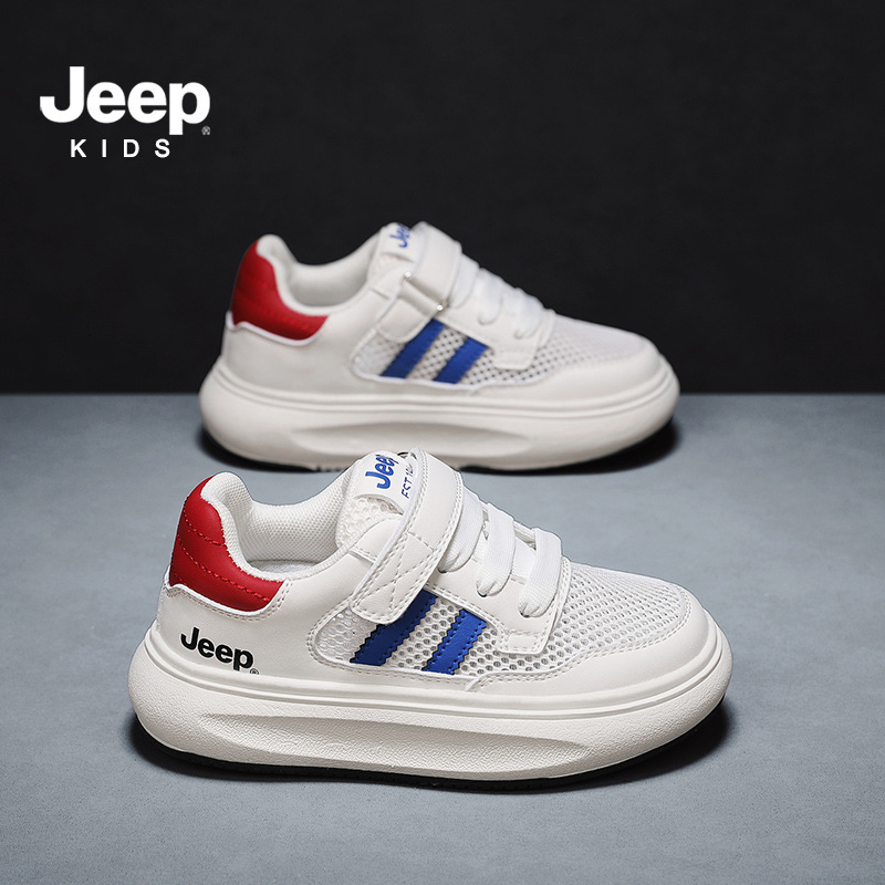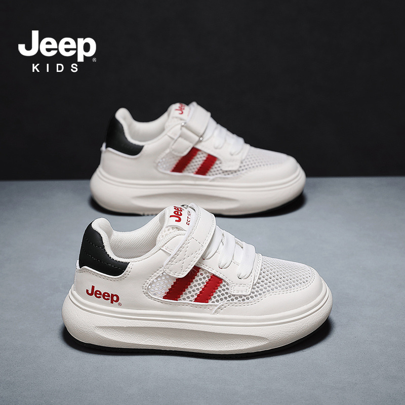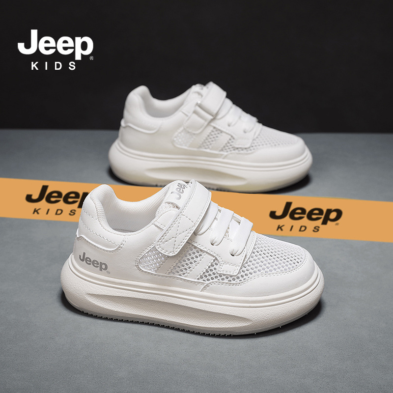 지프 어린이 신발 소년 소녀 스포츠 클래스 화이트 신발 2024 여름 새로운 벨크로 스포츠 보드 신발 통기성 메쉬 표면스토어 가기
