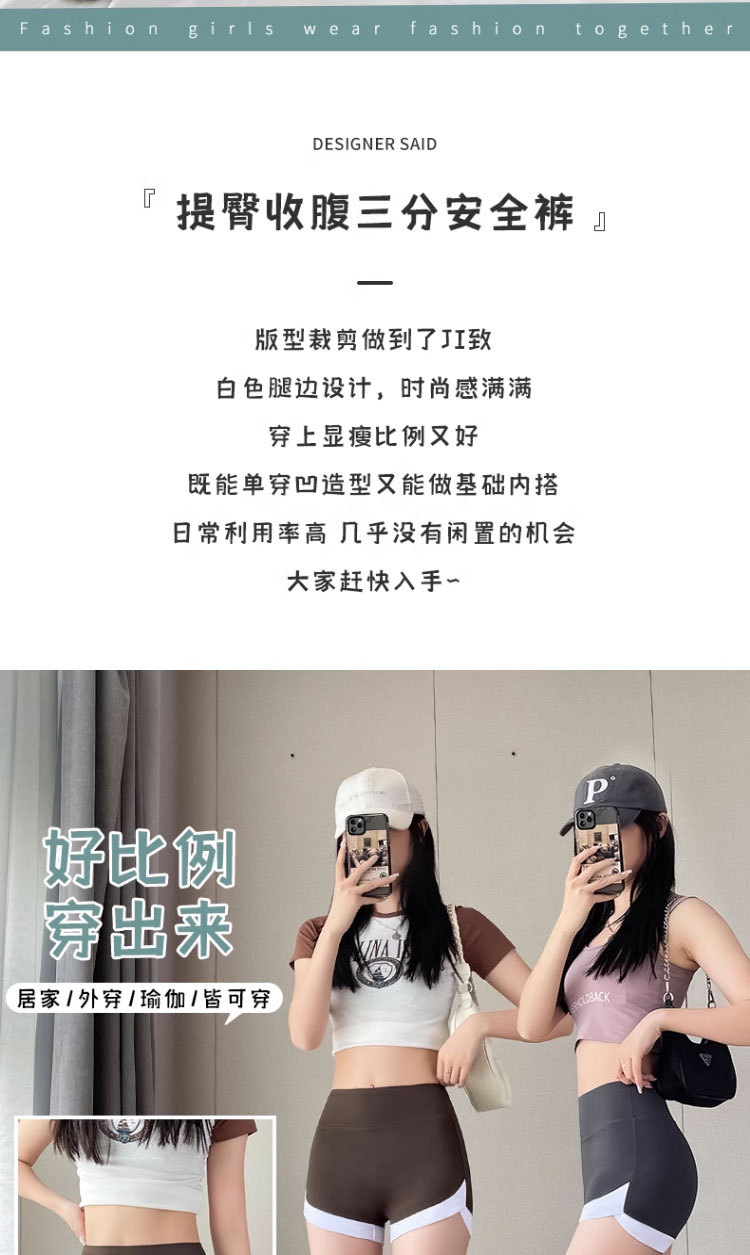 안전 바지 안티 러닝 라이트 노헴 레깅스 여성의 여름 얇은 외부 착용 단색 상어 바지 3 점 반바지 여름스토어 가기