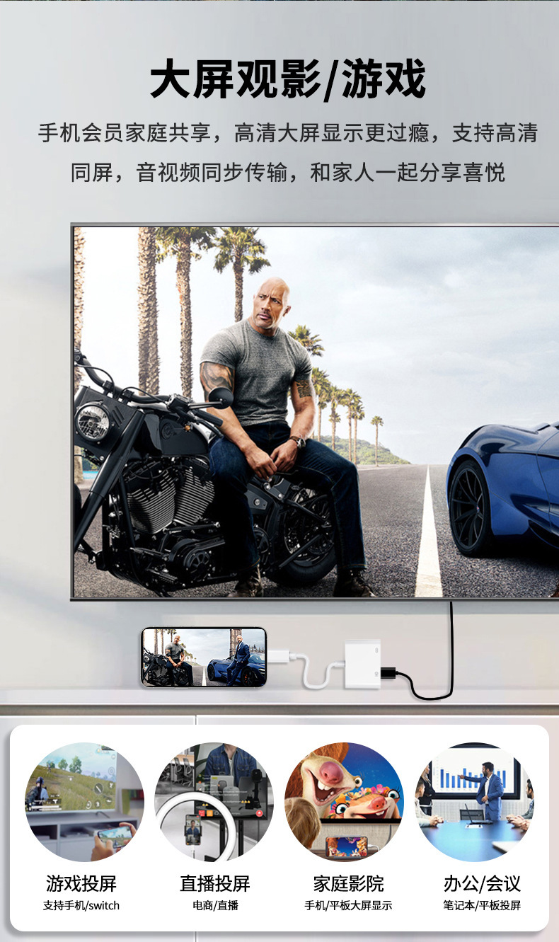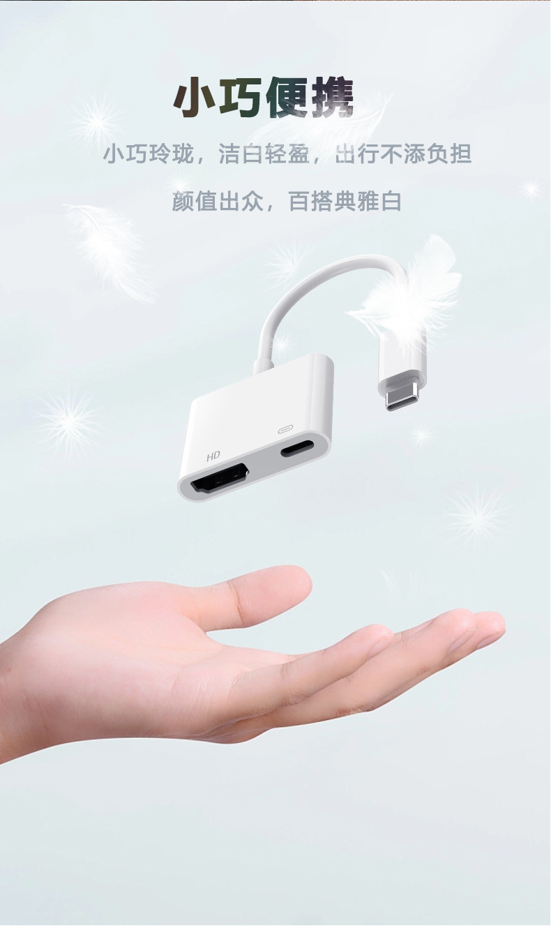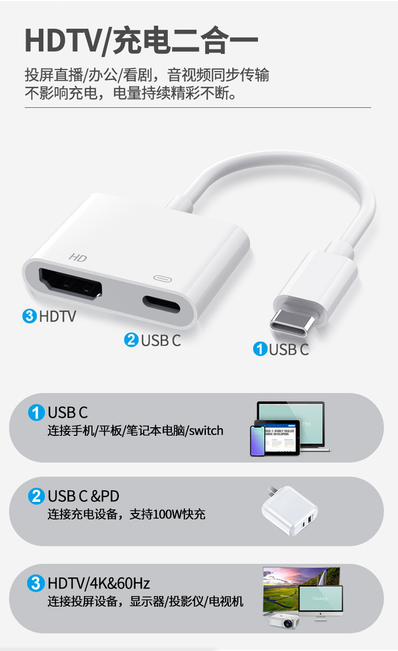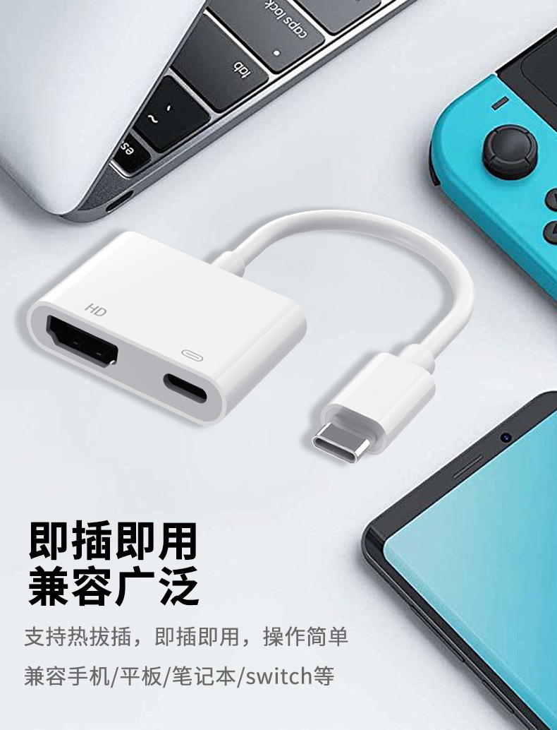 타입-C to HDMI 4K 고화질 PD 비디오 케이블, 애플 15 휴대폰 동일 화면 연결 및 휴대폰 고화질 화면 프로젝션에 적합스토어 가기