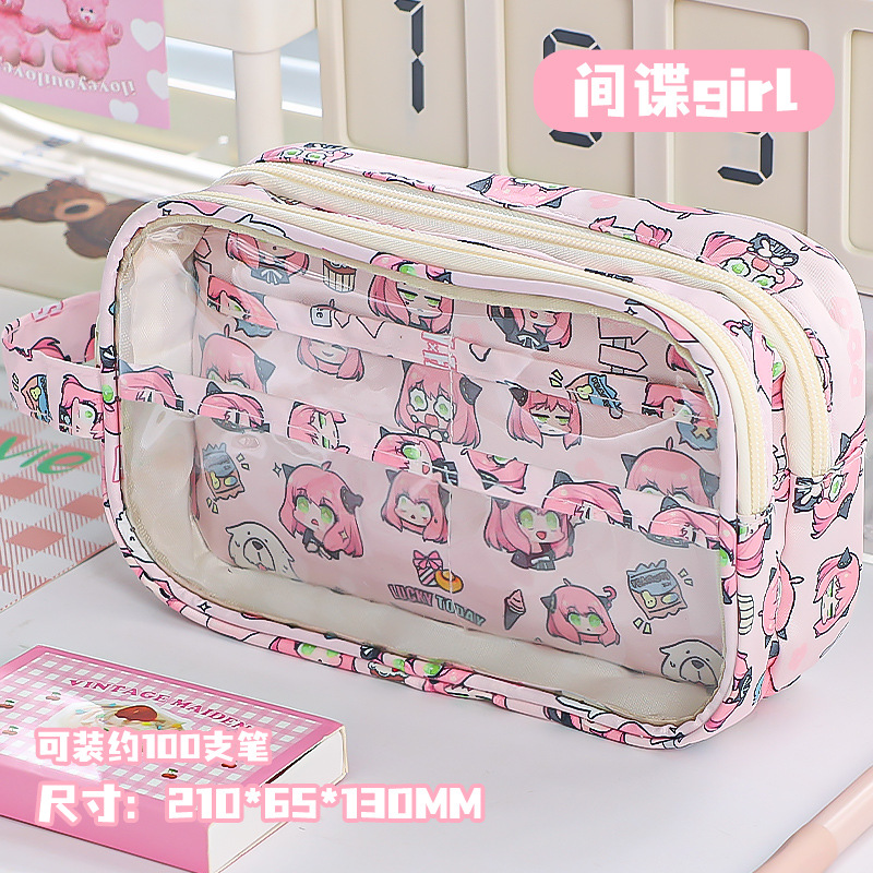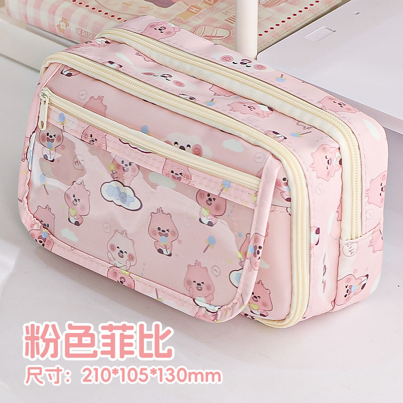 • 더블 풀 전면 투명 스크린 필통 - 핑크 플레이 하우스