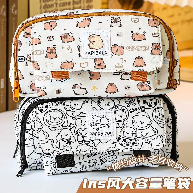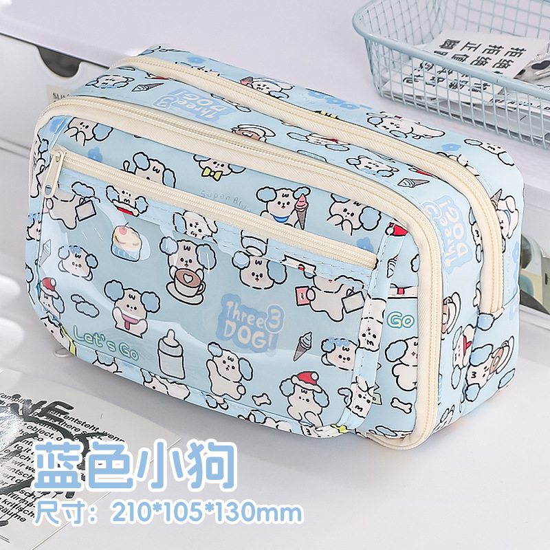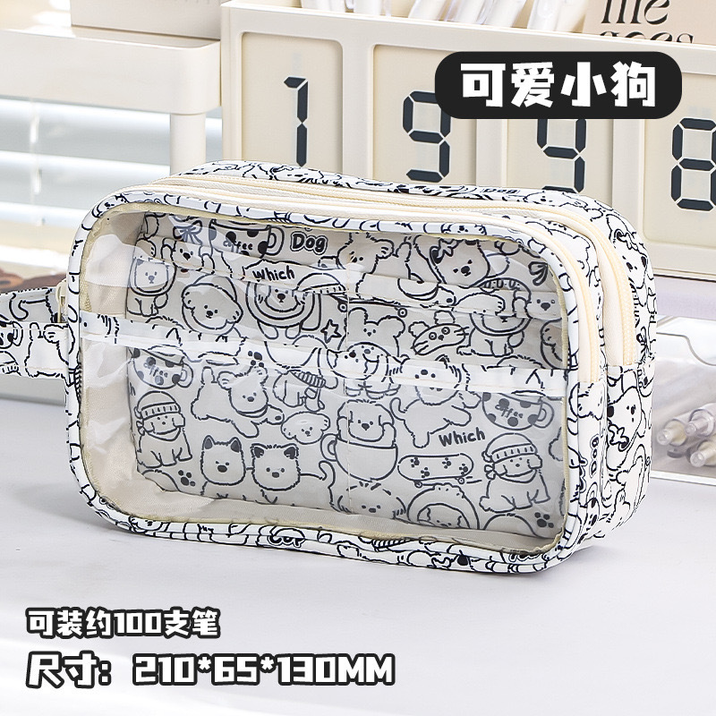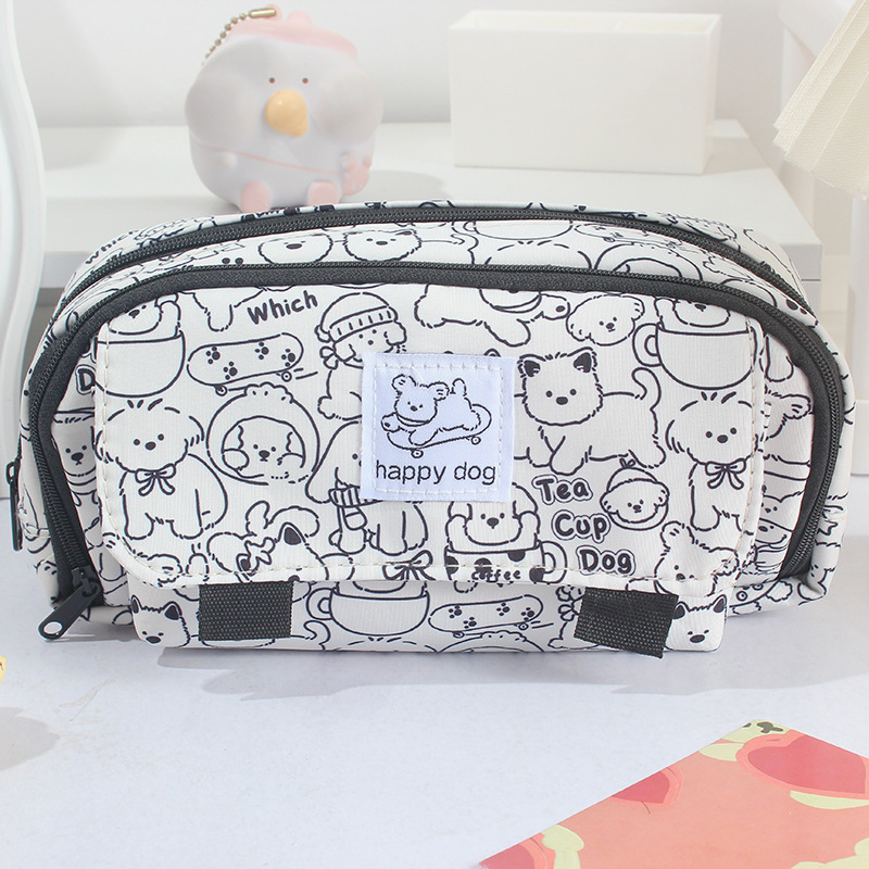 3877 새로운 흑백 강아지 슈퍼 대용량 학생 연필 가방 멀티 구획 학생 문구 보관 연필 가방