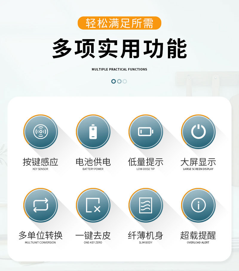 时钟、闹钟、温度、皮重功能,零点跟踪。