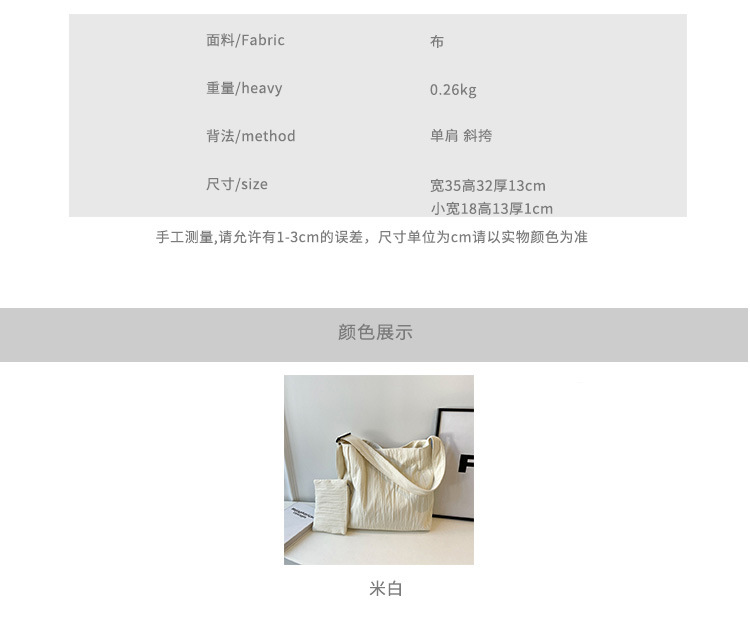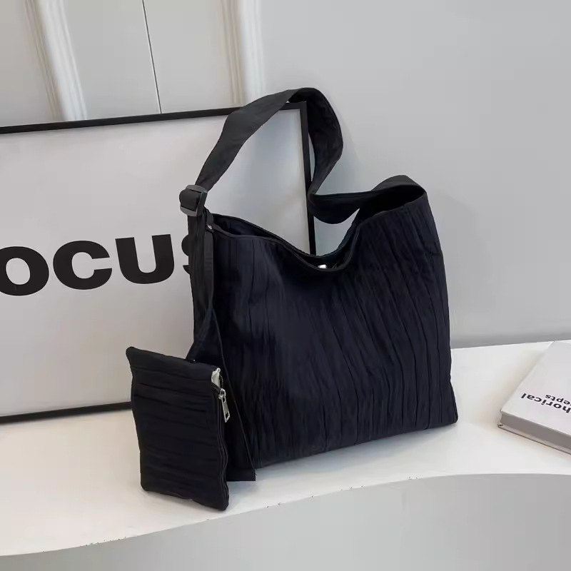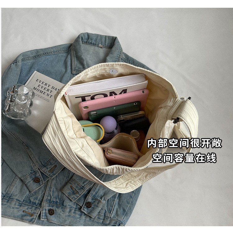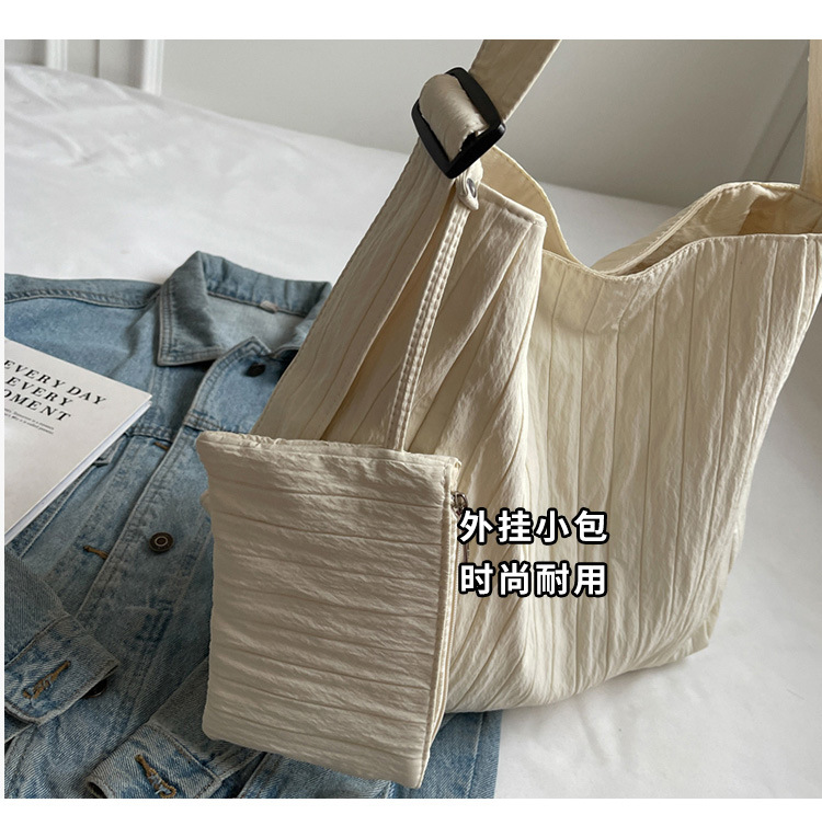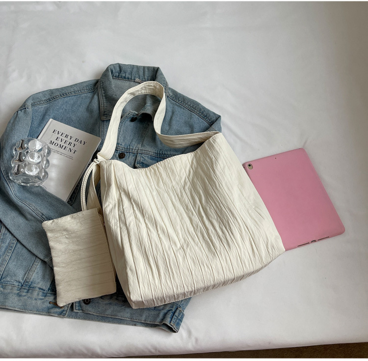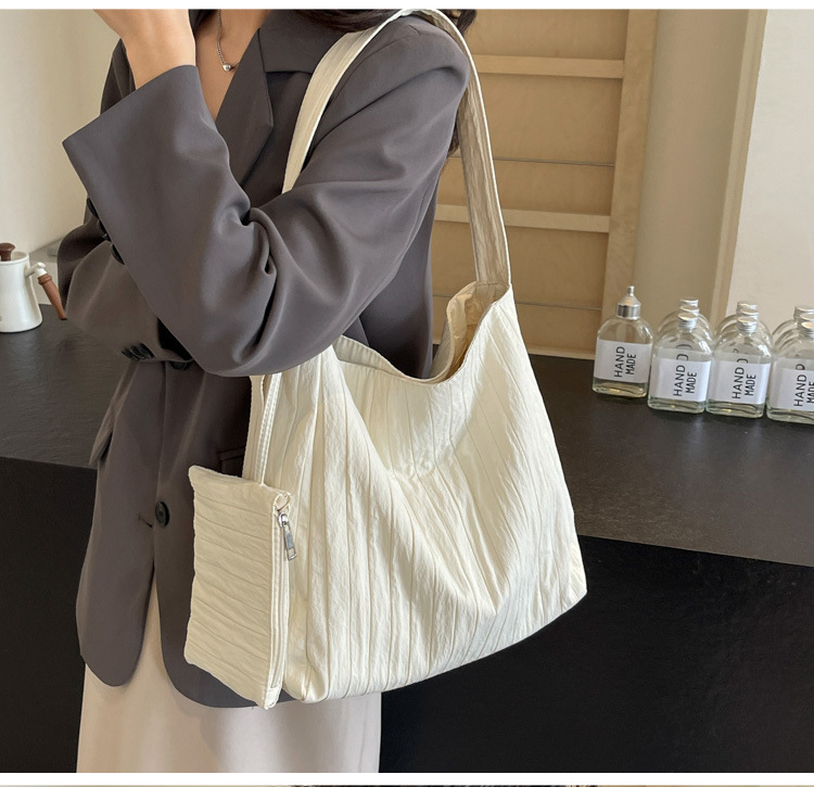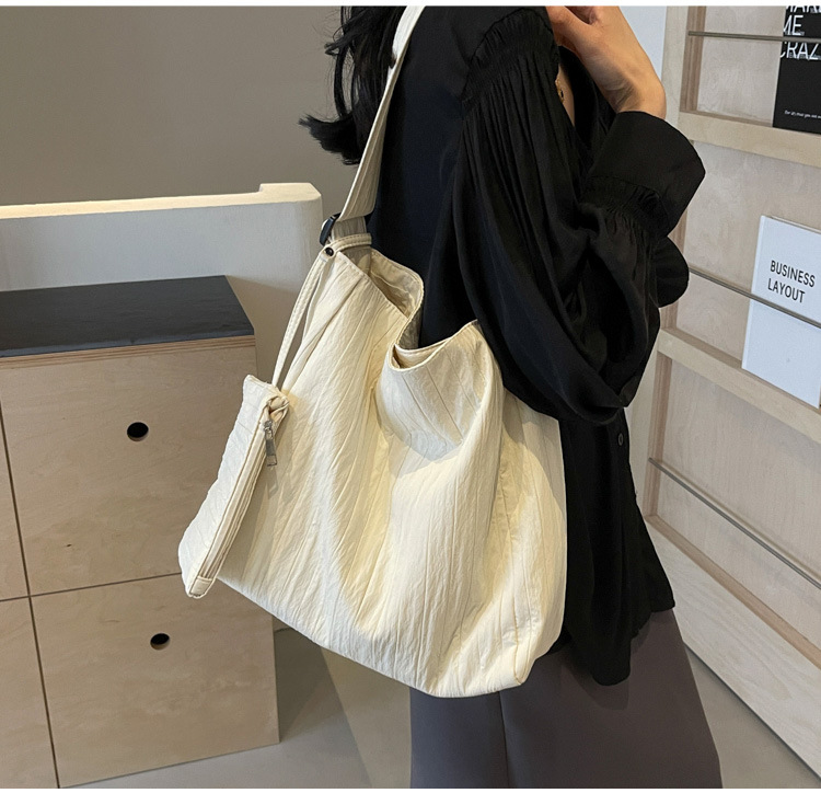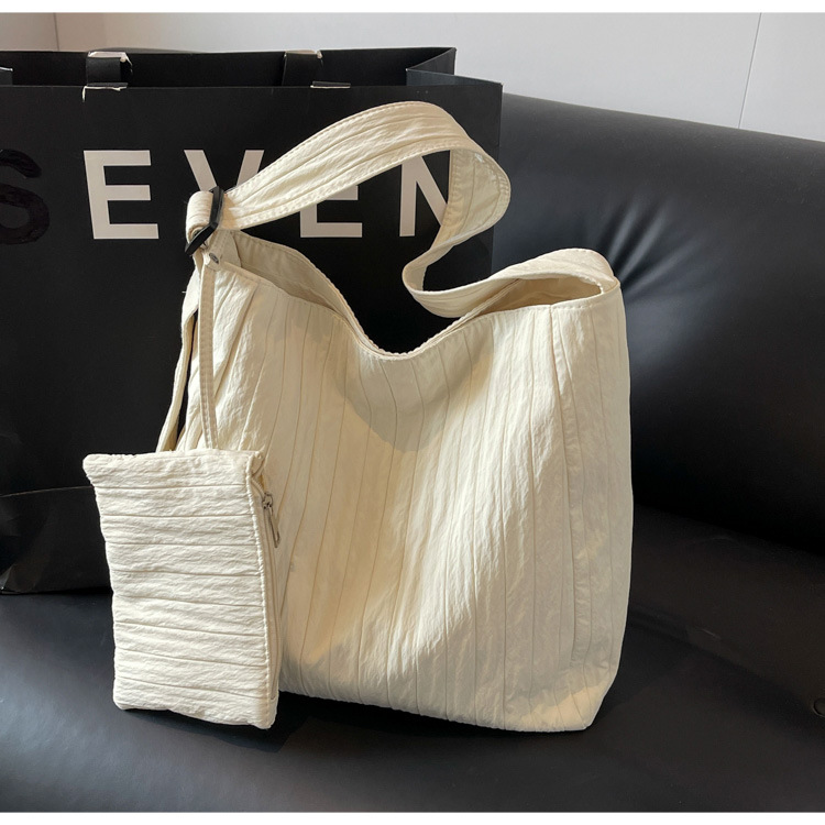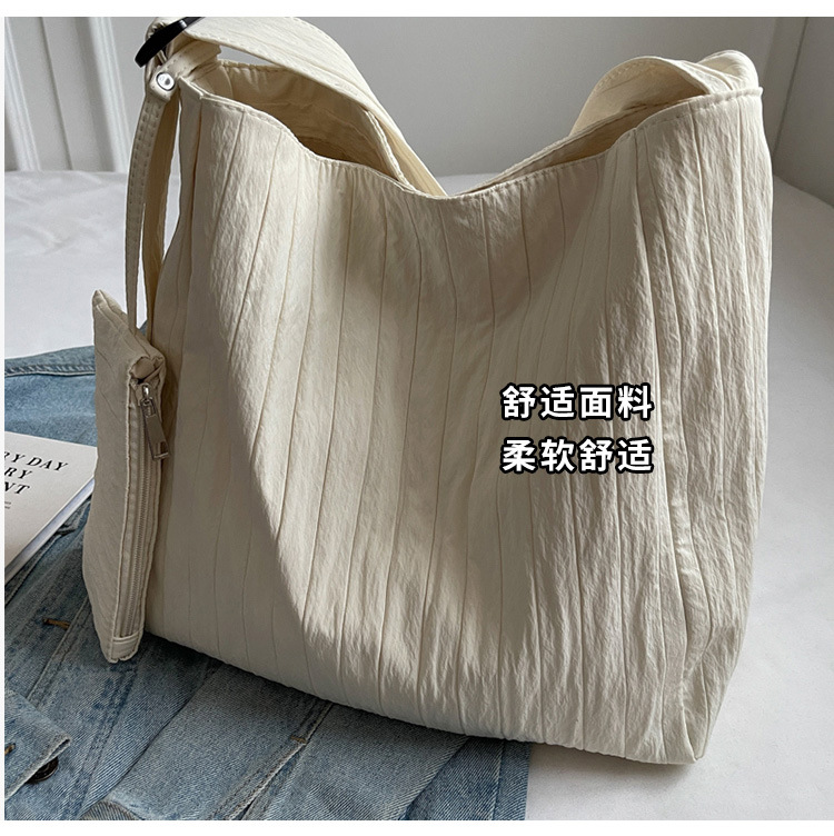 2024 여름 크로스보더 백 주름진 숄더백 토트백 캔버스백 대용량 여성용 숄더백 크로스백 핸드백스토어 가기