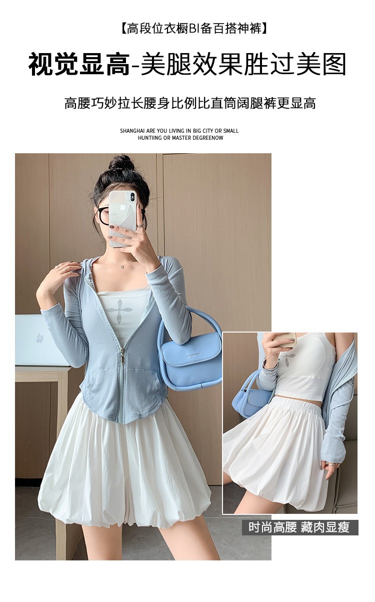 흰색 꽃 봉오리 반바지 여름 여성 얇은 섹션 2025 새로운 스타일 작은 하이 웨이스트 와이드 레그 슬리밍 푹신한 블루머 퀼로트스토어 가기
