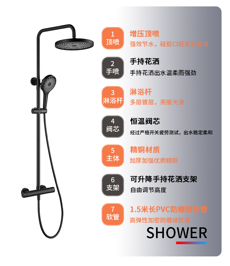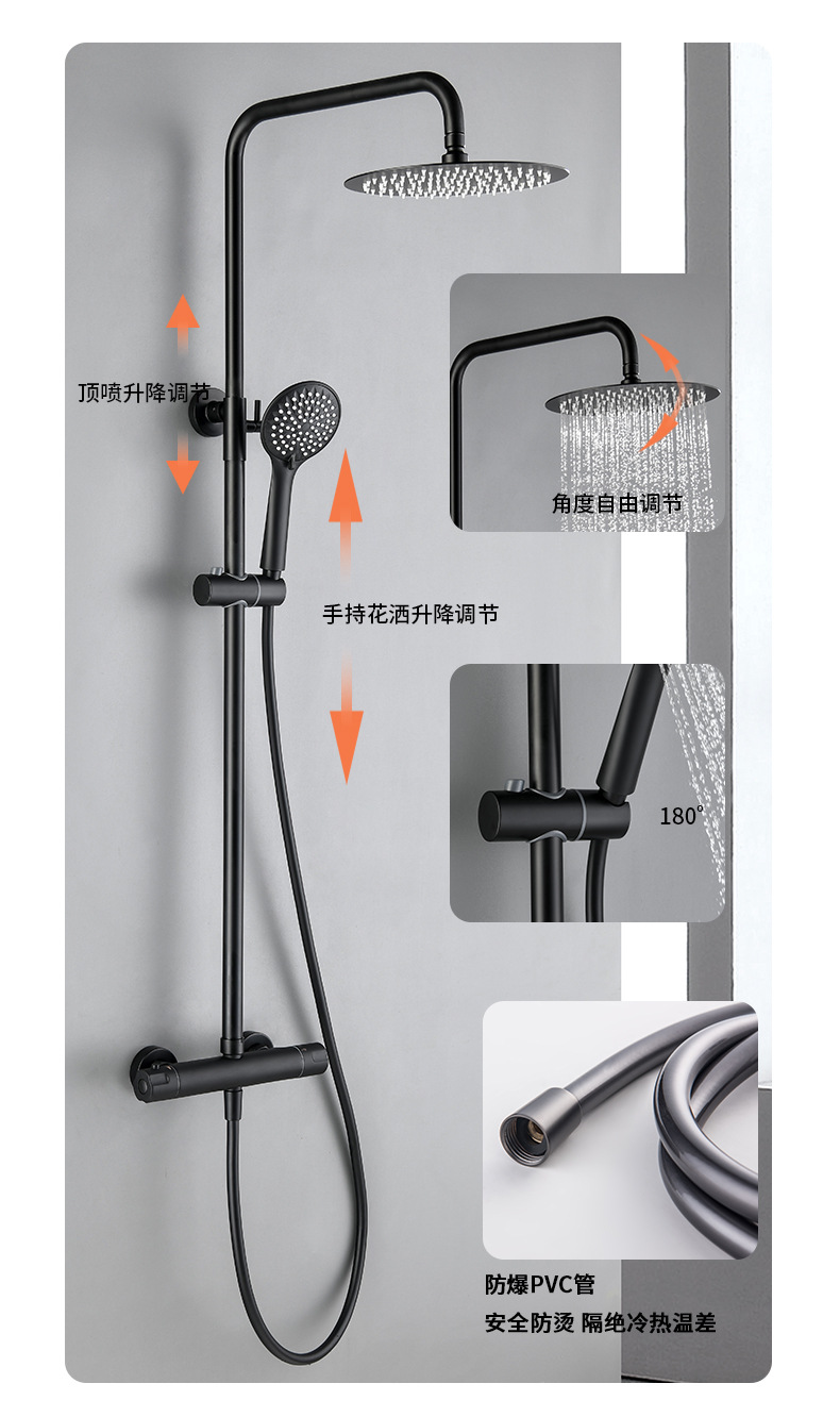 • [일정한 온도 두 기능]-스타 라운드 샤워 튜브-[블랙]]