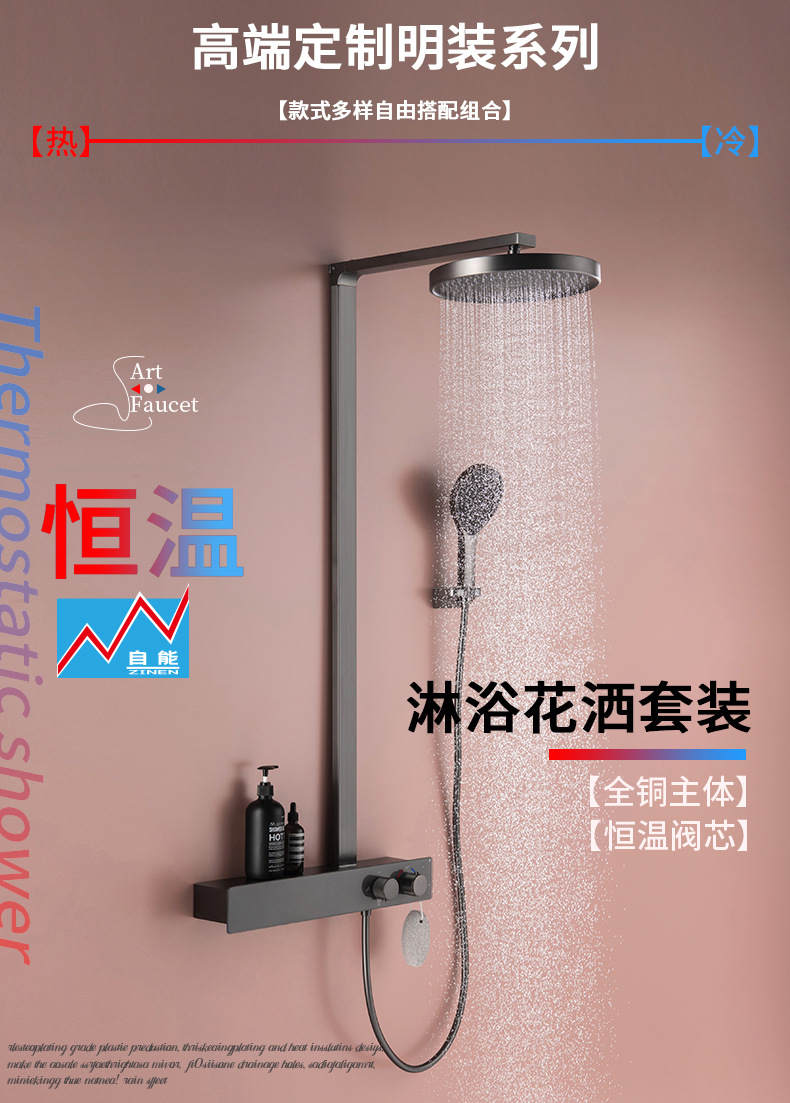 자기 에너지 욕실 일정한 온도 샤워 샤워 세트 가구 모든 구리 비 가압 필터 샤워 스프레이 헤드