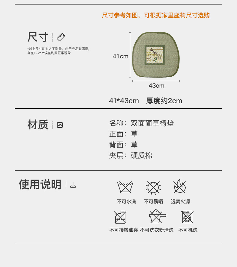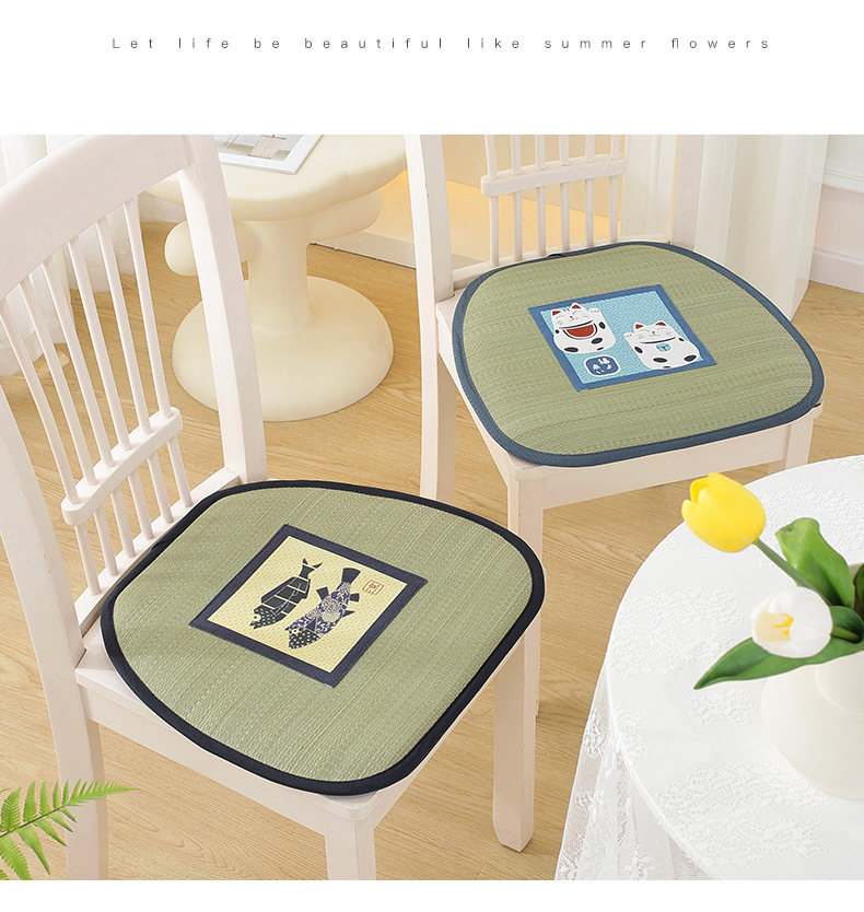여름 러시 매트 다이닝 의자 쿠션 양면 잔디 쿠션 통기성 사무실 두꺼운 가정용 좌식 쿠션스토어 가기