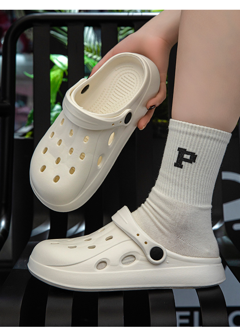 홀 신발 남성 여름 외부 착용 반 커버 슬리퍼 두꺼운 밑창 2 개 샌들과 슬리퍼 커플의 미끄럼 방지 비치 슈즈 여성용