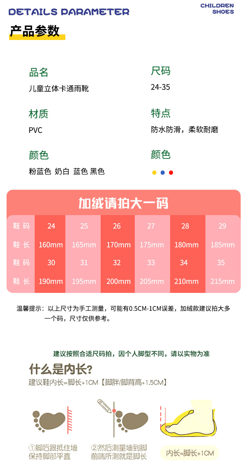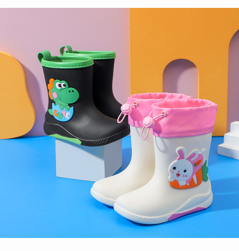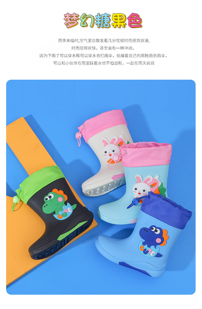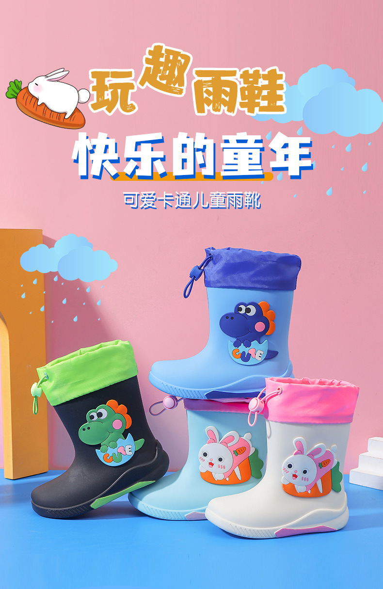 儿童卡通雨鞋加绒可拆卸男女童雨鞋小学生中大童防水雨靴中筒水鞋