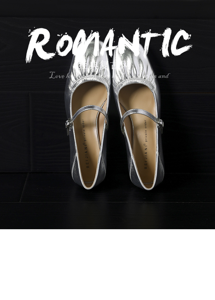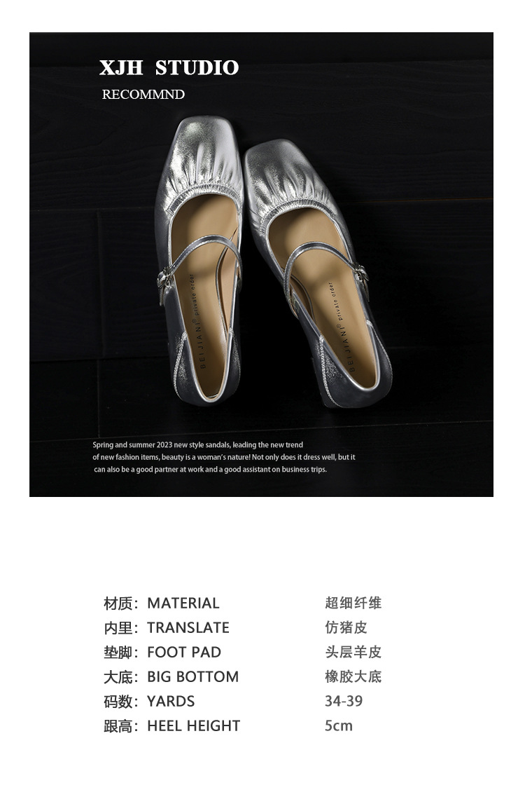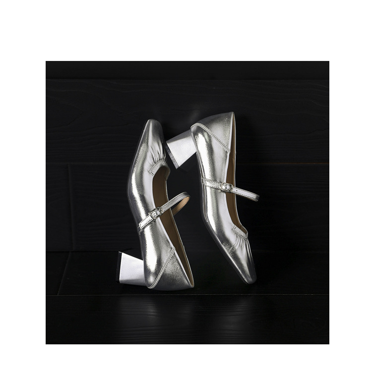 332-33 실버 양가죽 광장 머리 두꺼운 힐 싱글 신발 여성 중간 힐 소프트 가죽 버클 벨트 메리 제인 신발 봄과 가을스토어 가기