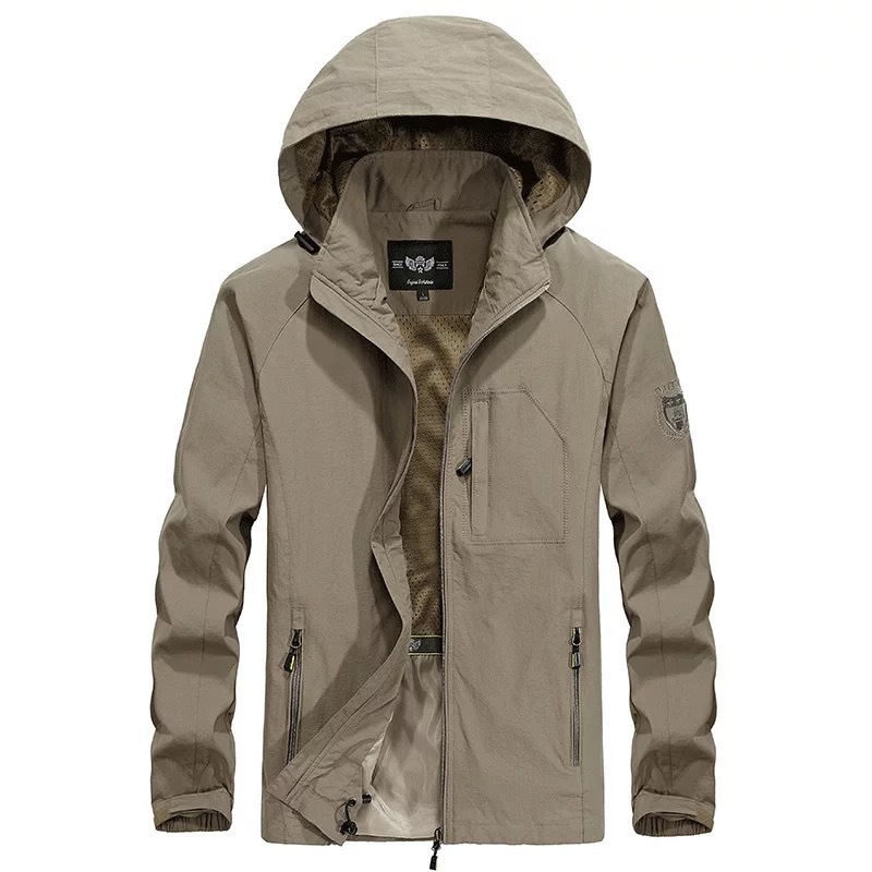 [868] 남자 얇은 자켓 야외 군사 폭행 두건드 등산 세트 남자 코트 크로스 테두리