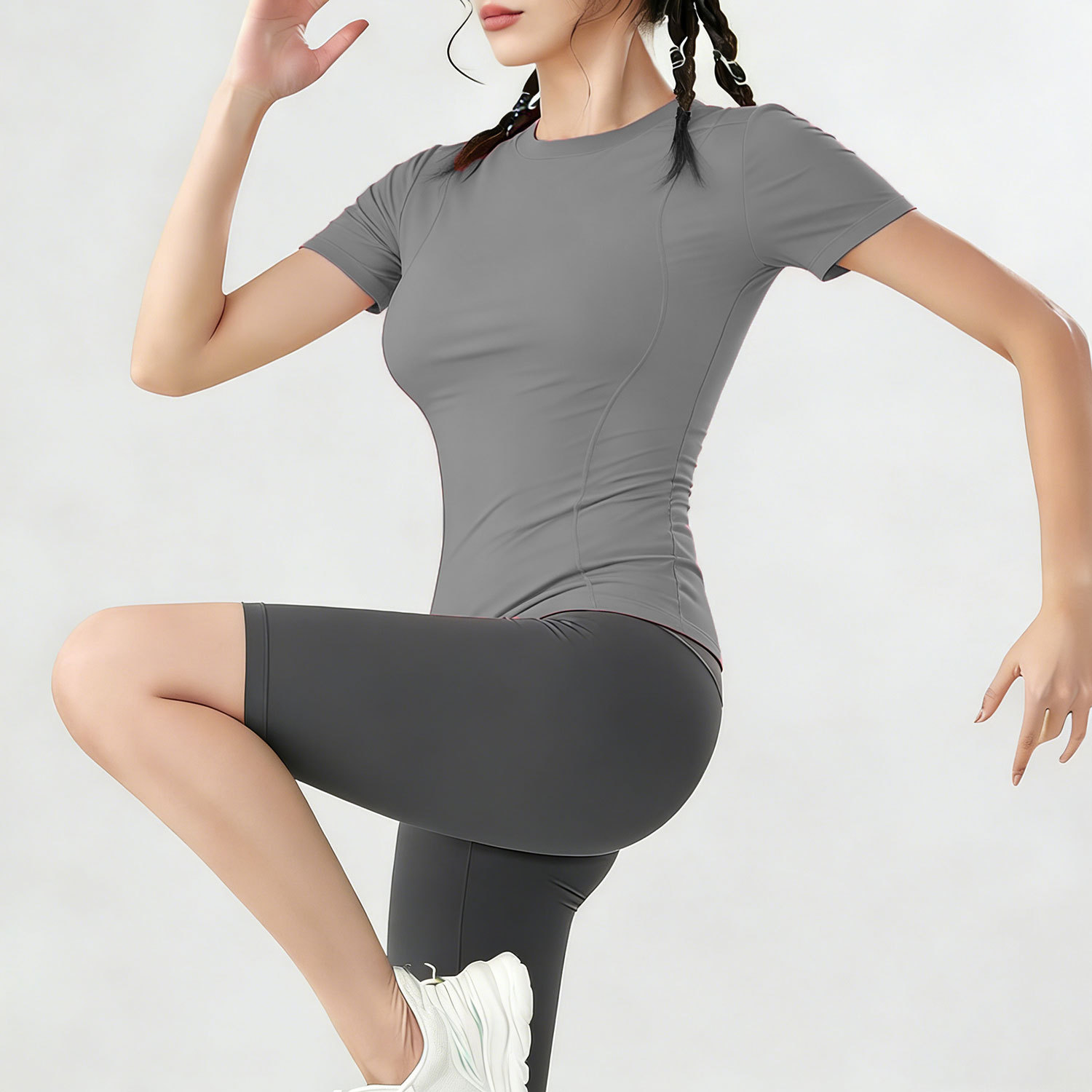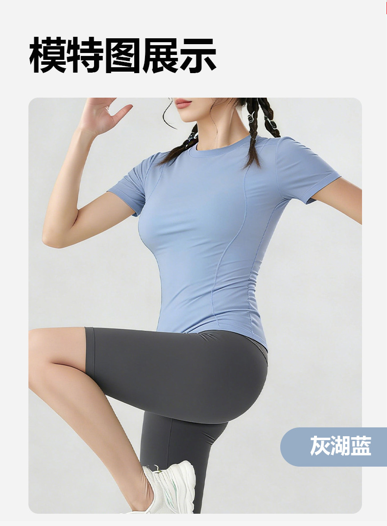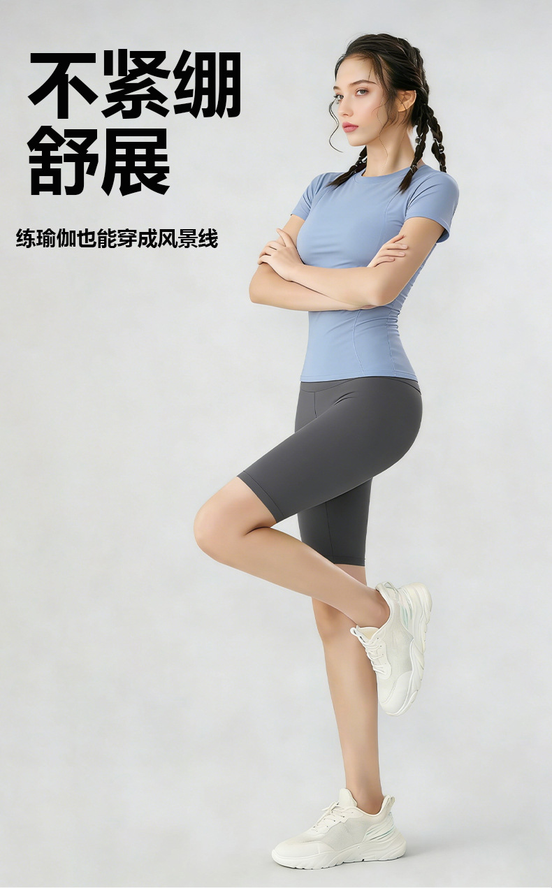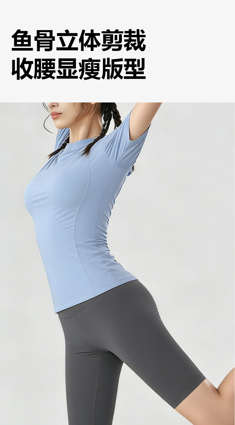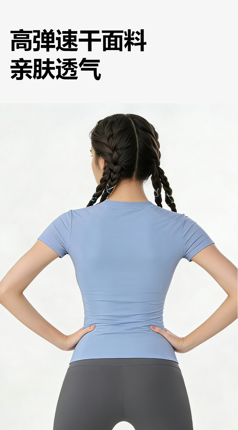 여름용 반팔 요가복 러닝 여성용 속건 티셔츠 상의 스포츠 타이트 의류 외출복으로도 착용 가능