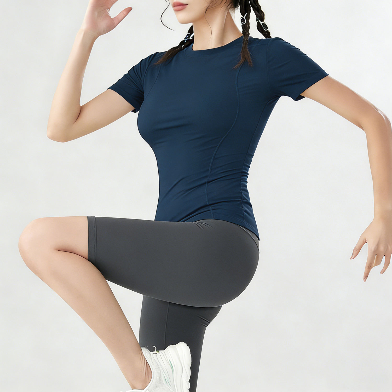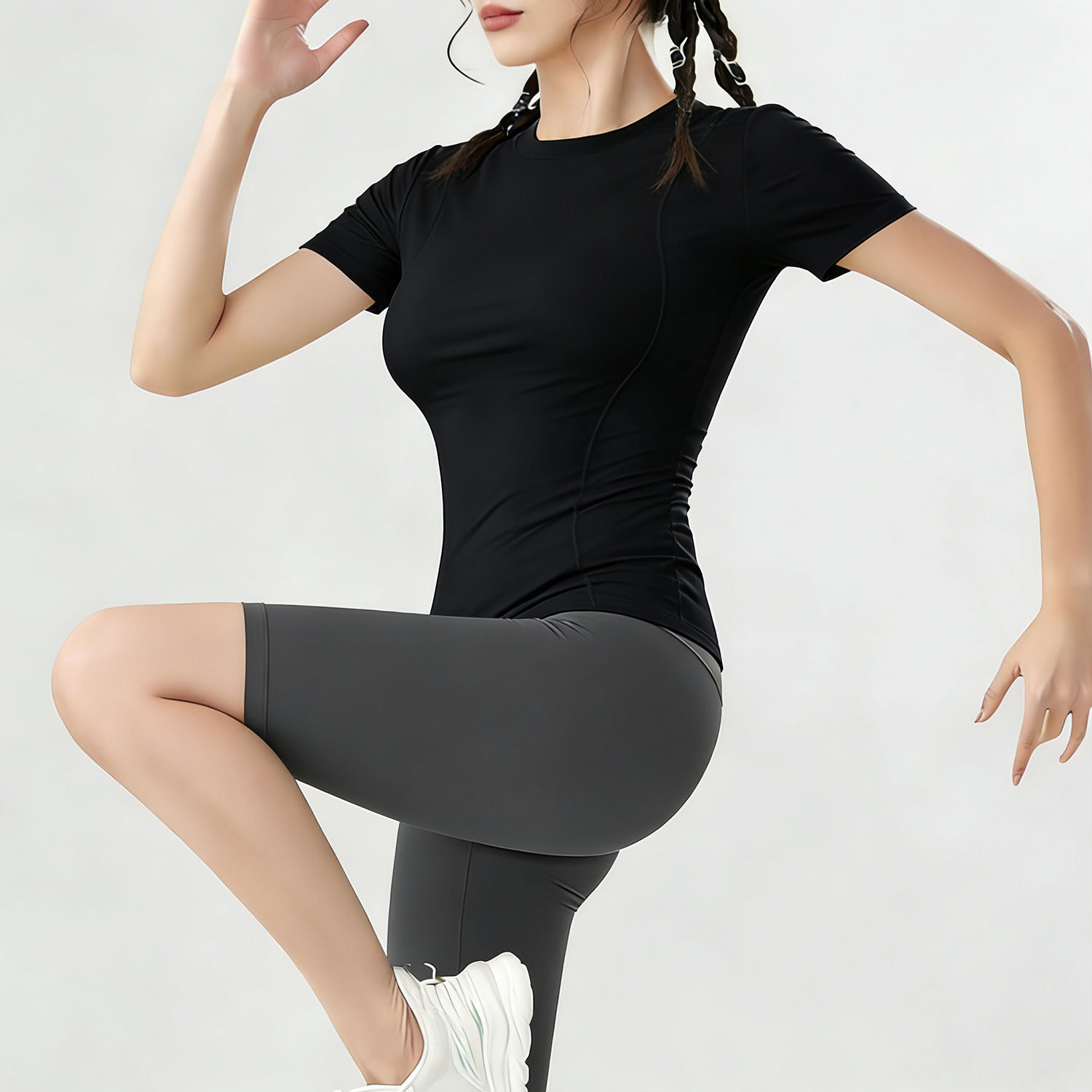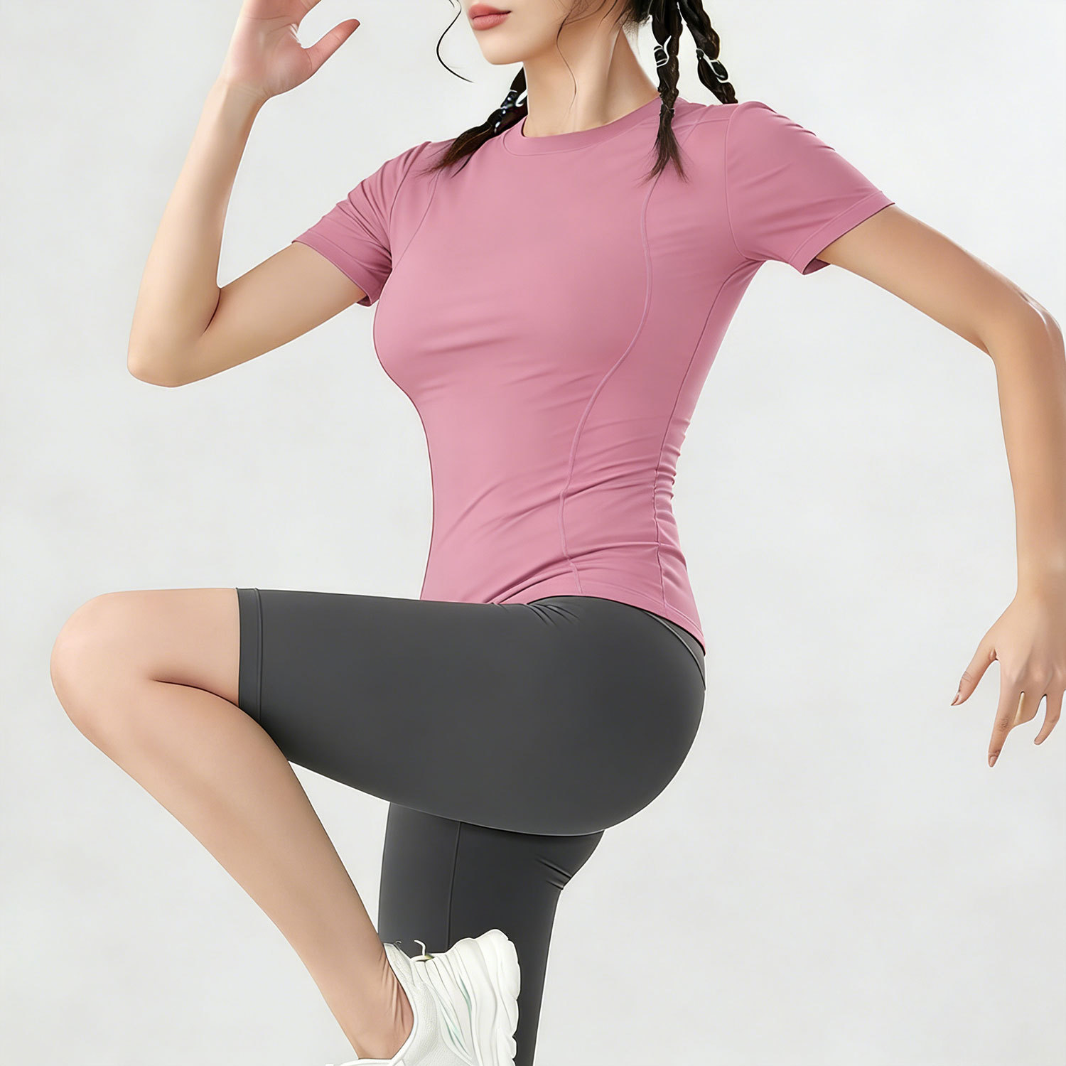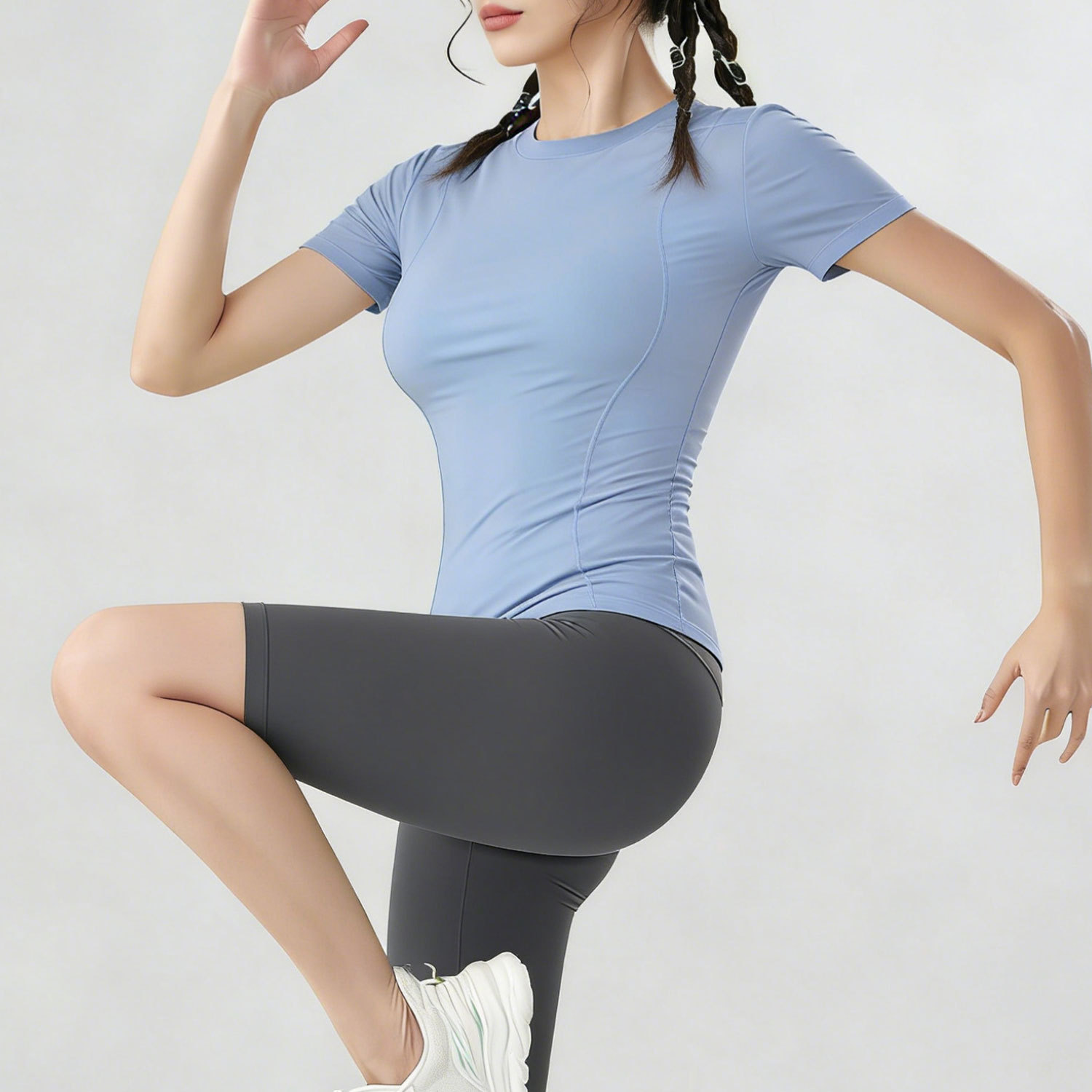 여름용 반팔 요가복 러닝 여성용 속건 티셔츠 상의 스포츠 타이트 의류 외출복으로도 착용 가능