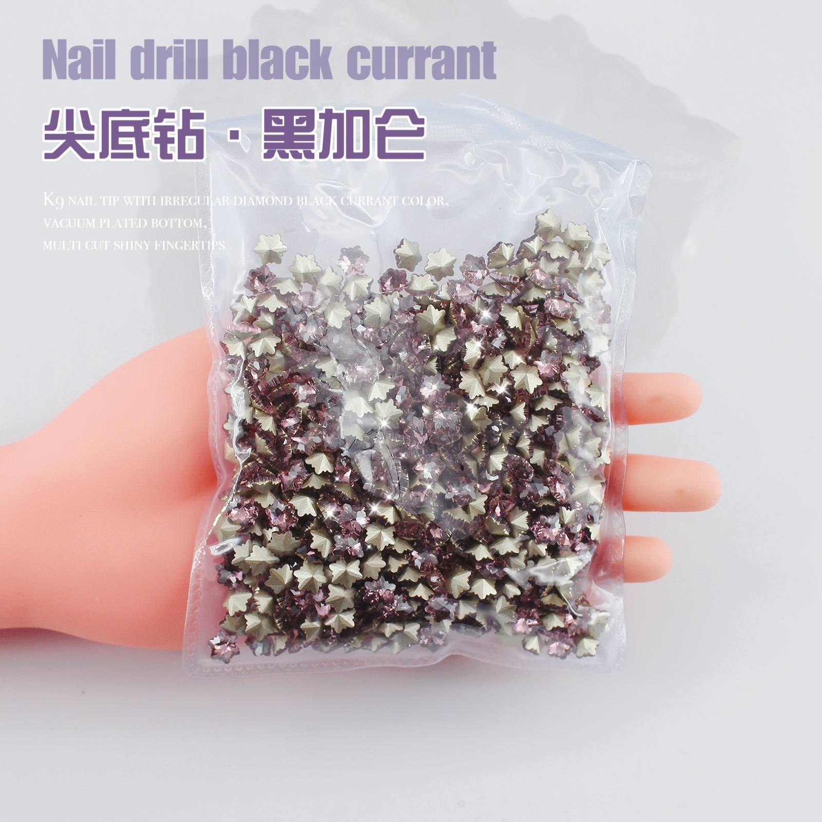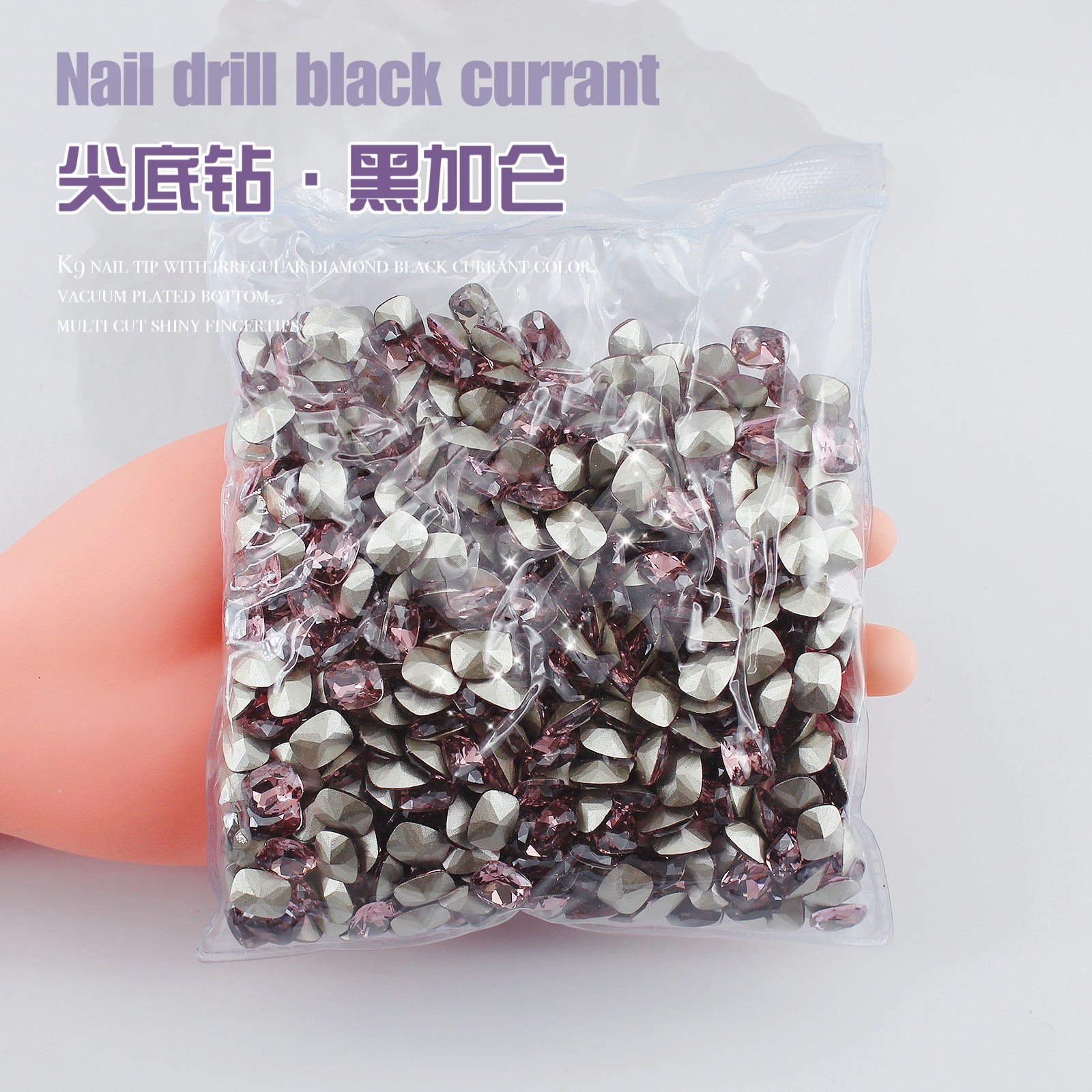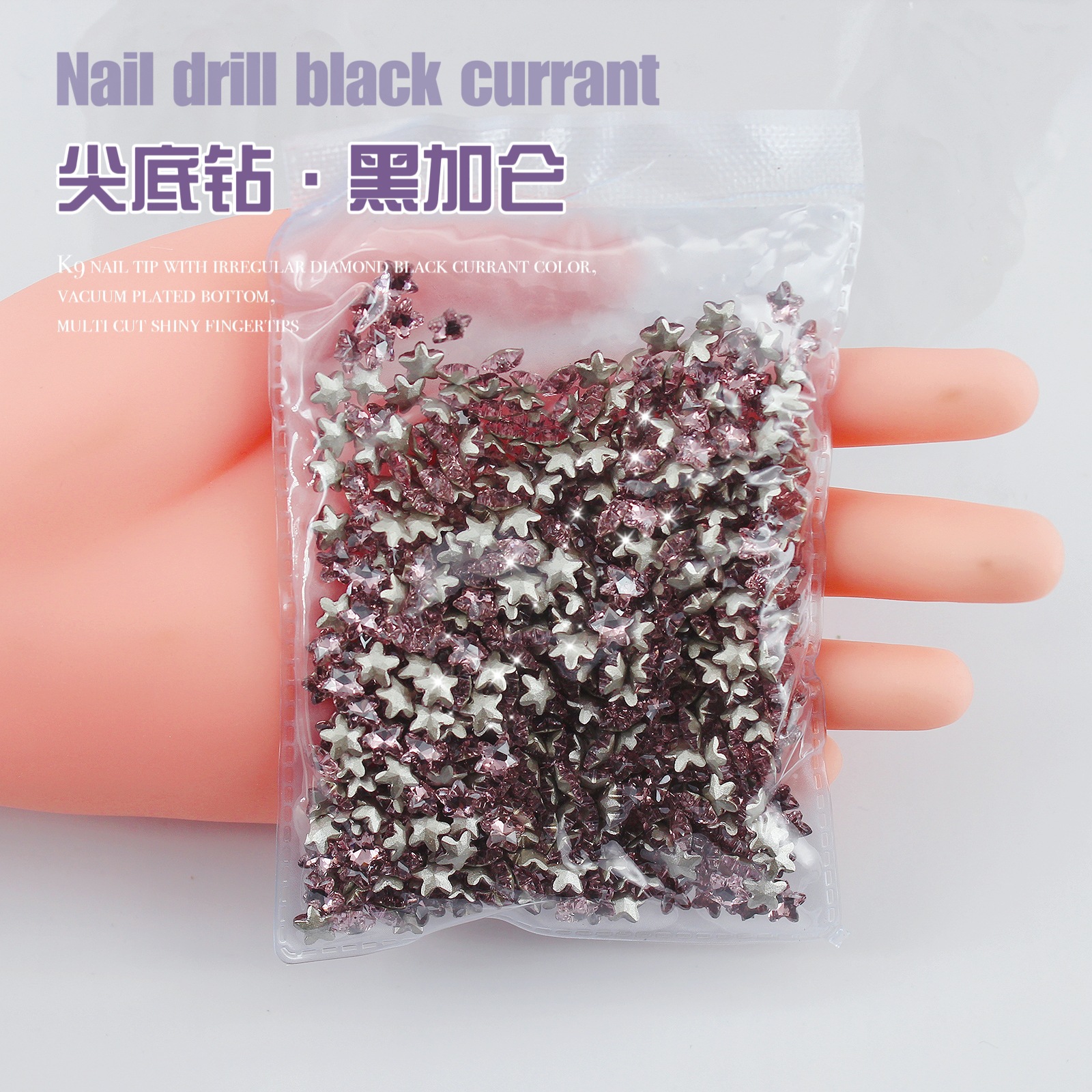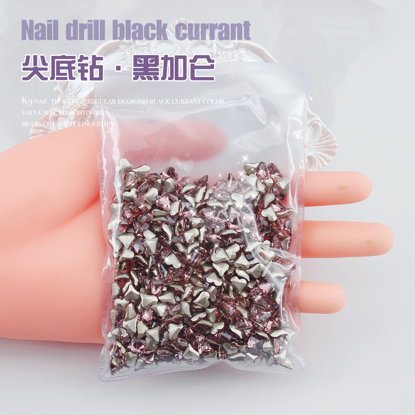 K9 드라이 로즈 포인팅 다이아몬드 네일 아트 쥬얼리 슈퍼 플래시 사랑 비뚤어진 심장 외계인 블랙 커런트 퍼플 네일 다이아몬드 쥬얼리 도매