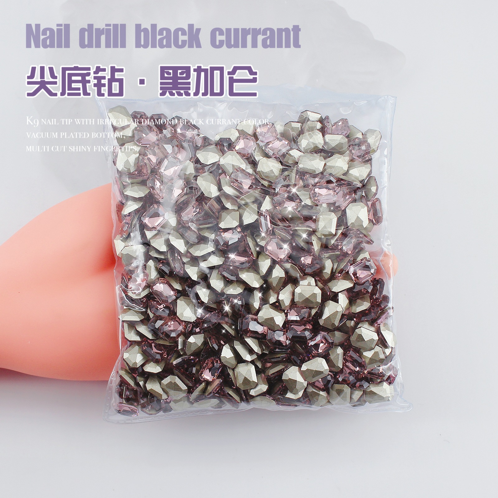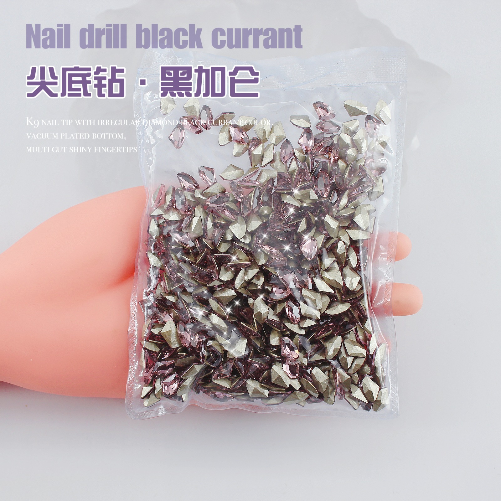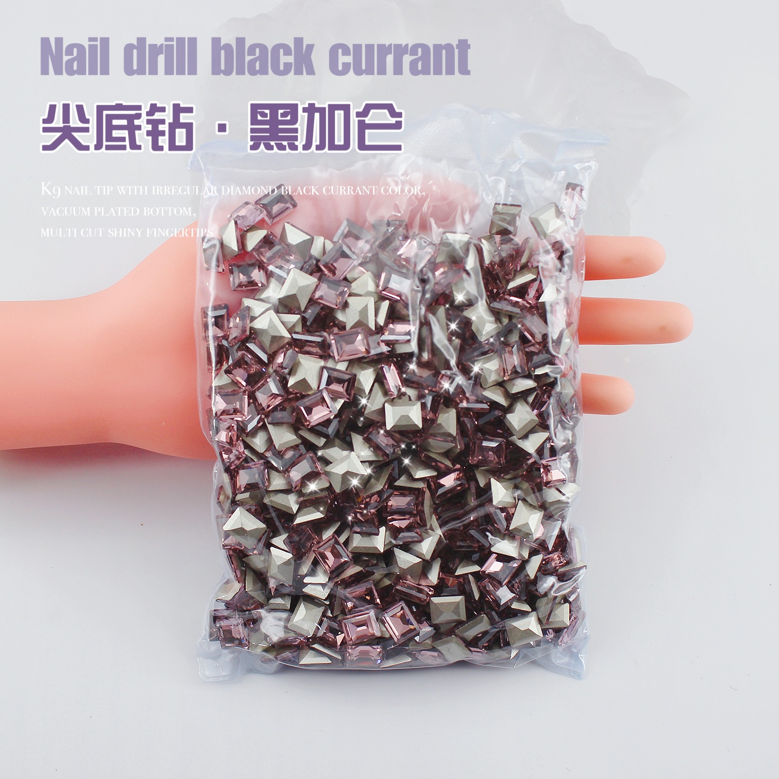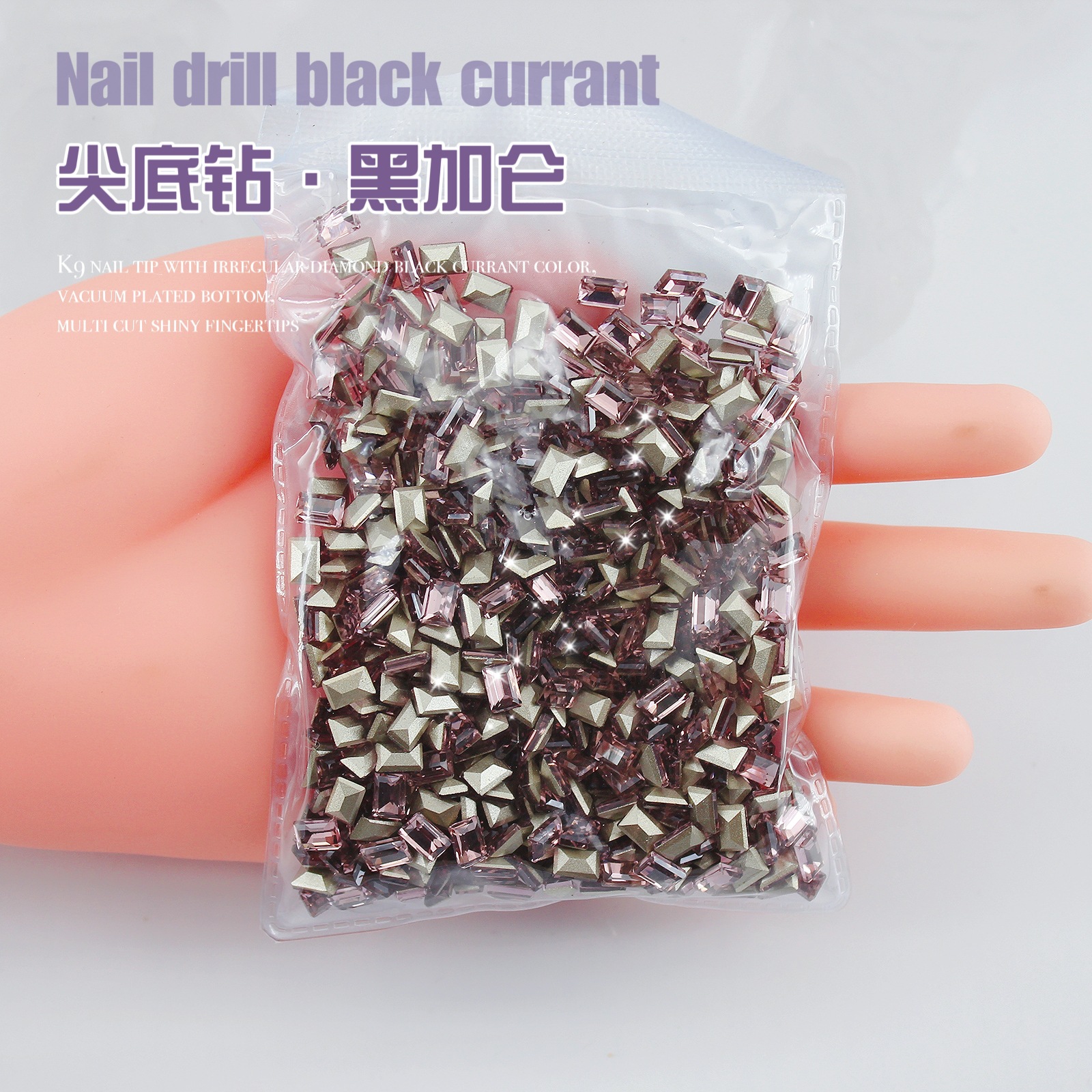 K9 드라이 로즈 포인팅 다이아몬드 네일 아트 쥬얼리 슈퍼 플래시 사랑 비뚤어진 심장 외계인 블랙 커런트 퍼플 네일 다이아몬드 쥬얼리 도매