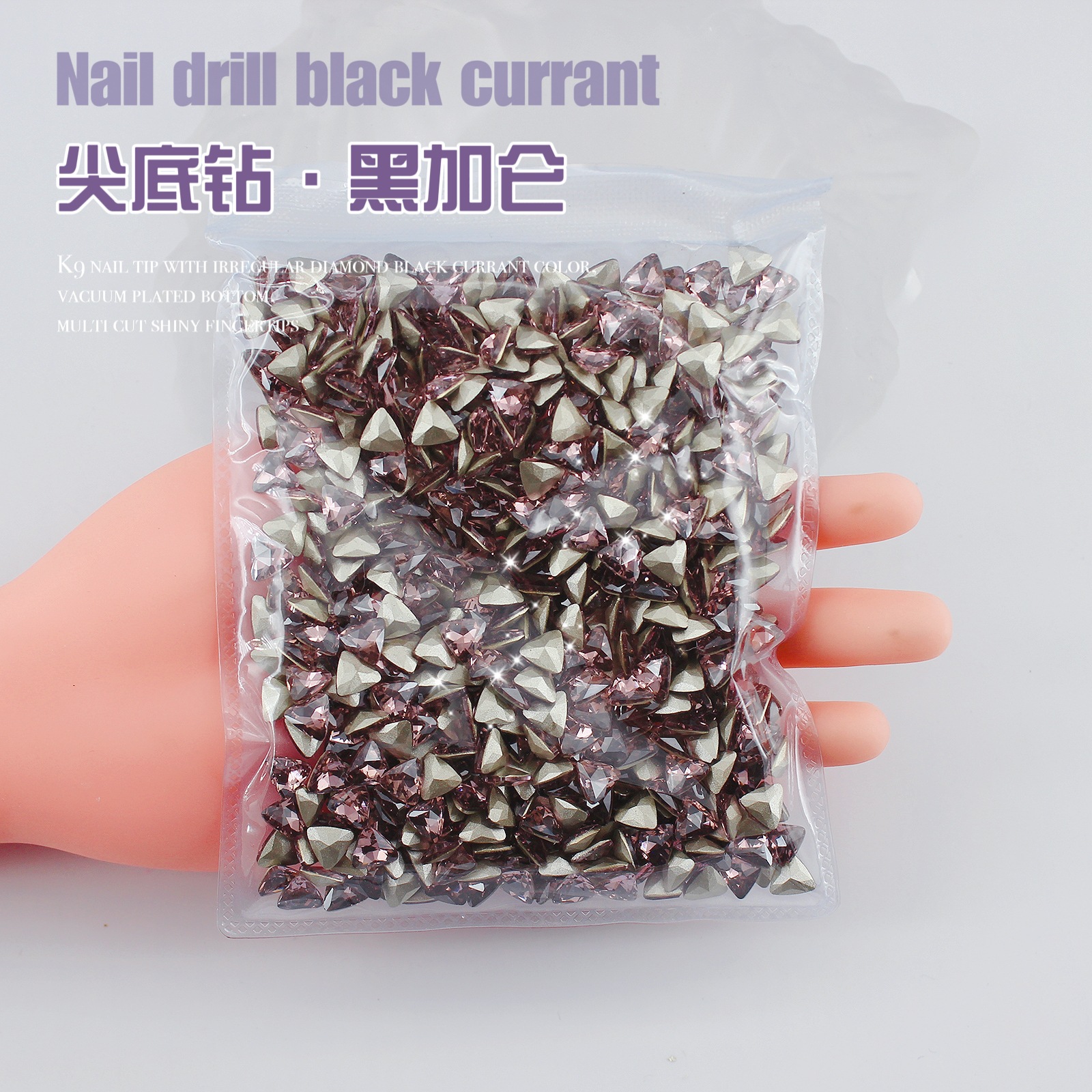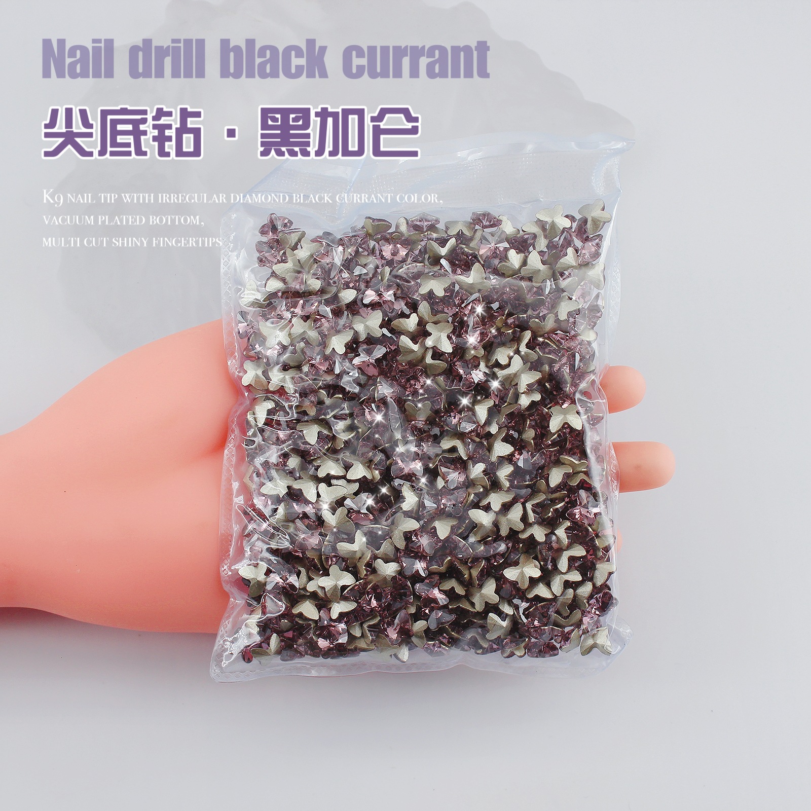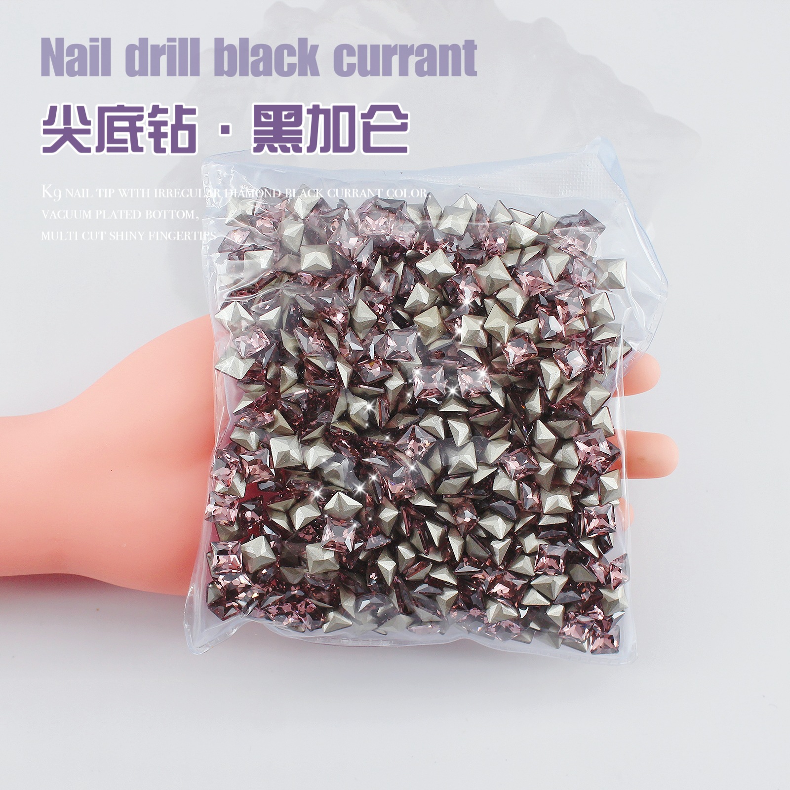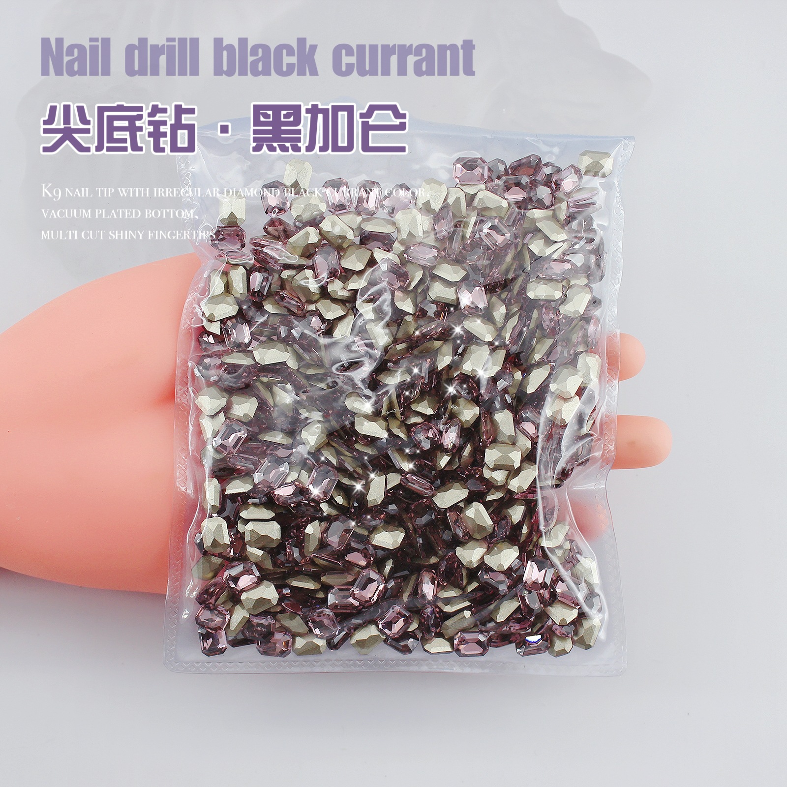K9 드라이 로즈 포인팅 다이아몬드 네일 아트 쥬얼리 슈퍼 플래시 사랑 비뚤어진 심장 외계인 블랙 커런트 퍼플 네일 다이아몬드 쥬얼리 도매