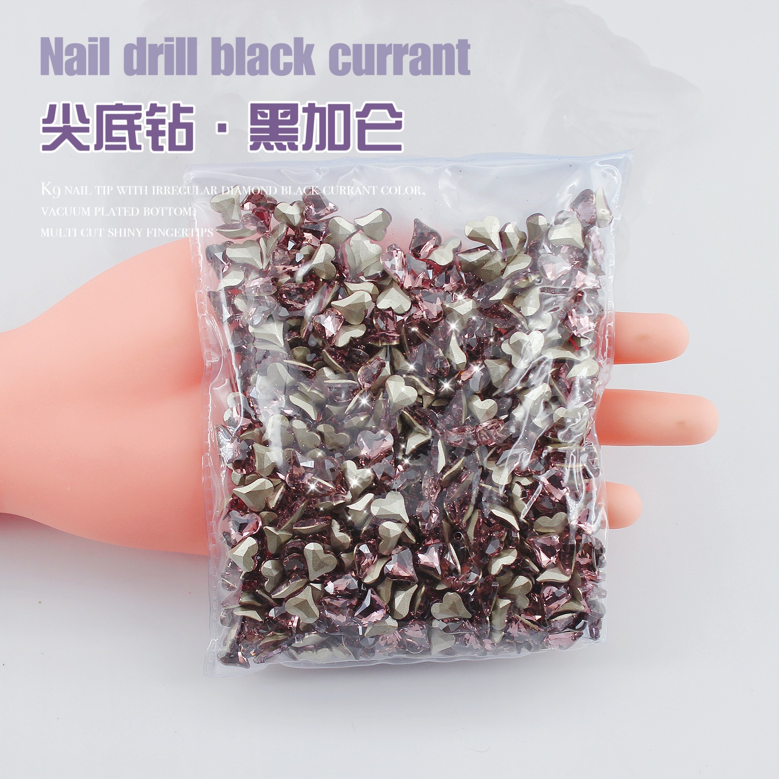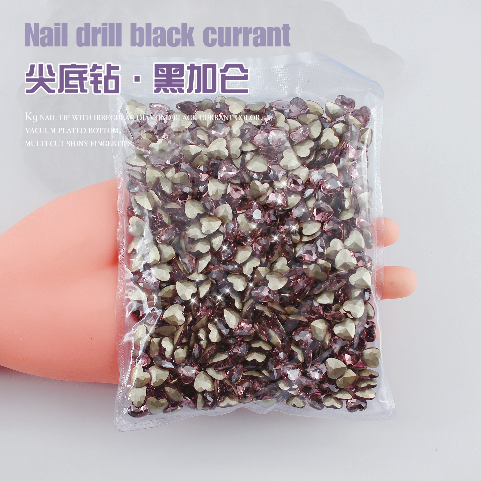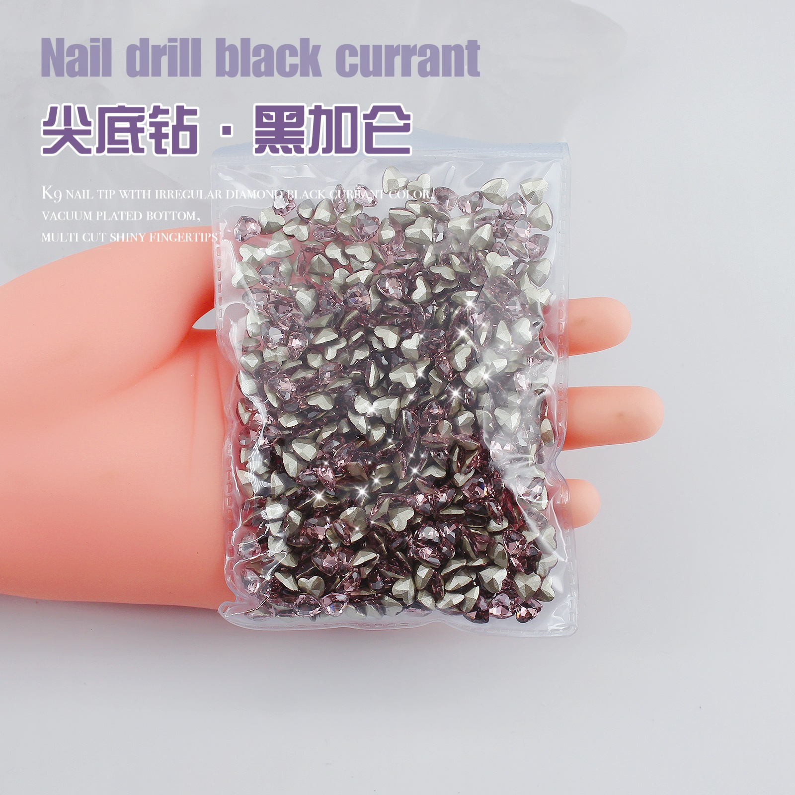 K9 드라이 로즈 포인팅 다이아몬드 네일 아트 쥬얼리 슈퍼 플래시 사랑 비뚤어진 심장 외계인 블랙 커런트 퍼플 네일 다이아몬드 쥬얼리 도매스토어 가기