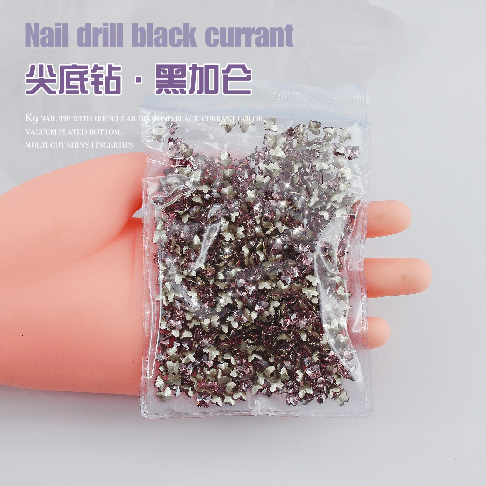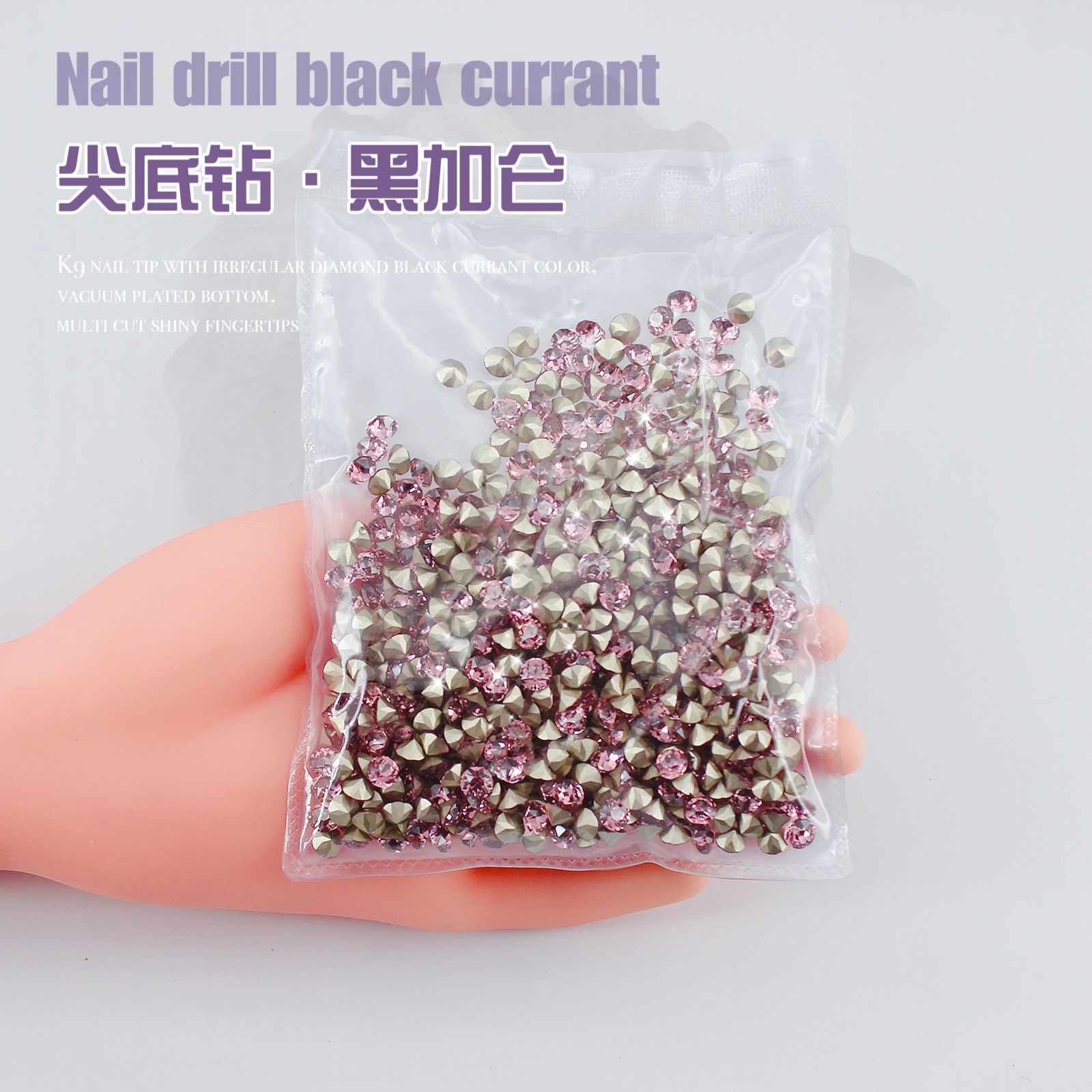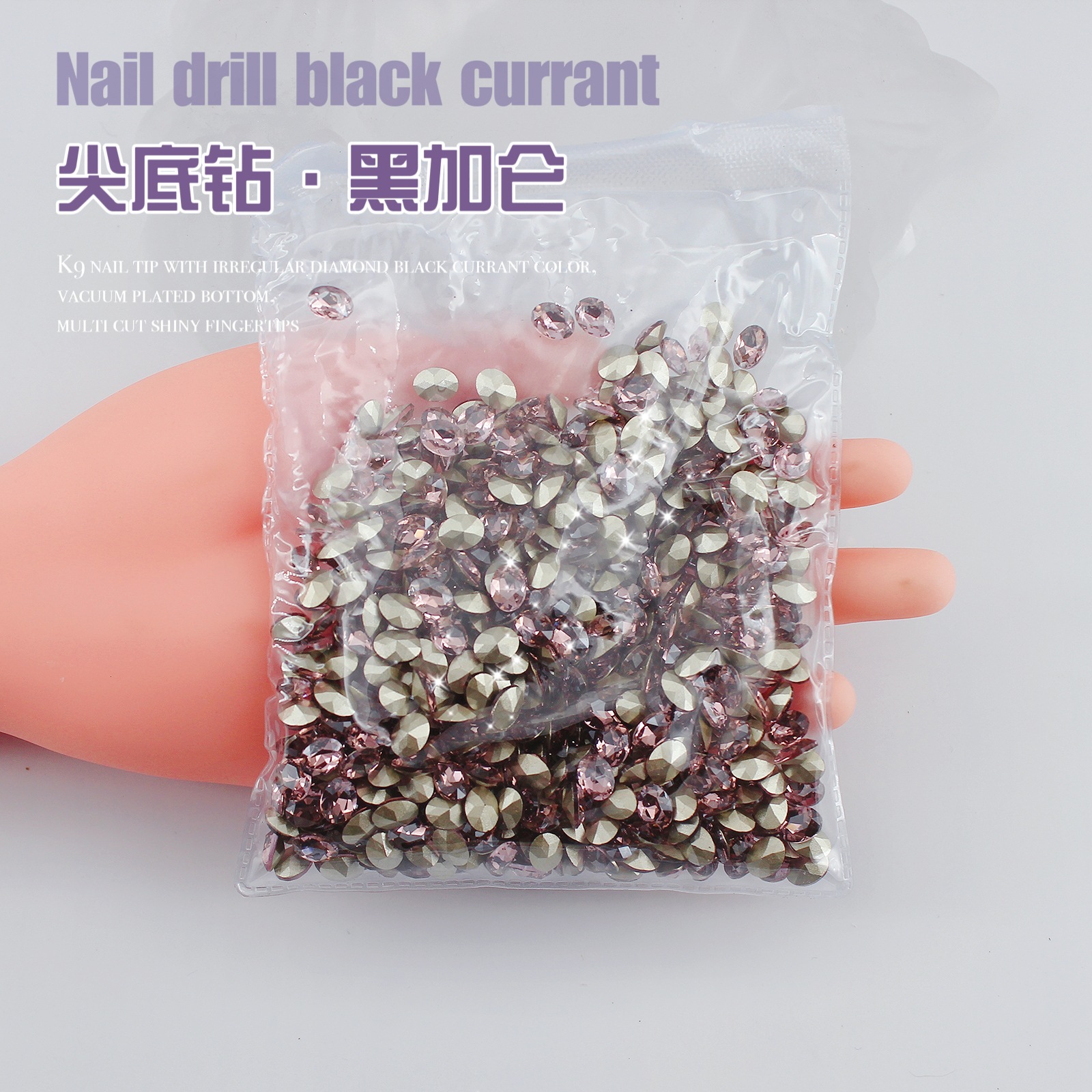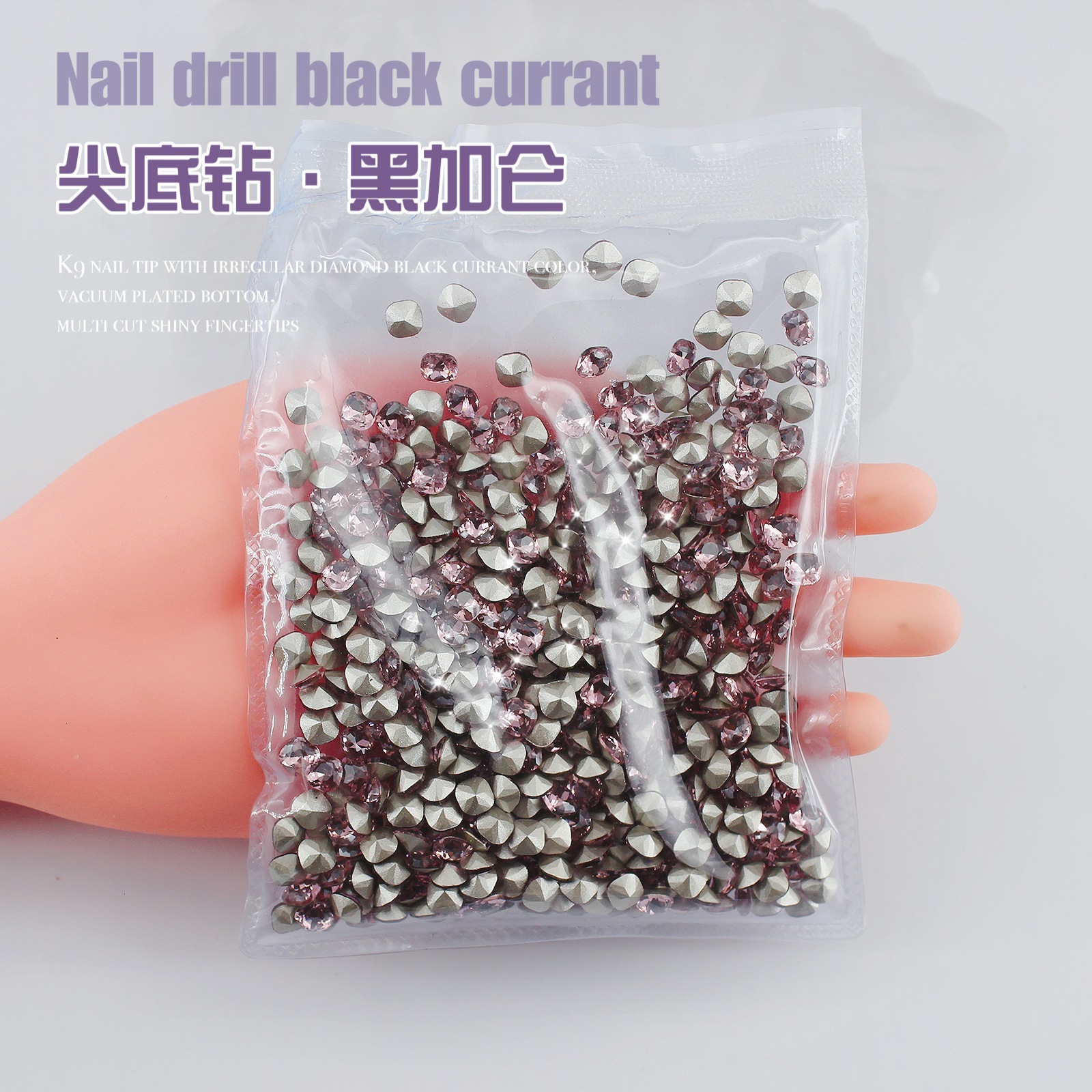 K9 드라이 로즈 포인팅 다이아몬드 네일 아트 쥬얼리 슈퍼 플래시 사랑 비뚤어진 심장 외계인 블랙 커런트 퍼플 네일 다이아몬드 쥬얼리 도매스토어 가기