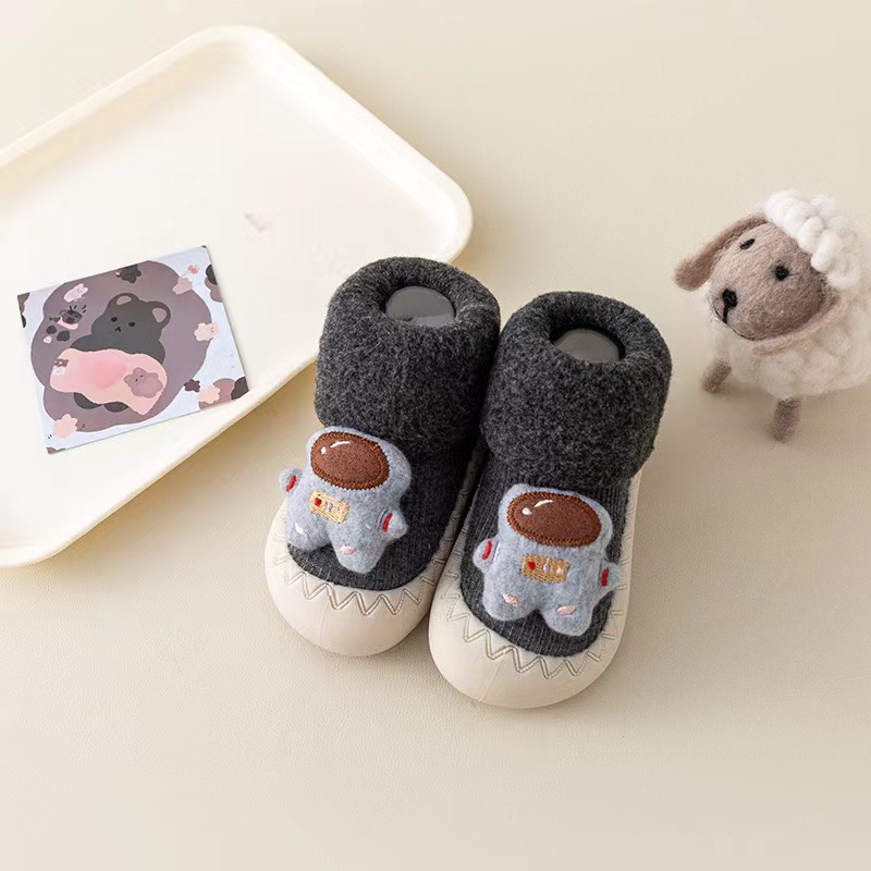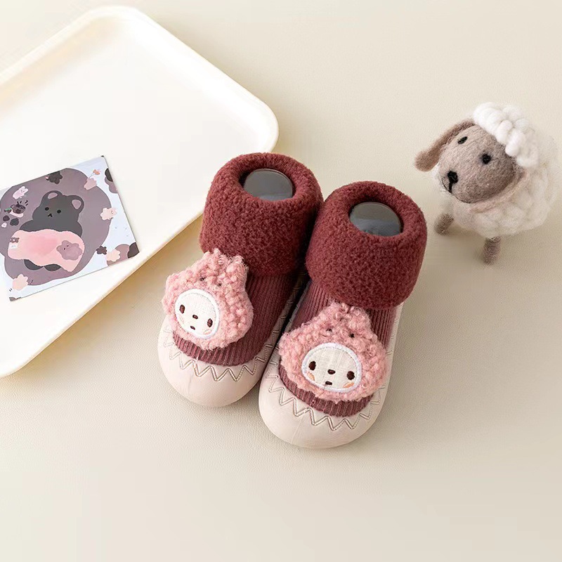 신생아 유아 신발 봄과 가을 만화 벨벳 두꺼운 실내 미끄럼 방지 부드러운 바닥 실내 어린이 바닥