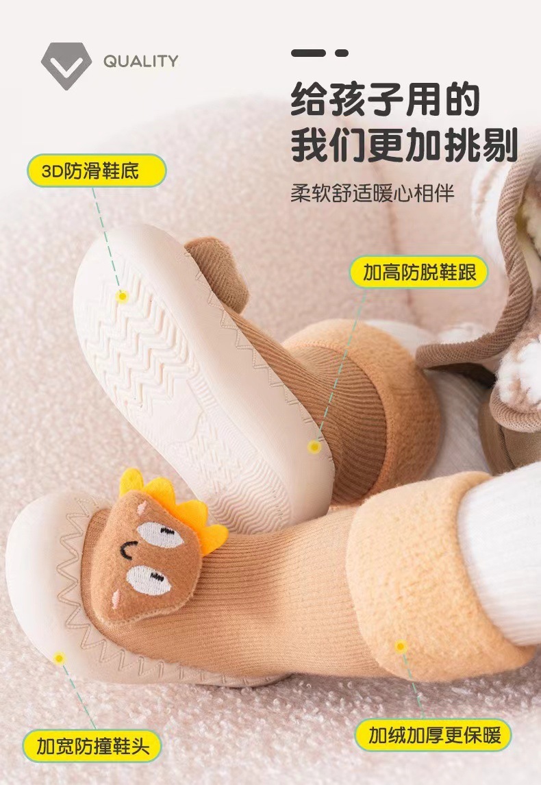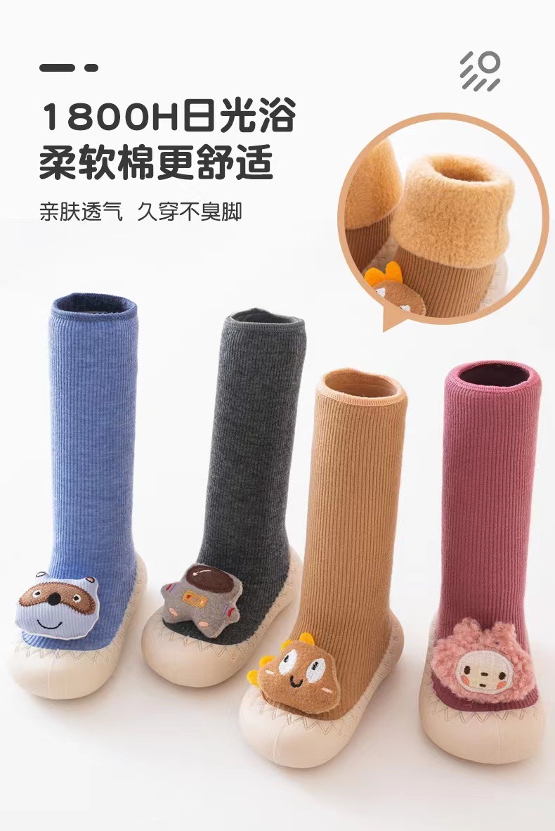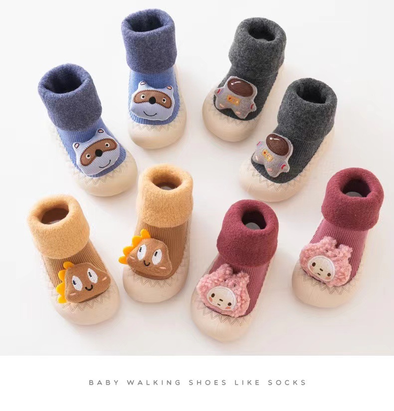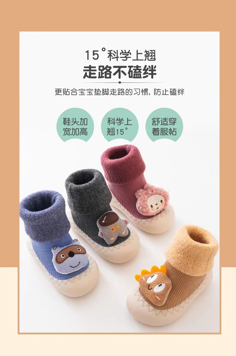 신생아 유아 신발 봄과 가을 만화 벨벳 두꺼운 실내 미끄럼 방지 부드러운 바닥 실내 어린이 바닥스토어 가기