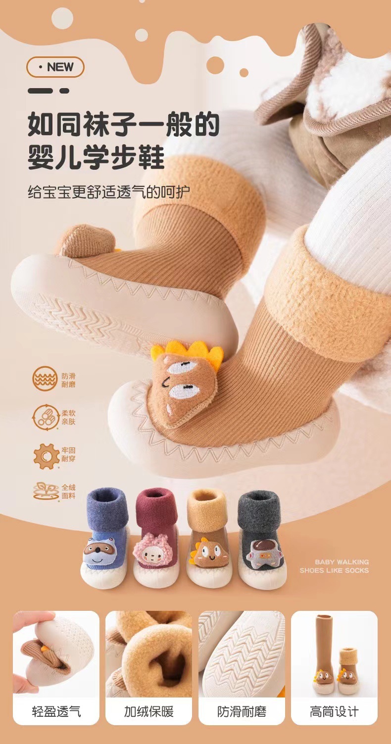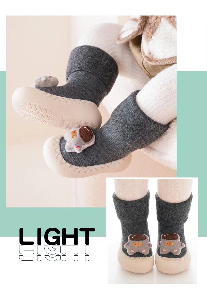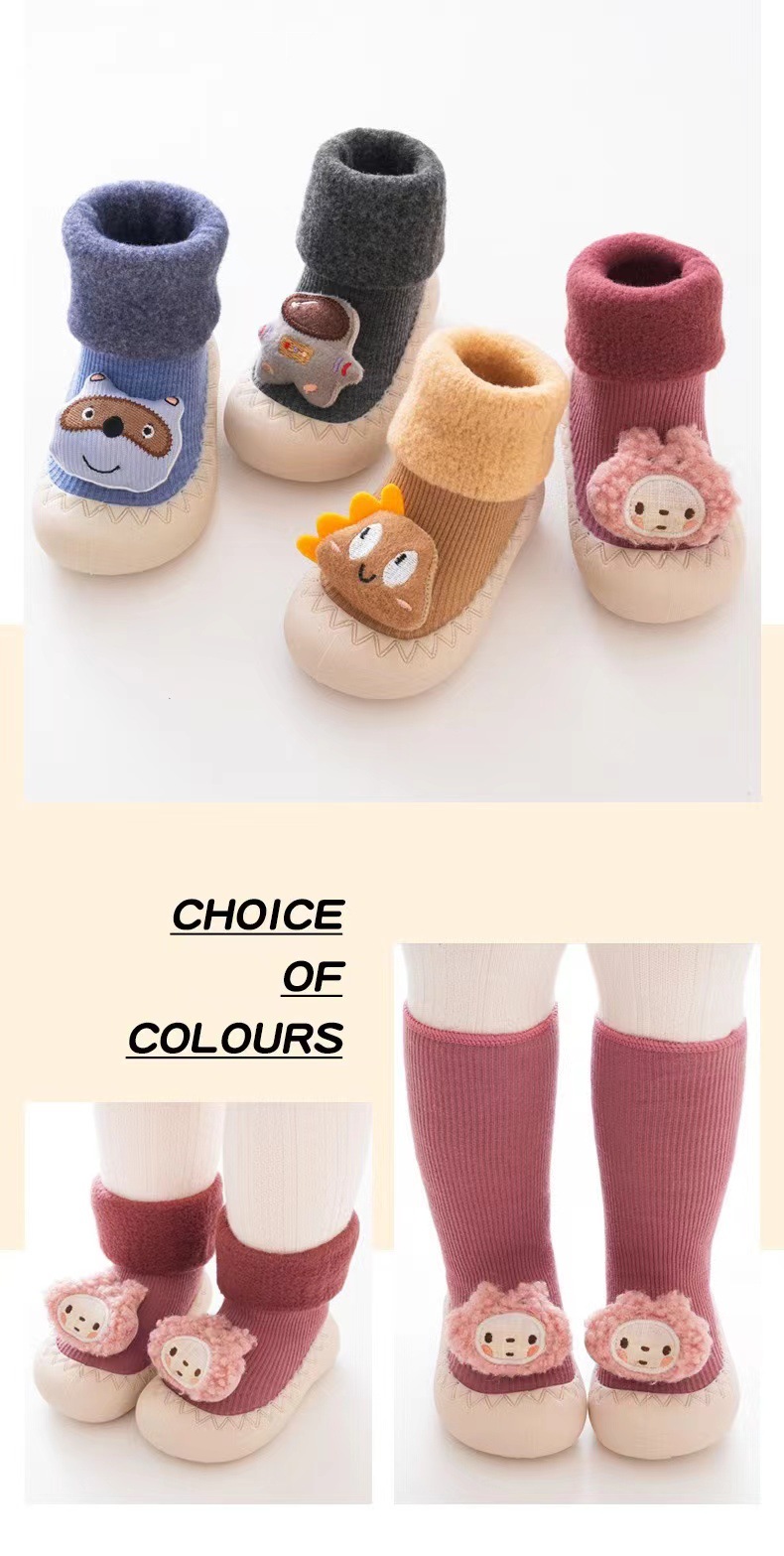 신생아 유아 신발 봄과 가을 만화 벨벳 두꺼운 실내 미끄럼 방지 부드러운 바닥 실내 어린이 바닥스토어 가기