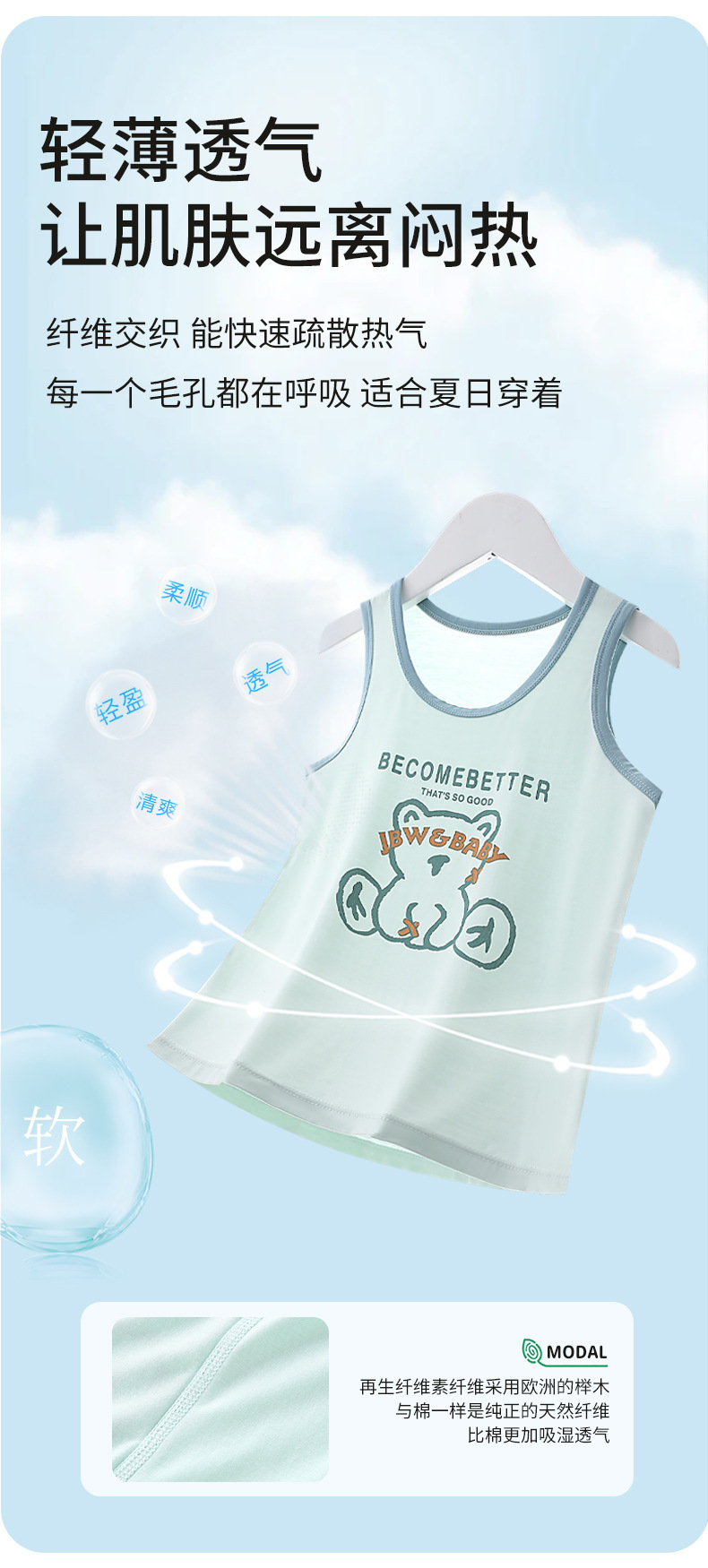 소년 모달 조끼 얇은 얼음 쿨 민소매 톱 보이즈 허들 아기 조끼 클래스 A 베이스 셔츠스토어 가기