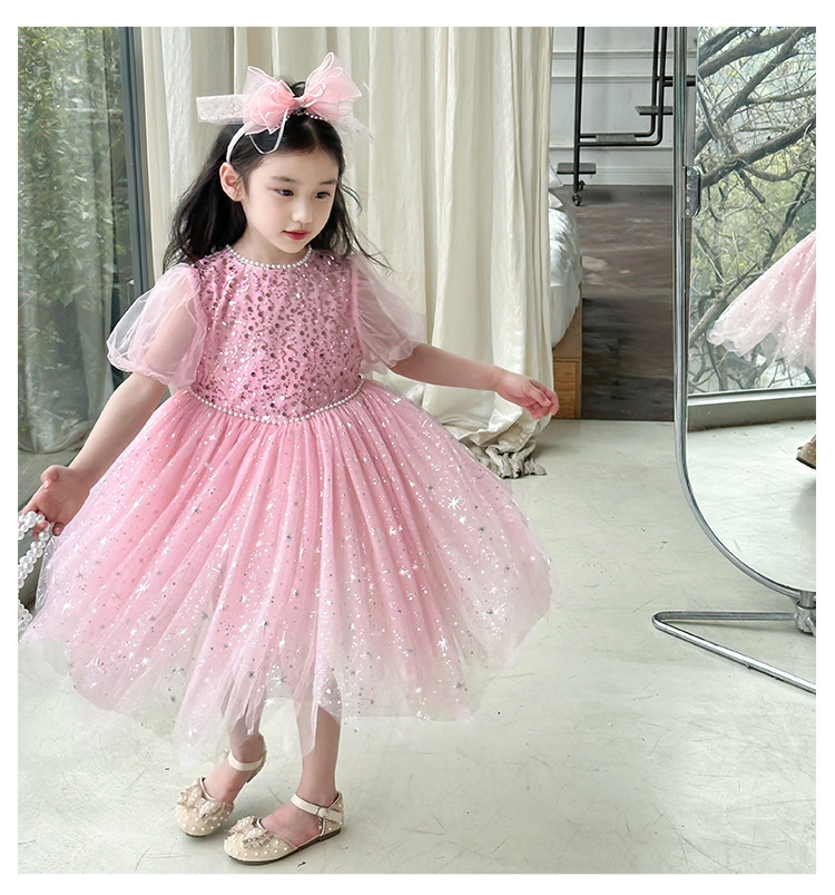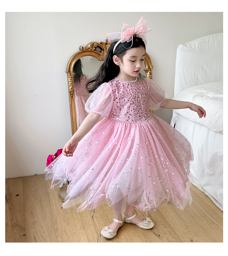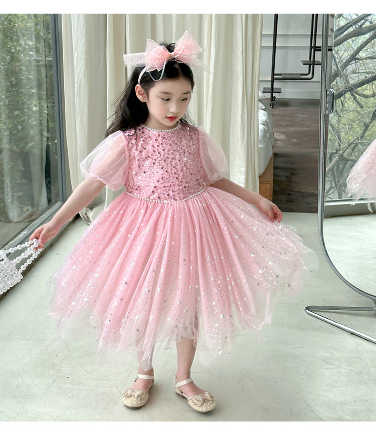 여아 푹신한 선박 스커트 생일 선박 스커트 소녀 냉동 아이샤 여름 반팔 생일 원피스
