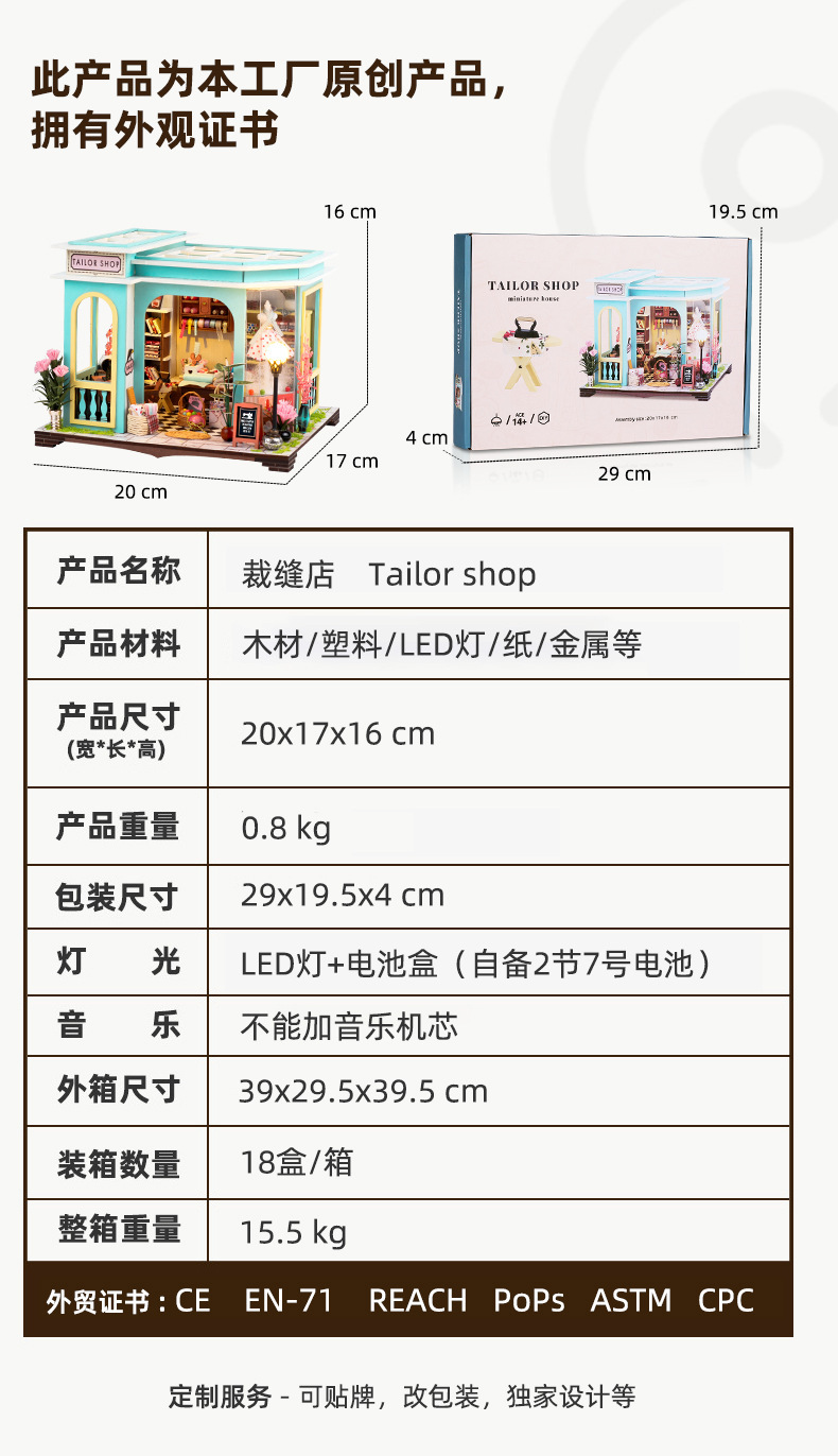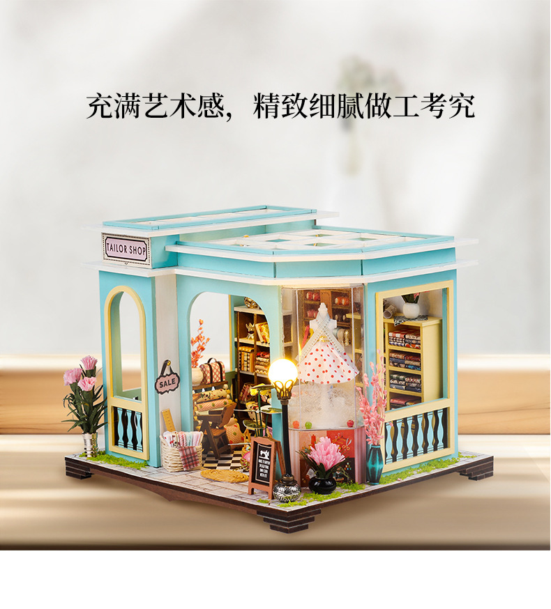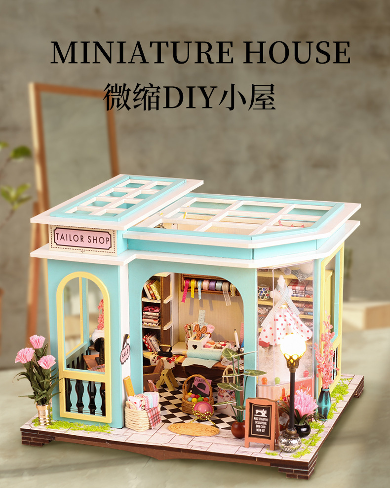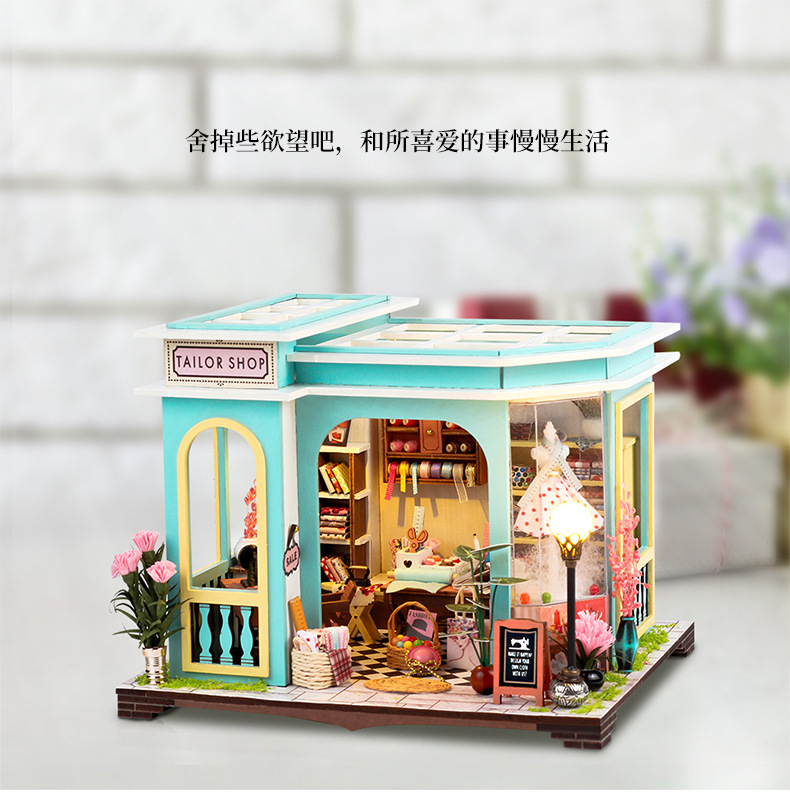 크로스 보더 DIY 수제 코티지 재단사 건물 미니 작은 집 모델 조립 장난감 소녀 생일 선물스토어 가기