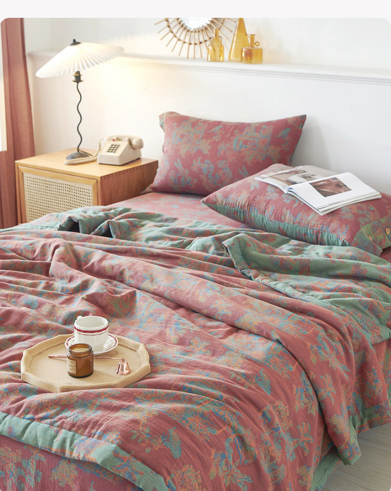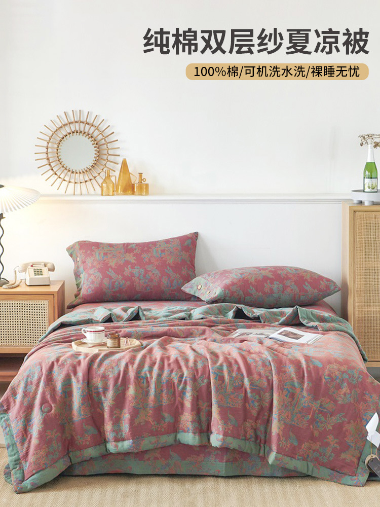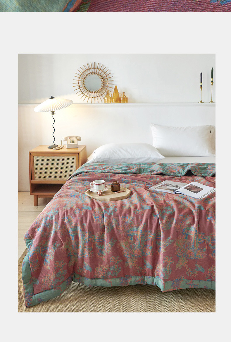 새로운 클래스 더블 레이어 원사 여름 쿨 퀼트 어머니와 유아 등급 대두 자카드 얇은 이불 선물 에어컨 담요 도매