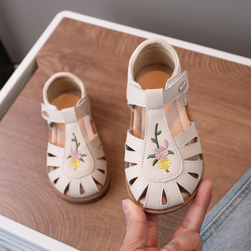 대외 무역 도매 자수 여아 샌들 2026 여름 속이 빈 아동화 부드러운 밑창 미끄럼 방지 어린 소녀 해변용 신발스토어 가기